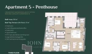 Tento mezonetový penthouse nabízí přímý vnitřní výtah a otevřenou plně vybavenou kuchyň, jídelnu a obývací pokoj s útulným krbem. V tomto patře se také nacházejí tři dvoulůžkové ložnice se dvěma koupelnami (1 s vlastní koupelnou), toaleta pro hosty a prádelna. Nadstandardní úroveň má další prostor ideální jako prostor pro hosty, pracovnu nebo knihovnu, koupelnu a fantastickou střešní terasu o rozloze 13 m2.