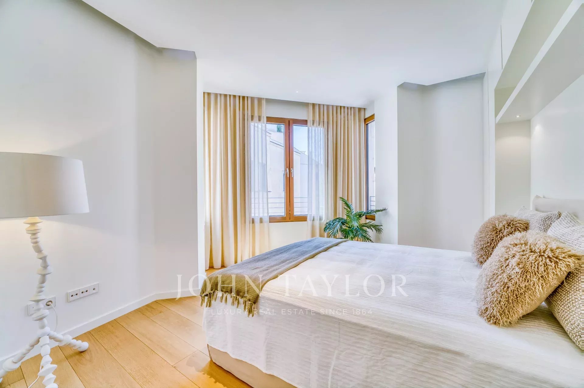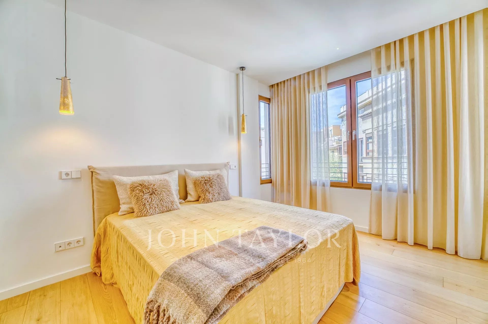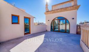 Tento luxusní mezonetový penthouse se nachází na klidném náměstí v srdci starého města Palmy a skládá se ze dvou ložnic, tří koupelen (dvě en-suite, jedna koupelna pro hosty), prádelny a jedinečné střešní terasy. Zatímco vstupní úroveň nabízí rozsáhlý otevřený půdorys kuchyně/jídelny/obývacího prostoru, ložnice vytvářejí klidné soukromí na nižší úrovni. Velká okna na míru, dřevěné podlahy a teplé tóny v interiéru zajišťují útulné prostředí ve všech místnostech. Skutečným vrcholem nemovitosti je soukromá střešní terasa s velkolepou věží, která je přístupná přímo přes byt. Odtud si můžete vychutnat panoramatický výhled na staré město a moře. Pro vaše pohodlí je celý penthouse vybaven podlahovým vytápěním, klimatizací a domácí automatizací. V případě potřeby je možné dokoupit garážové stání ve stejné budově.