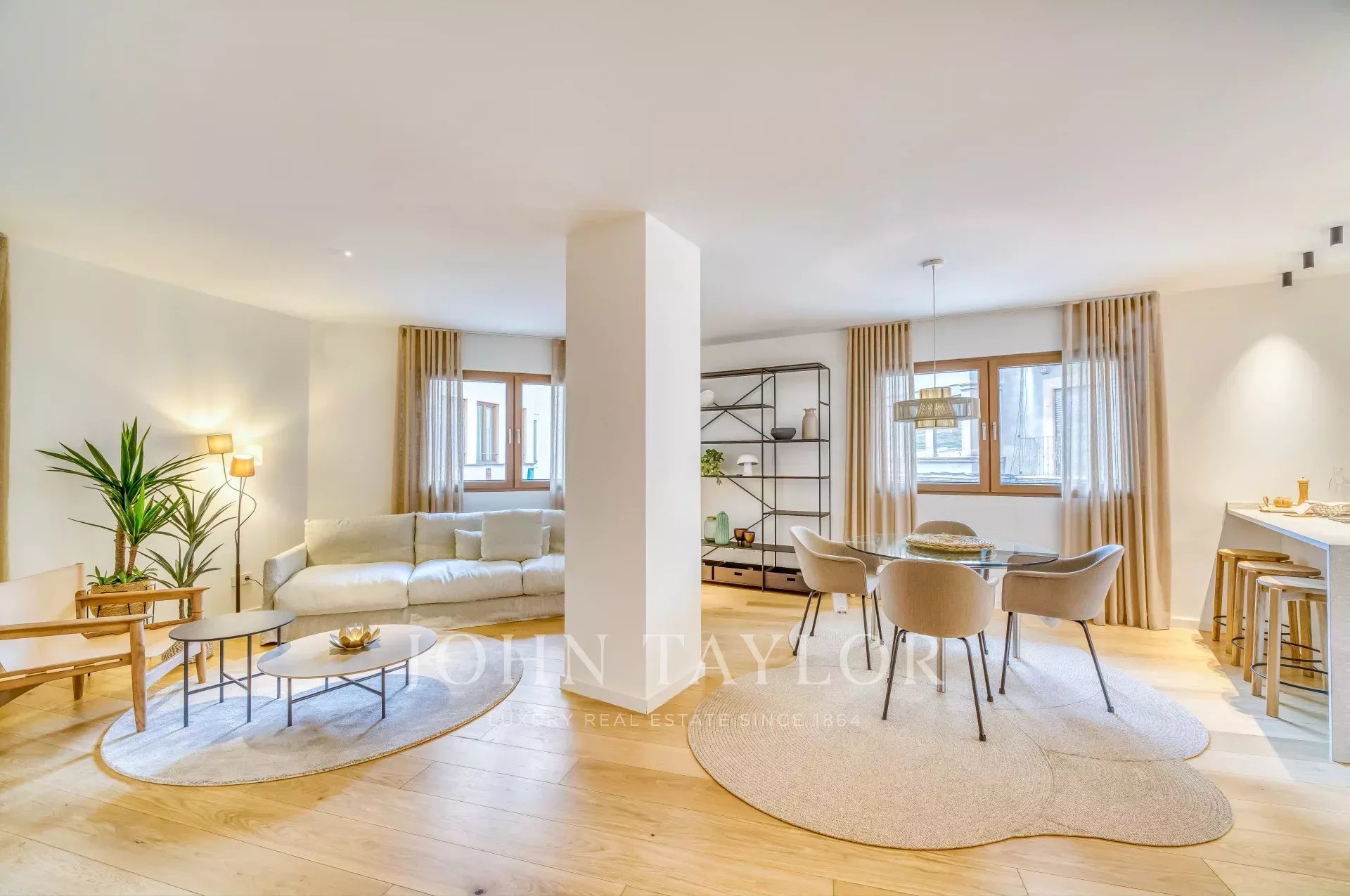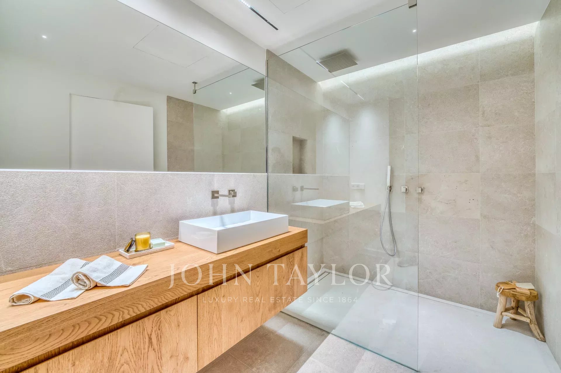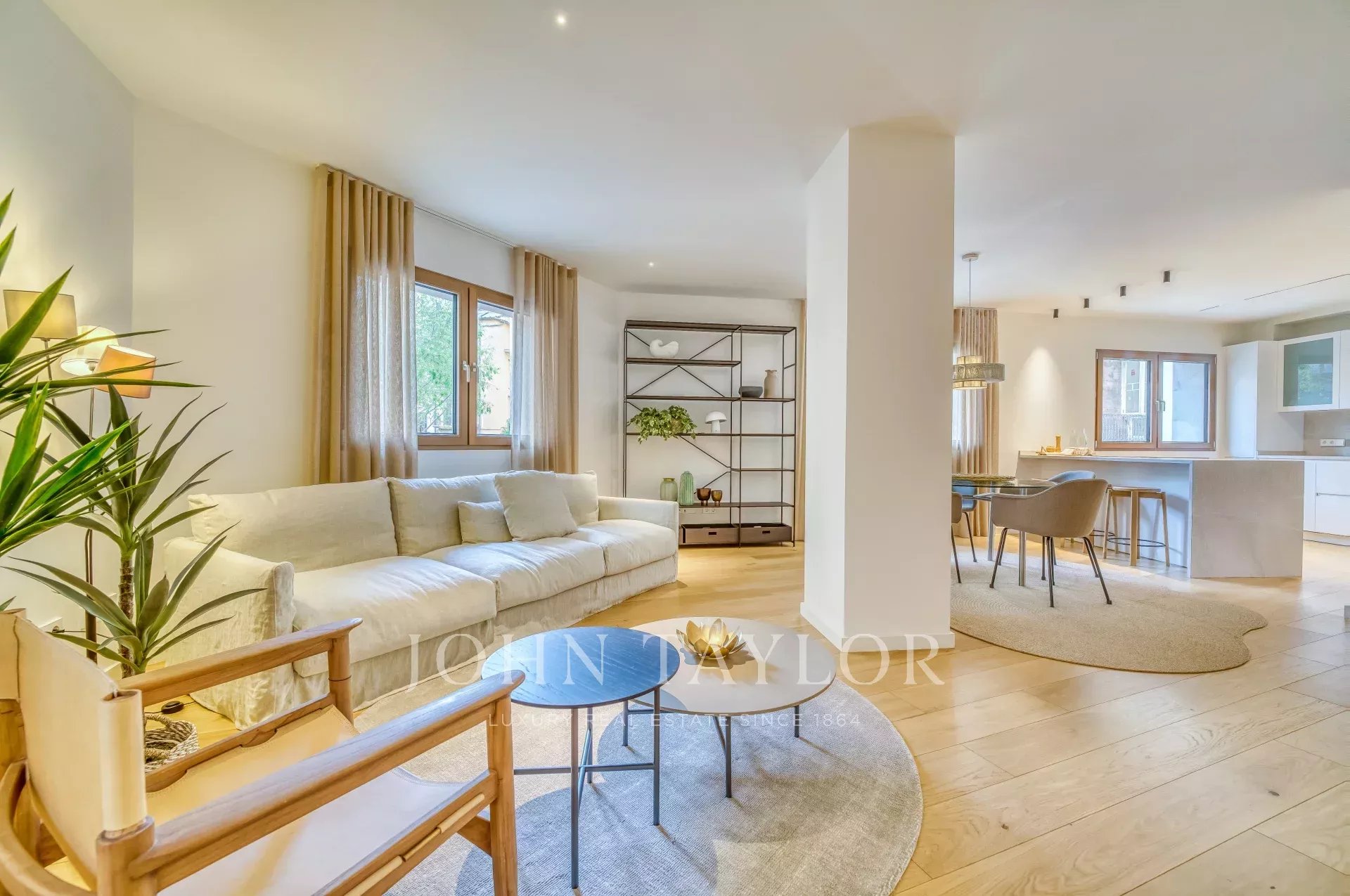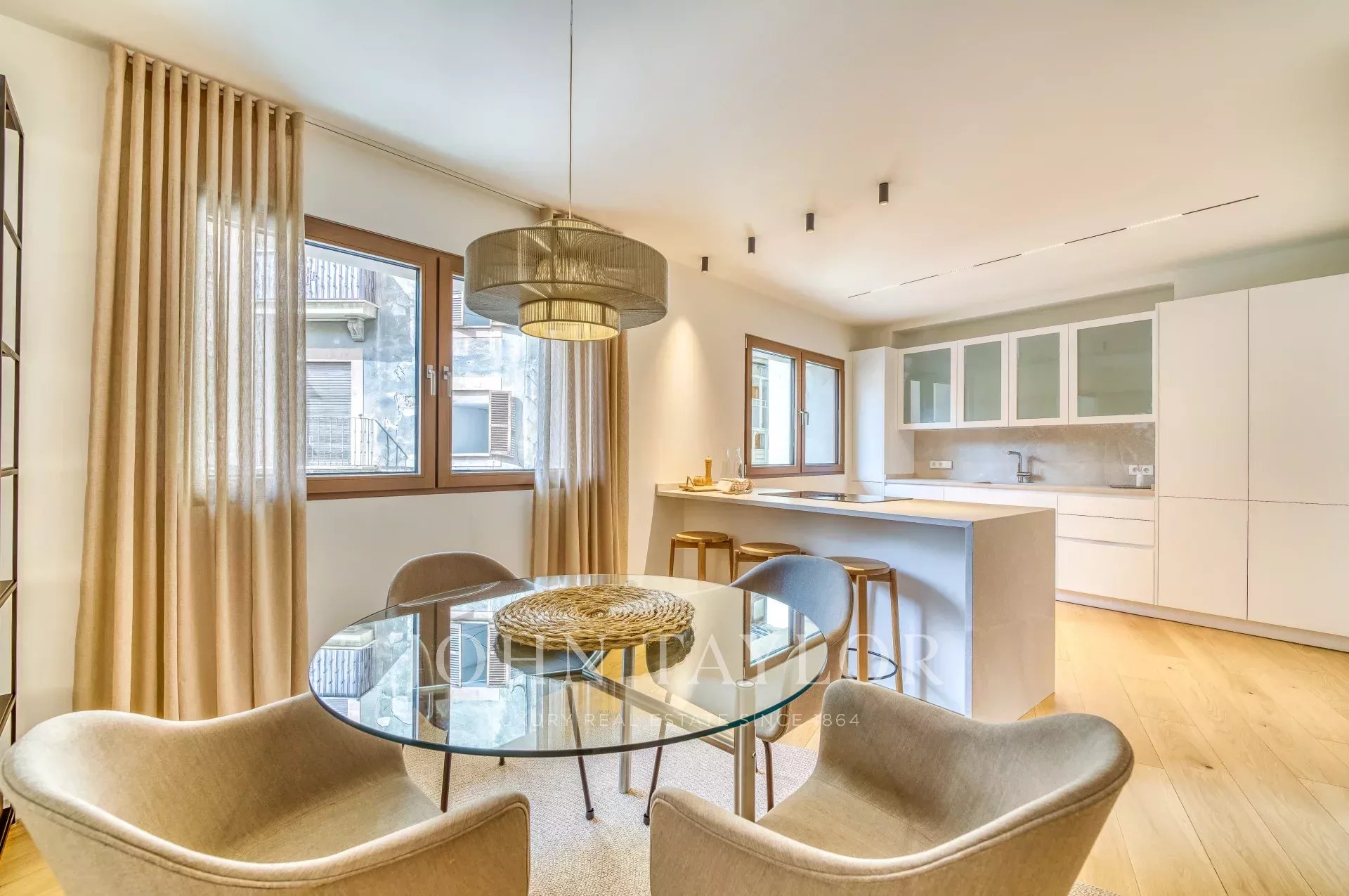 Tento luxusní apartmán se nachází na klidném náměstí Plaza v srdci starého města Palmy a skládá se ze dvou ložnic, tří koupelen (dvě en-suite, jedna koupelna pro hosty), útulné terasy a soukromé střešní terasy. Zatímco vchod nabízí otevřený půdorys kuchyně/jídelny/obývacího prostoru, ložnice vytvářejí klidné soukromí v zadní části bytu a budovy. Velká okna na míru, dřevěné podlahy a teplé tóny v interiéru zajišťují útulné prostředí ve všech místnostech. Skutečným vrcholem nemovitosti je soukromá střešní terasa, na které si můžete užívat slunce nebo se bavit s přáteli. Pro vaše pohodlí je celý byt vybaven podlahovým vytápěním, klimatizací i domácí automatizací a nabízí úložný prostor na vstupním podlaží budovy. V případě potřeby je možné dokoupit garážové stání ve stejné budově.