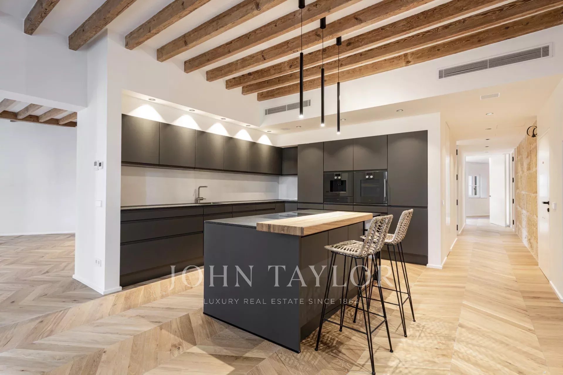 Objevte tento výjimečný luxusní apartmán, který se nachází v srdci historického centra Palmy na proslulé třídě Rambla. Tato nemovitost, dokončená v říjnu 2024, v sobě spojuje moderní eleganci s historickým šarmem a poskytuje přímý přístup k pulzujícímu životnímu stylu, restauracím a obchodům v Palmě. Byt se může pochlubit prostornou otevřenou dispozicí s plně vybavenou kuchyní, jídelnou a obývacím pokojem. Okna od podlahy až ke stropu zaplavují prostor přirozeným světlem a zvýrazňují úžasnou přírodní dubovou podlahu, původní kamenné stěny marés a autentické dřevěné trámy. Tato kombinace moderního designu a tradičních materiálů vytváří vřelou a příjemnou atmosféru. Součástí nemovitosti jsou tři ložnice a tři koupelny, z nichž dvě mají vlastní sociální zařízení. Hlavní ložnice nabízí soukromou šatnu, která zajišťuje pohodlí a luxus. Jedním z výrazných prvků je společná terasa s úchvatným výhledem na stromy lemovanou Ramblu, která je ideální pro relaxaci nebo zábavu hostů. Možnost pronájmu parkovacího místa pár metrů od domu. Tato úžasná nemovitost dokonale kombinuje špičkové vybavení s kouzlem starého města Palmy, což z ní činí ideální volbu pro ty, kteří hledají luxusní bydlení v prvotřídní lokalitě.