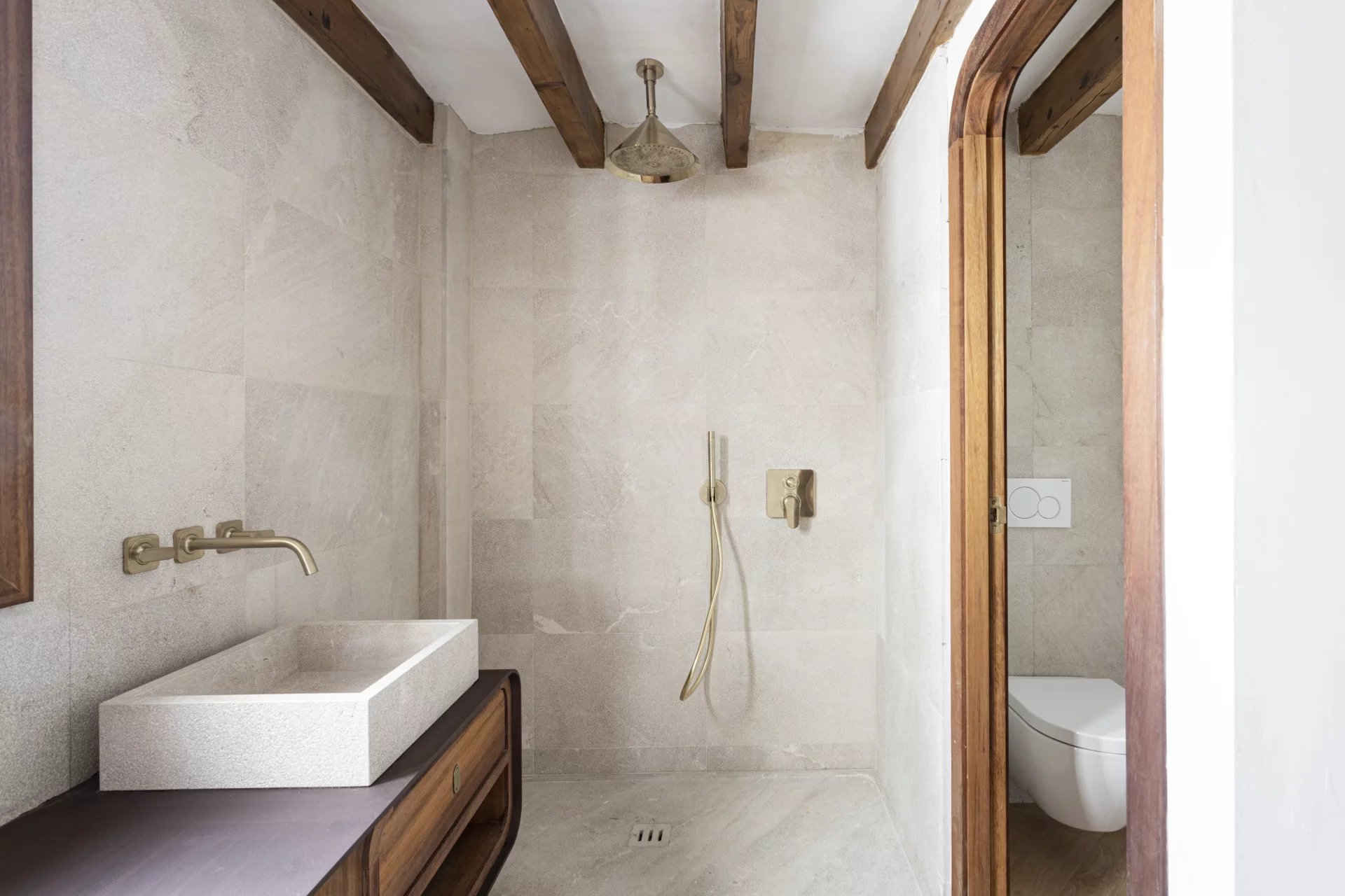 Na prodej exkluzivní zrekonstruovaný mezonetový penthouse s terasou ve starém městě Palma de Mallorca, který se nachází v prestižní čtvrti Calle Brossa, vedle symbolického kostela Sant Nicolás. Tato jedinečná nemovitost kombinuje historický půvab s moderním designem a ušlechtilými materiály a nabízí sofistikované bydlení v jedné z nejvyhledávanějších oblastí v centru Palmy. Tento luxusní penthouse se zastavěnou plochou 134 m² a velkolepou soukromou terasou o rozloze 28 m² je rozložen do dvou podlaží a byl kompletně zrekonstruován s vysoce kvalitními povrchovými úpravami. Prostorný a světlý obývací pokoj s jídelnou je dokonale propojen s moderní a funkční kuchyní. Má dvě dvoulůžkové ložnice s vestavěnými skříněmi a dvě kompletní koupelny, stejně jako třetí víceúčelovou místnost ideální jako kancelář, knihovna nebo třetí ložnice, která má vlastní toaletu a přímý vstup na terasu, jež je skutečnou městskou oázou, s předinstalací pro venkovní kuchyni, ideální pro celoroční užívání středomořského klimatu. Veškeré truhlářské práce v interiéru i exteriéru byly vyrobeny z teakového dřeva, které zajišťuje eleganci, odolnost a charakter, zatímco masivní dřevěné podlahy ve všech místnostech poskytují teplou a příjemnou estetiku. Nedílnou součástí rekonstrukce bylo dvojité zasklení, klimatizace, teplá/chladná a optimalizované uspořádání pro maximální využití přirozeného světla. Tato exkluzivní nemovitost je ideální jak pro trvalé bydlení, tak jako špičková investiční nemovitost v Palma de Mallorca, a to díky své výsadní poloze v centru starého města, obklopeného historií, kulturou, obchody a restauracemi. Autentický architektonický skvost s mallorskou duší a moderním designem, ideální pro ty, kteří si chtějí koupit penthouse v centru Palmy s terasou a vysokou kvalitou.