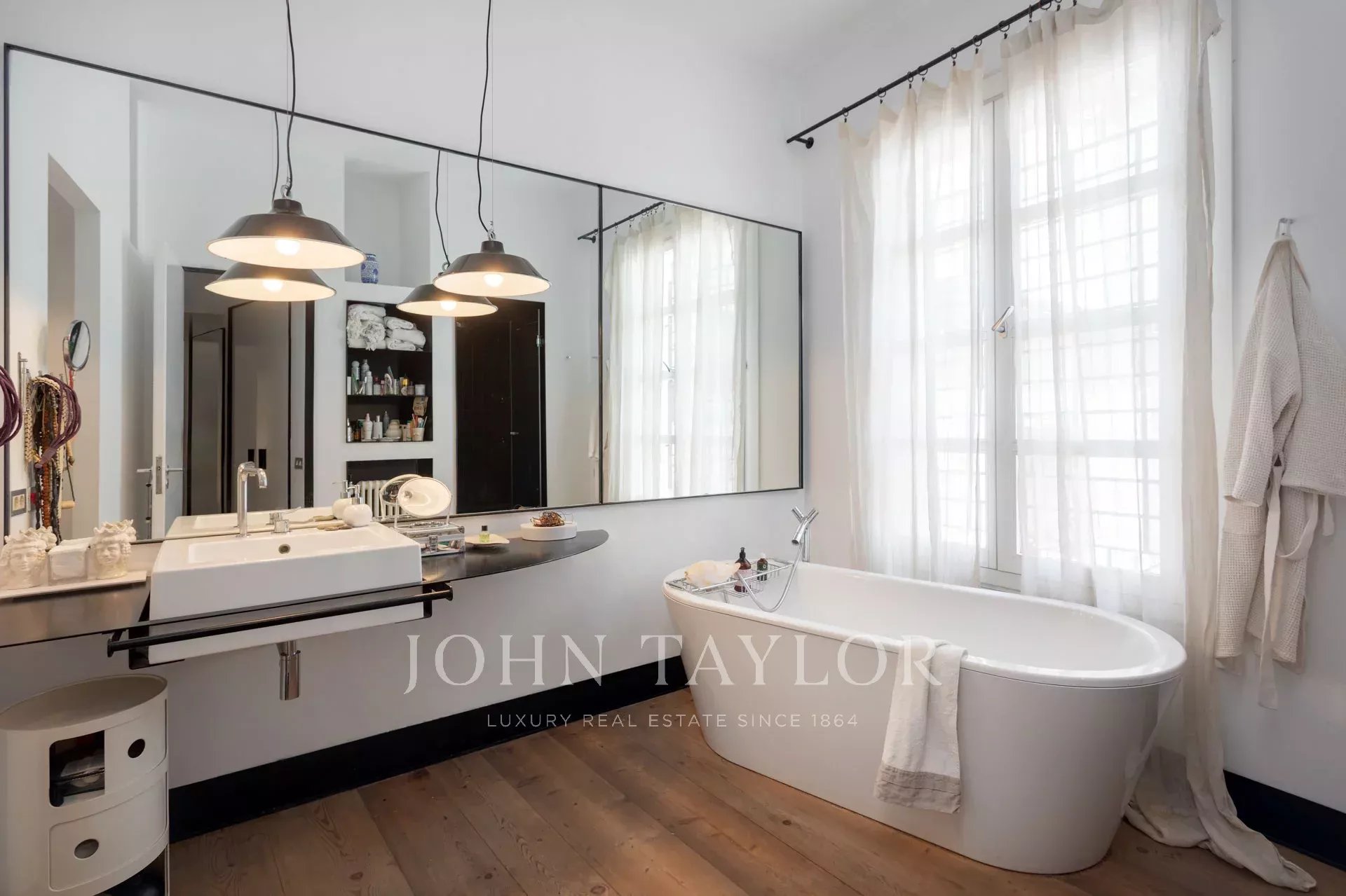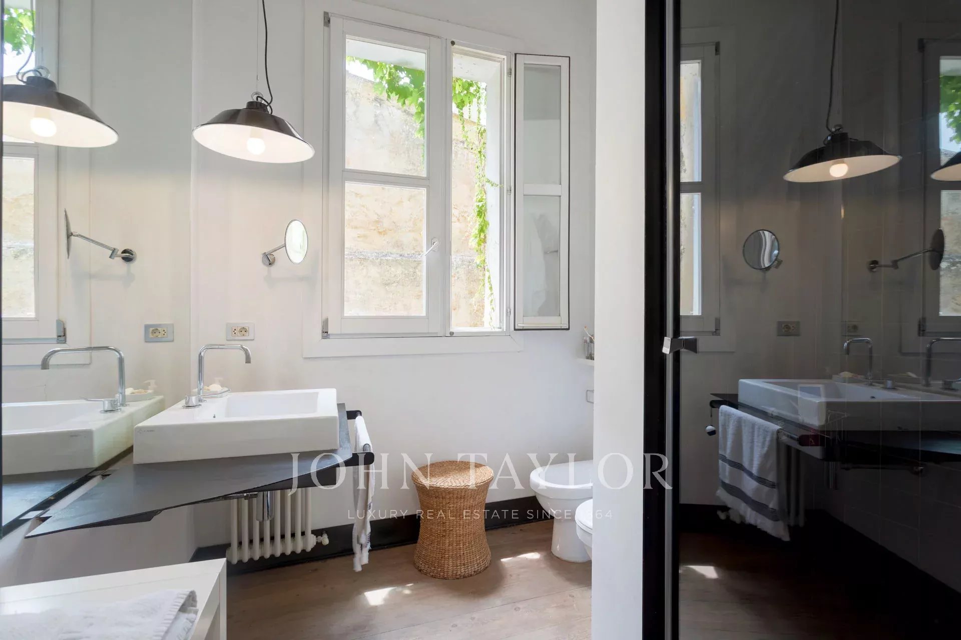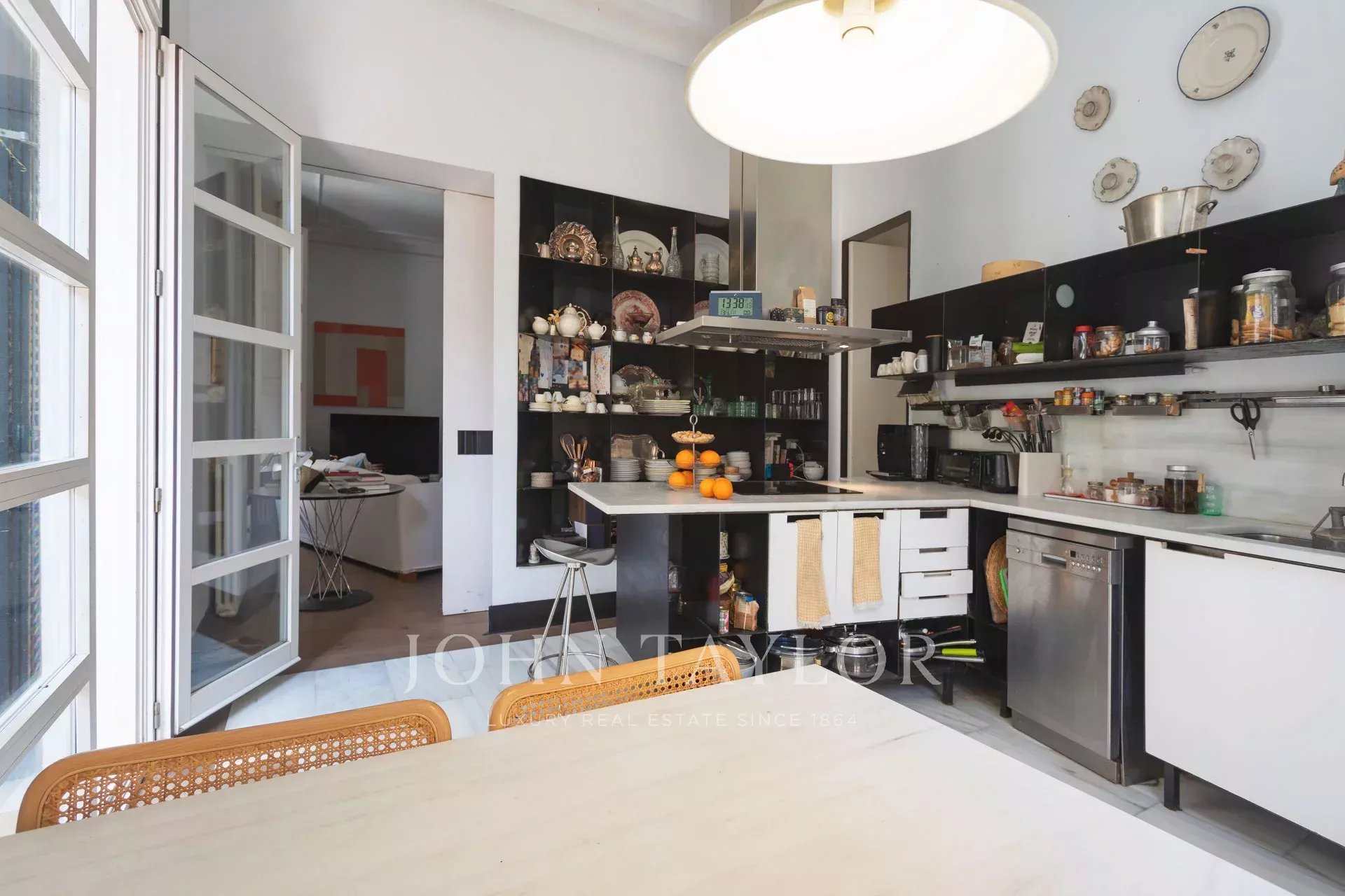 Ve spodní úrovni se jídelna, obývací prostor a plně vybavená kuchyň otevírají přímo na působivou soukromou terasu, která je klidným útočištěm v centru města. Několik míst k posezení a bazén o rozloze 25 m² vytvářejí dokonalé prostředí pro relaxaci nebo zábavu. Vysoké okolní stěny zajišťují naprosté soukromí a zároveň umožňují dostatek přirozeného světla.