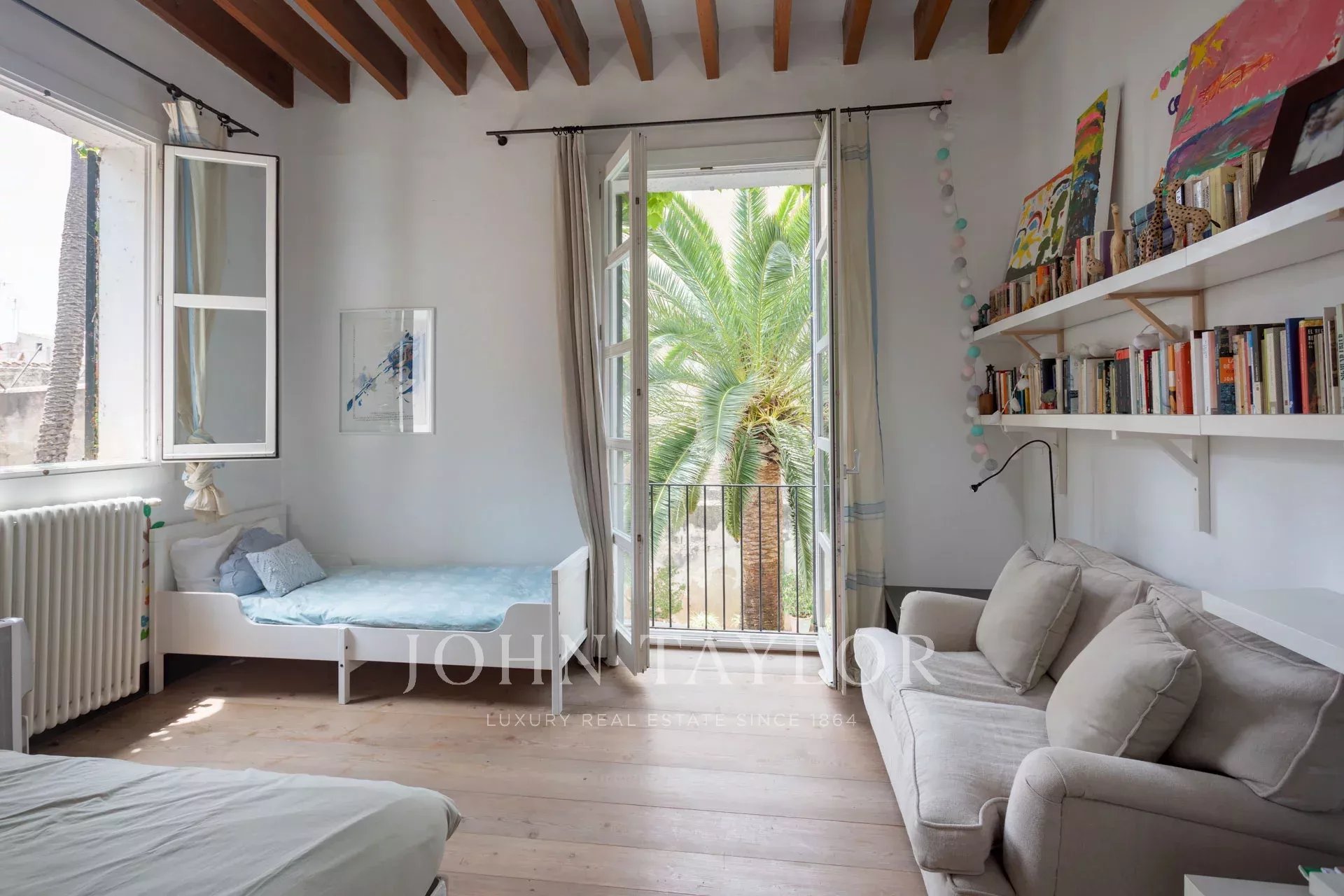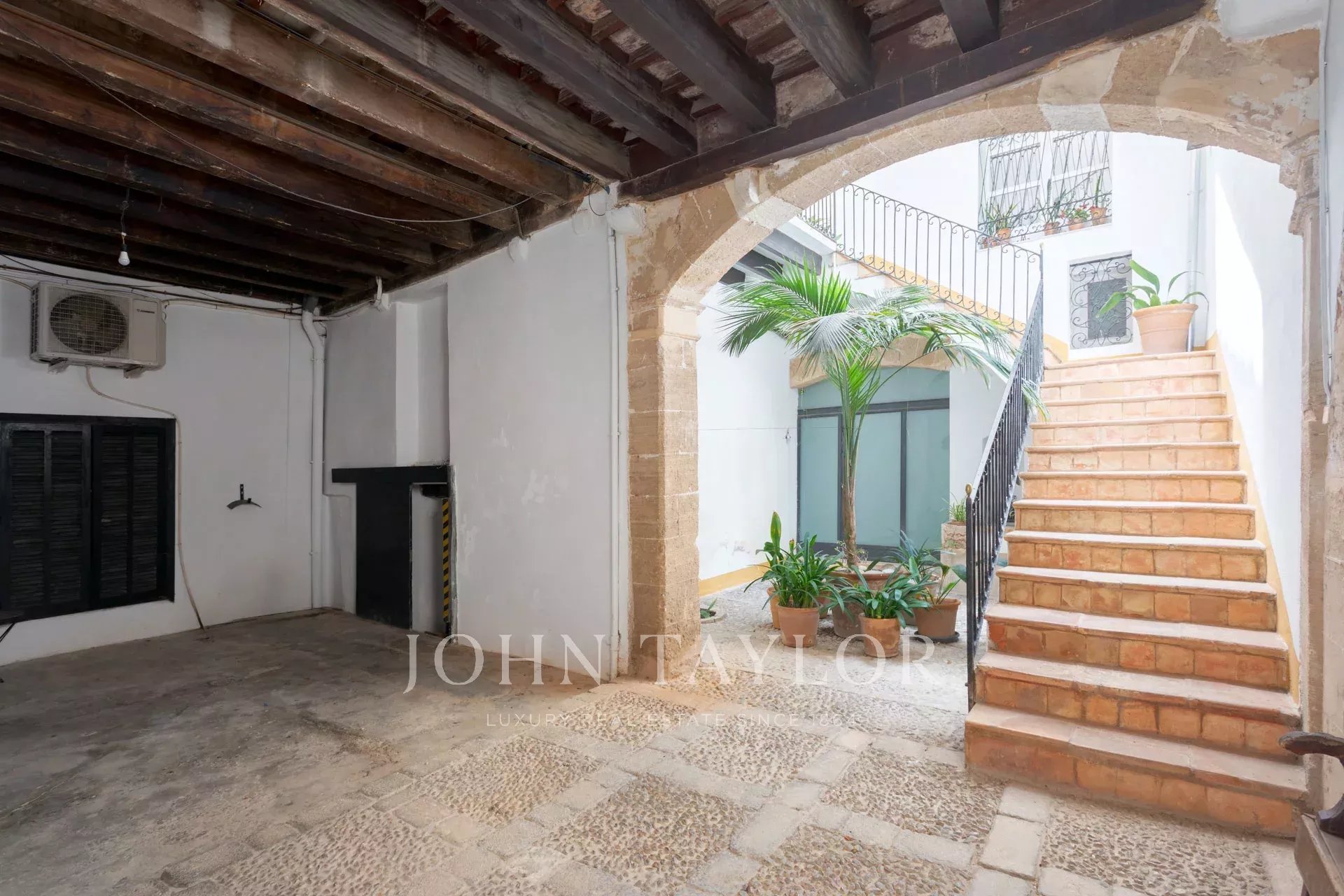Tento vzácný klenot je jedním z mála zbývajících příkladů civilní gotické architektury v Palmě, což mu dodává významnou historickou a kulturní hodnotu. U vchodu vás přivítají stoupající stropy, velkolepá chodba a elegantní kované schodiště. Toto podlaží doplňuje knihovna - snadno přeměnitelná na ložnici. V patře najdete dvě prostorné ložnice s vlastní koupelnou a výhledem na klidnou terasu. Hlavní apartmá se může pochlubit luxusní koupelnou s vanou, velkým sprchovým koutem a šatnou.