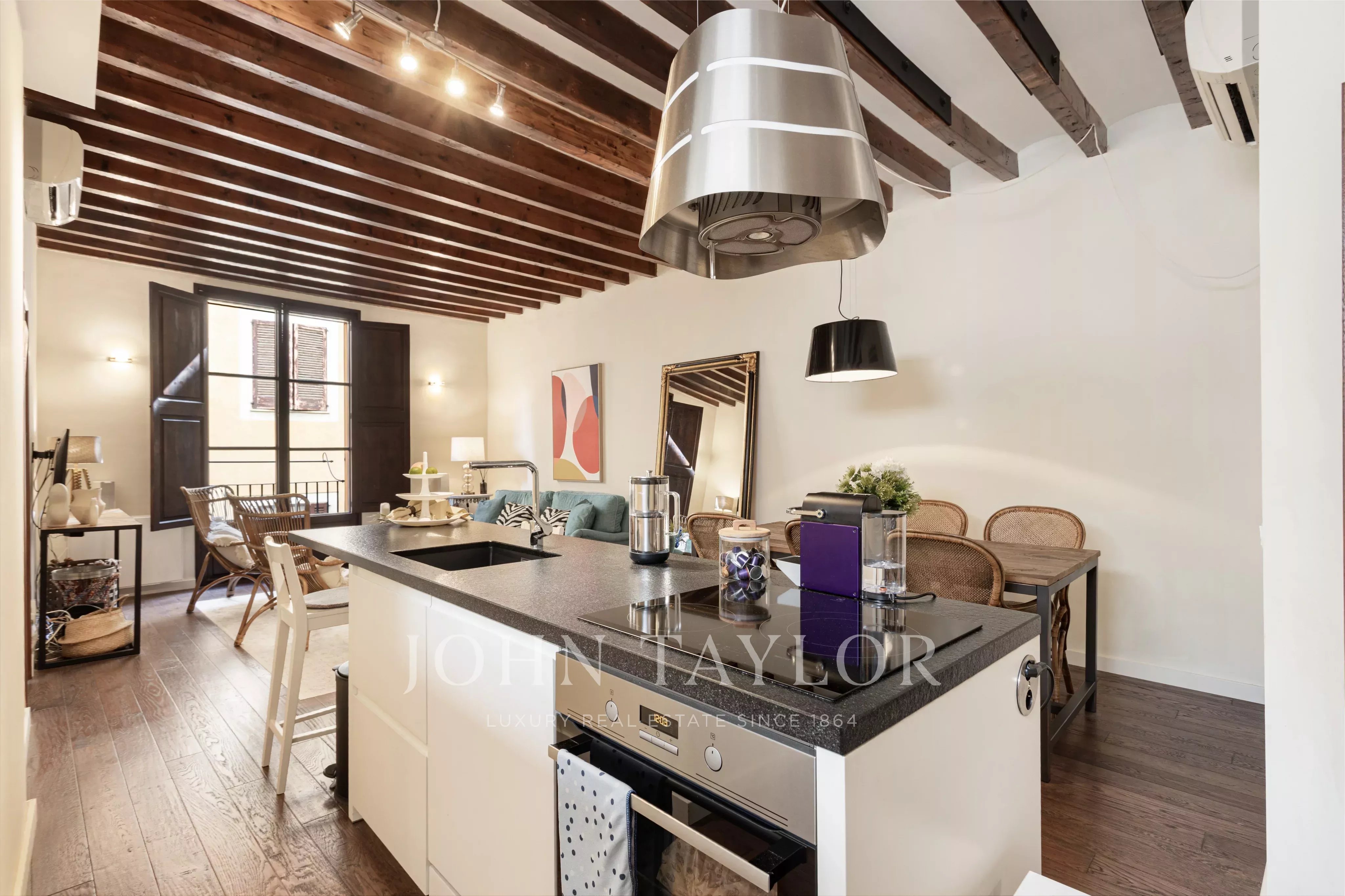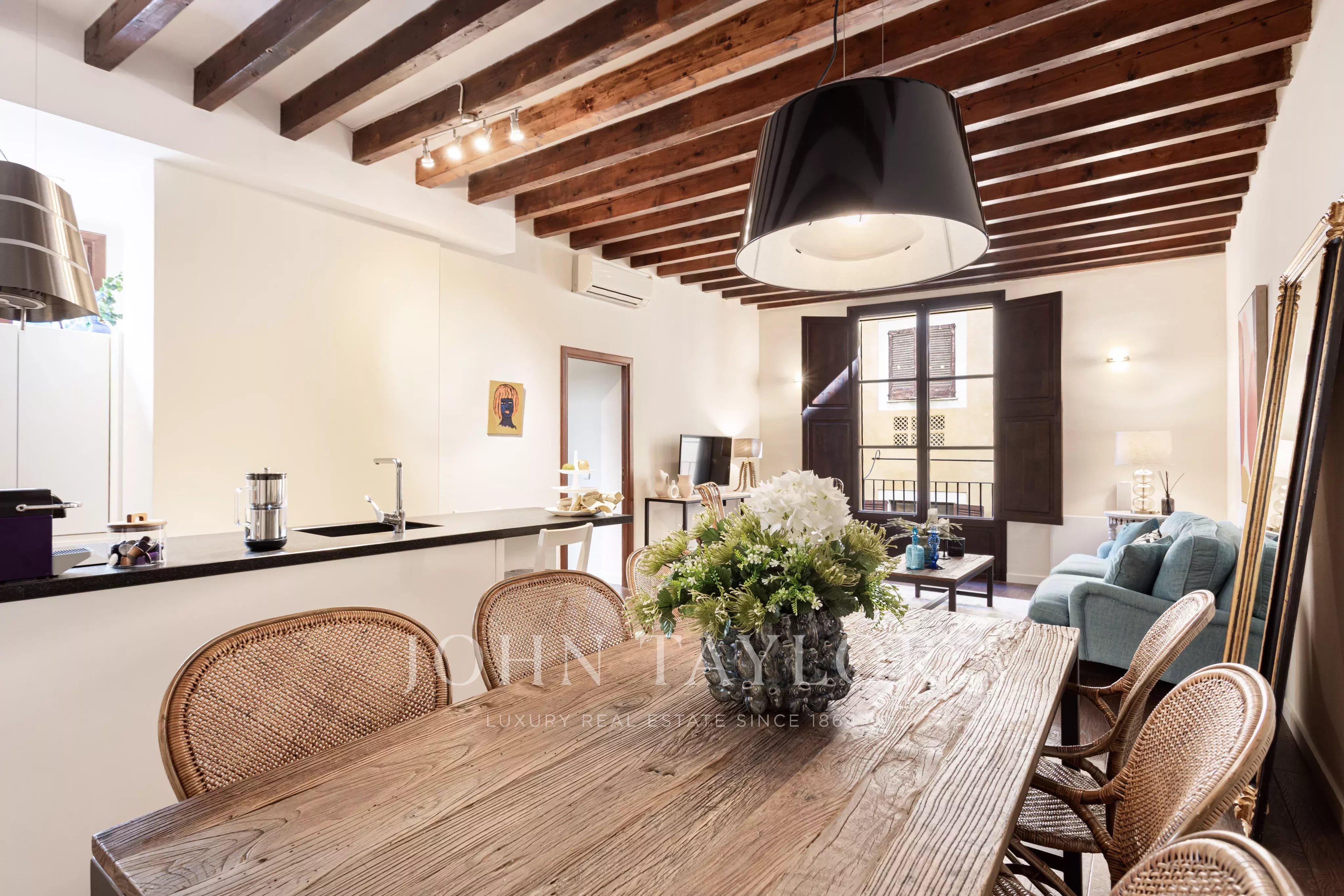 Objevte tento nádherně zrekonstruovaný apartmán v centru Palmy, dokonale navržený pro sofistikované bydlení ve městě. Má přímý vstup z exkluzivní ulice Paseo del Borne, ale přitom je orientován do klidné ulice, takže nabízí soukromí, klid a světlou, vzdušnou atmosféru.