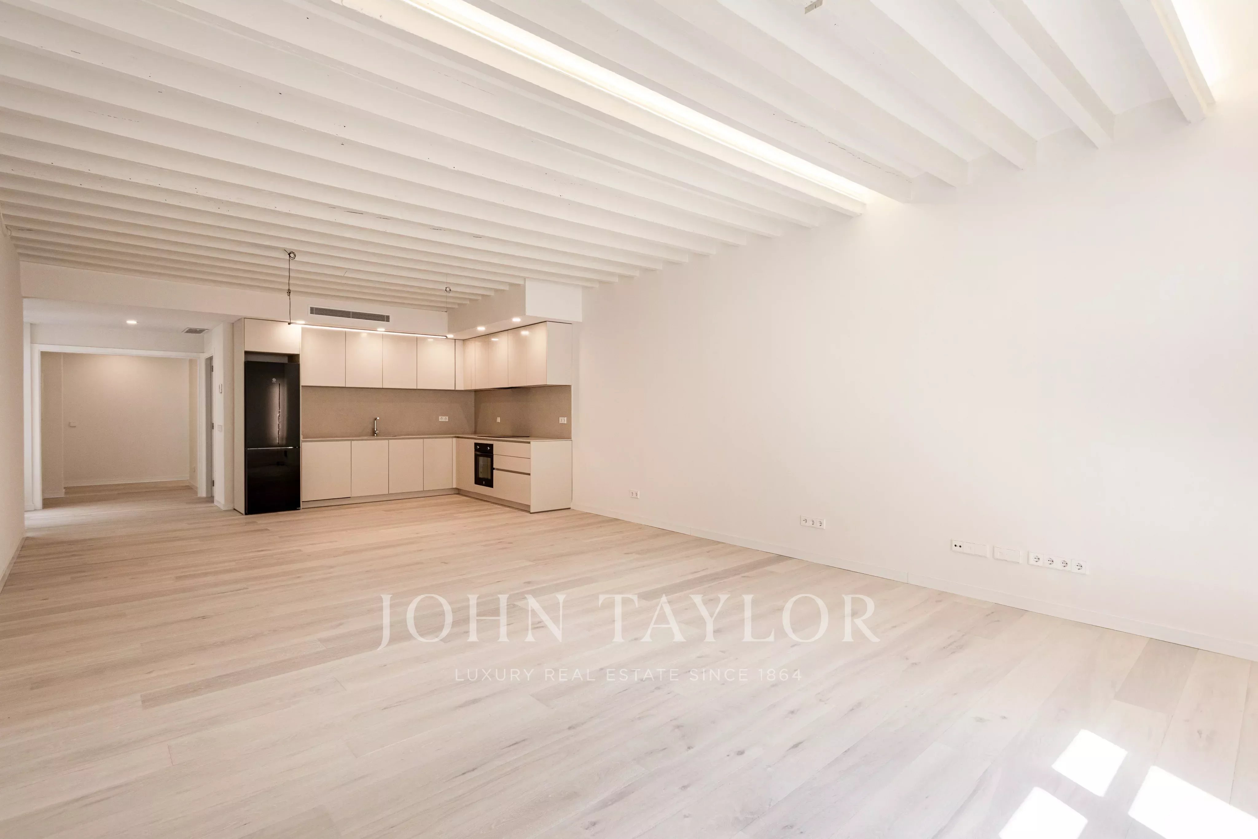 V živé části historického centra Palma de Mallorca se tento exkluzivní, kompletně zrekonstruovaný byt ve třetím patře snoubí s mediteránním životním stylem a moderním komfortem bydlení. Přestože se nemovitost nachází v samotném srdci živého historického centra, obytné prostory jsou orientovány do zadní části budovy, což vytváří příjemně klidnou atmosféru. Butiky, restaurace a bary jsou jen pár kroků odtud, zatímco nejbližší pláž s beach clubem je vzdálena přibližně 15 minut chůze.