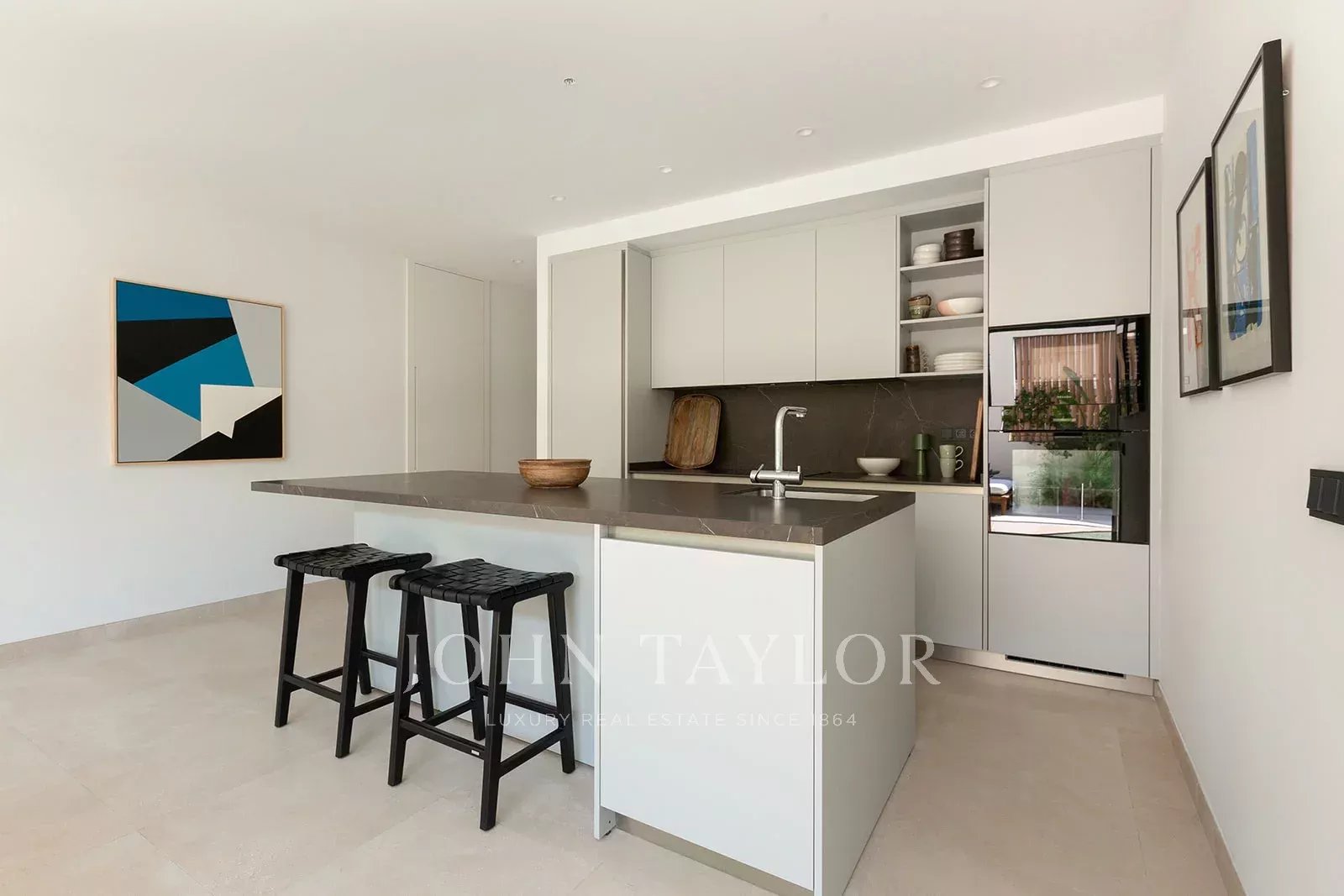 Apartmán se může pochlubit 106 m² vnitřního prostoru s otevřenou dispozicí. Moderní kuchyně je vybavena centrálním ostrůvkem, prvotřídními spotřebiči Miele a bezproblémovým propojením s obývacím a jídelním prostorem - ideální pro zábavu i každodenní život.