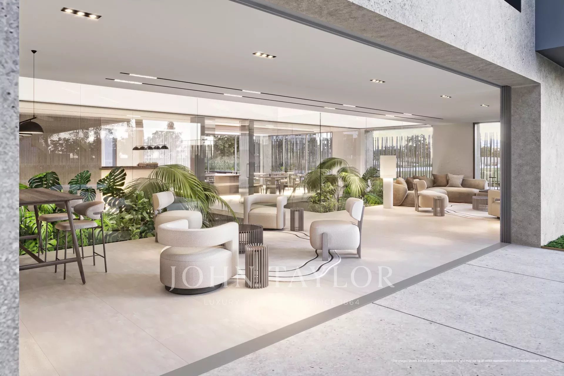 Tento třípodlažní byt je bezpochyby jedním z největších v rezidencích XO Parq. Přístup k němu je zajištěn soukromým výtahem, který zajišťuje pohodlí a soukromí. Spodní patro zahrnuje velkou otevřenou kuchyň, jídelnu a obývací prostor plný přirozeného světla. Dvě ložnice a jedna koupelna na tomto podlaží jsou ideální pro hosty. Toto patro je doplněno prádelnou a toaletou pro hosty. První patro, do kterého se lze dostat po schodech nebo výtahem, nabízí třetí ložnici s vlastní koupelnou a šatnou. Čtvrtá ložnice je hlavní apartmá s otevřenou šatnou, soukromou terasou a vlastní koupelnou. Z druhého patra je možné vstoupit na nádhernou střešní terasu o rozloze 88 m2 se spoustou prostoru pro slunění, zábavu nebo čistou relaxaci. Díky celkové zastavěné ploše 369 m² a obytné ploše 162 m² můžete očekávat komfortní a stylovou atmosféru bydlení. Na výběr jsou tři provedení interiéru: Adagio, Arta a Raw.