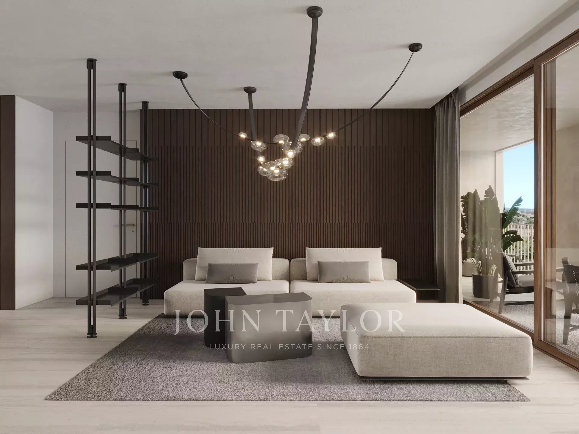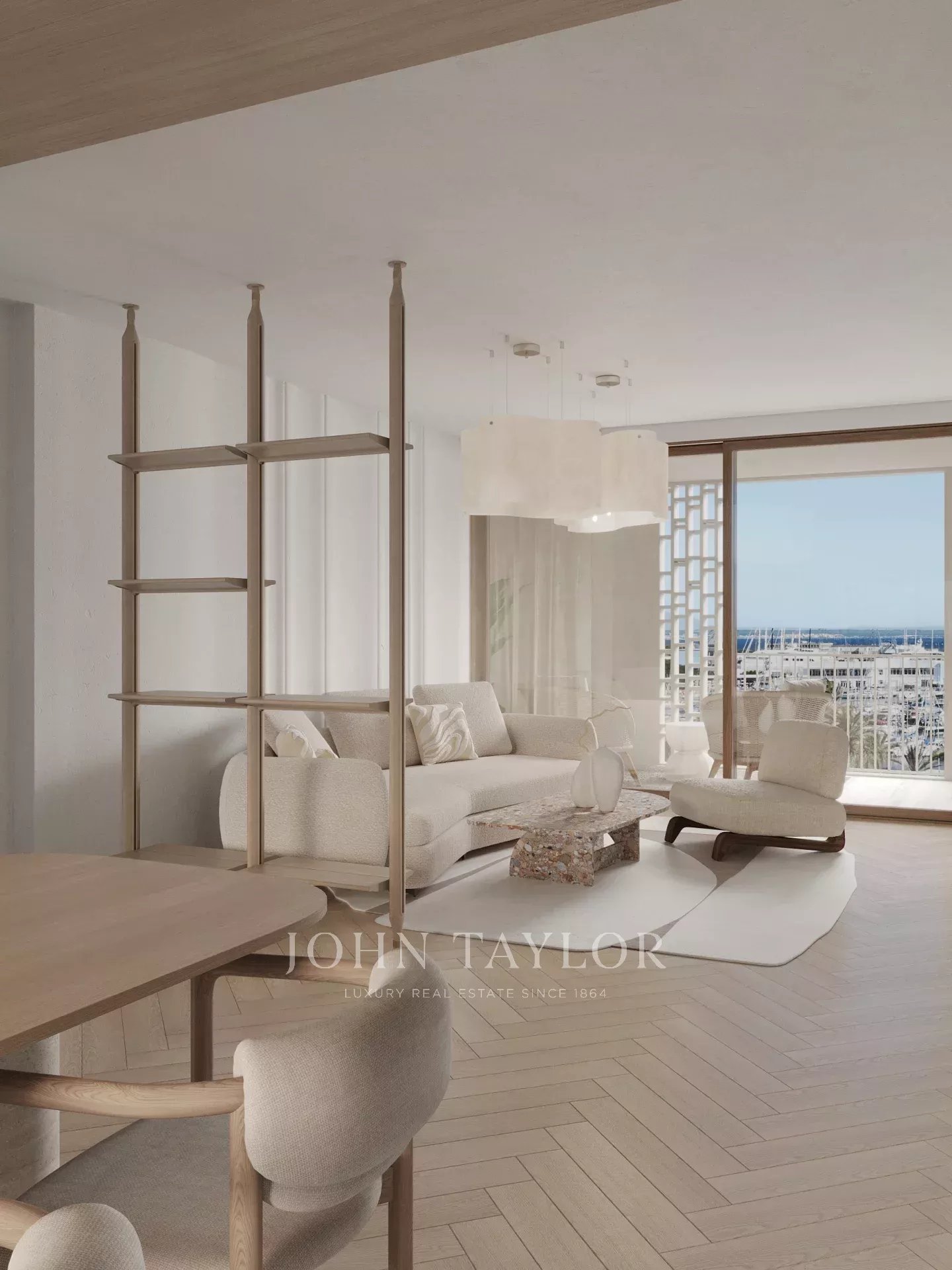 Tento apartmán v prvním patře nabízí otevřený půdorys s plně vybavenou kuchyní, jídelnou a obývacím prostorem s okny od podlahy ke stropu, která zajišťují maximální přirozené světlo, a vede na útulnou krytou verandu, která vytváří příjemný prostor. Apartmán je vybaven dvěma ložnicemi a dvěma koupelnami (1 s vlastní koupelnou). Celková plocha interiéru je 95 m2 s krytou terasou o rozloze 7 m2.