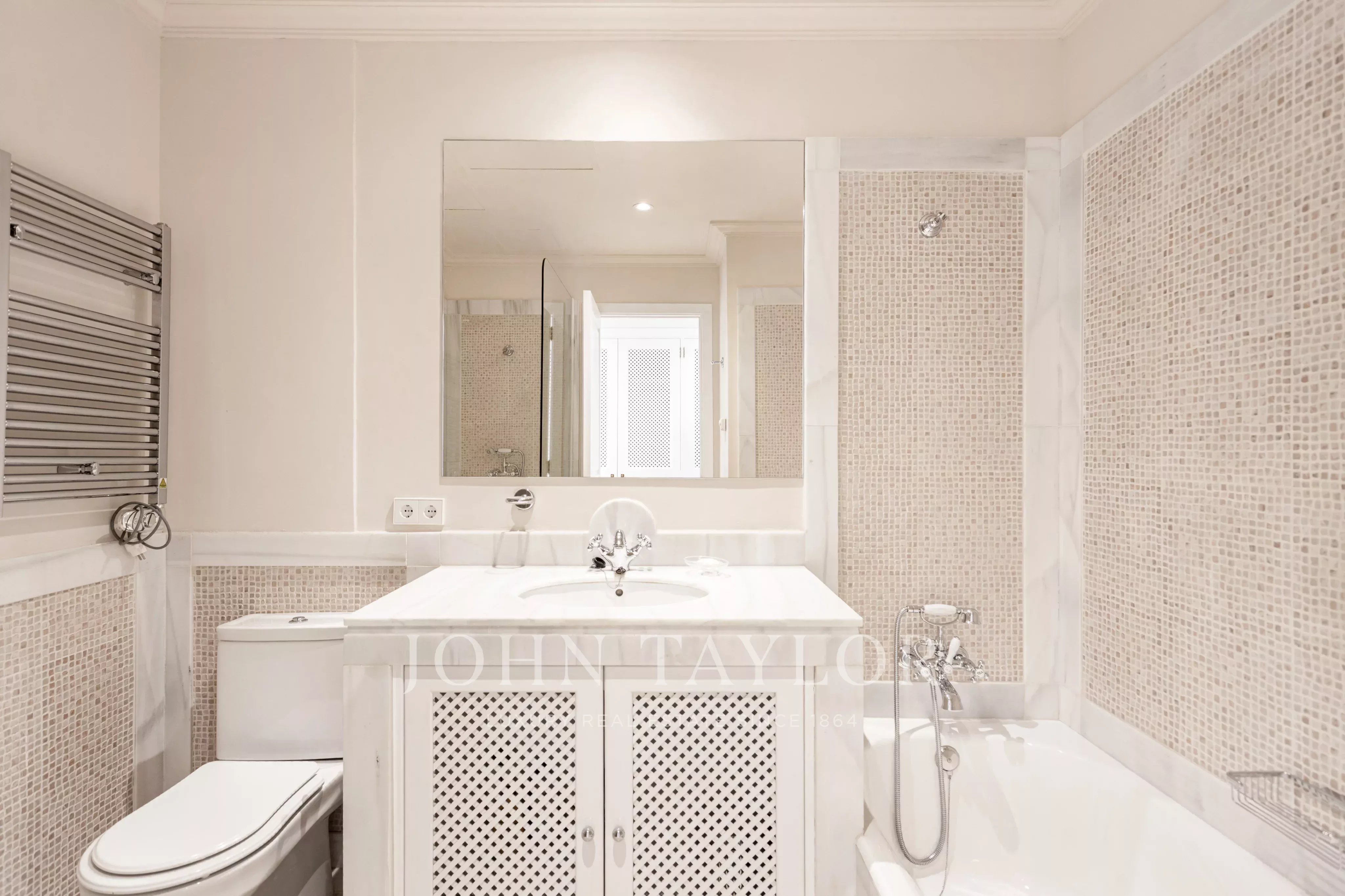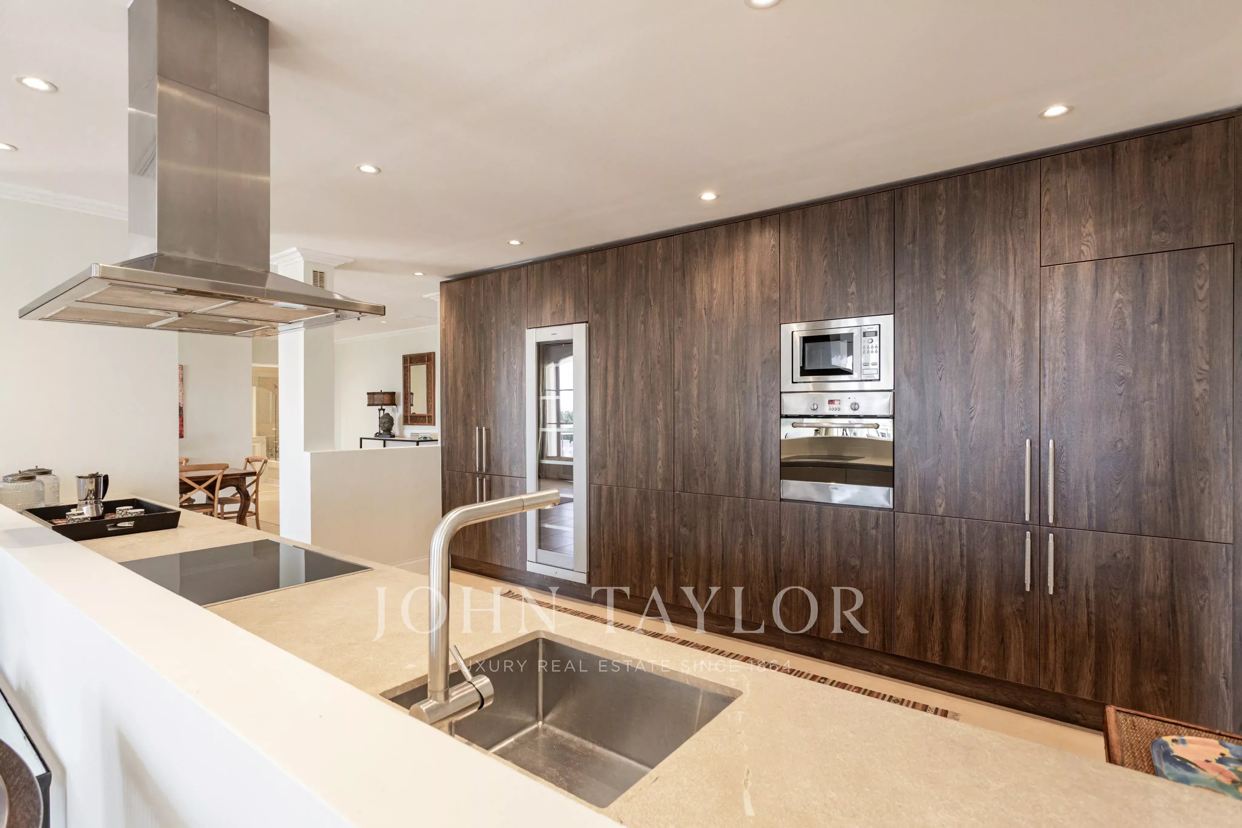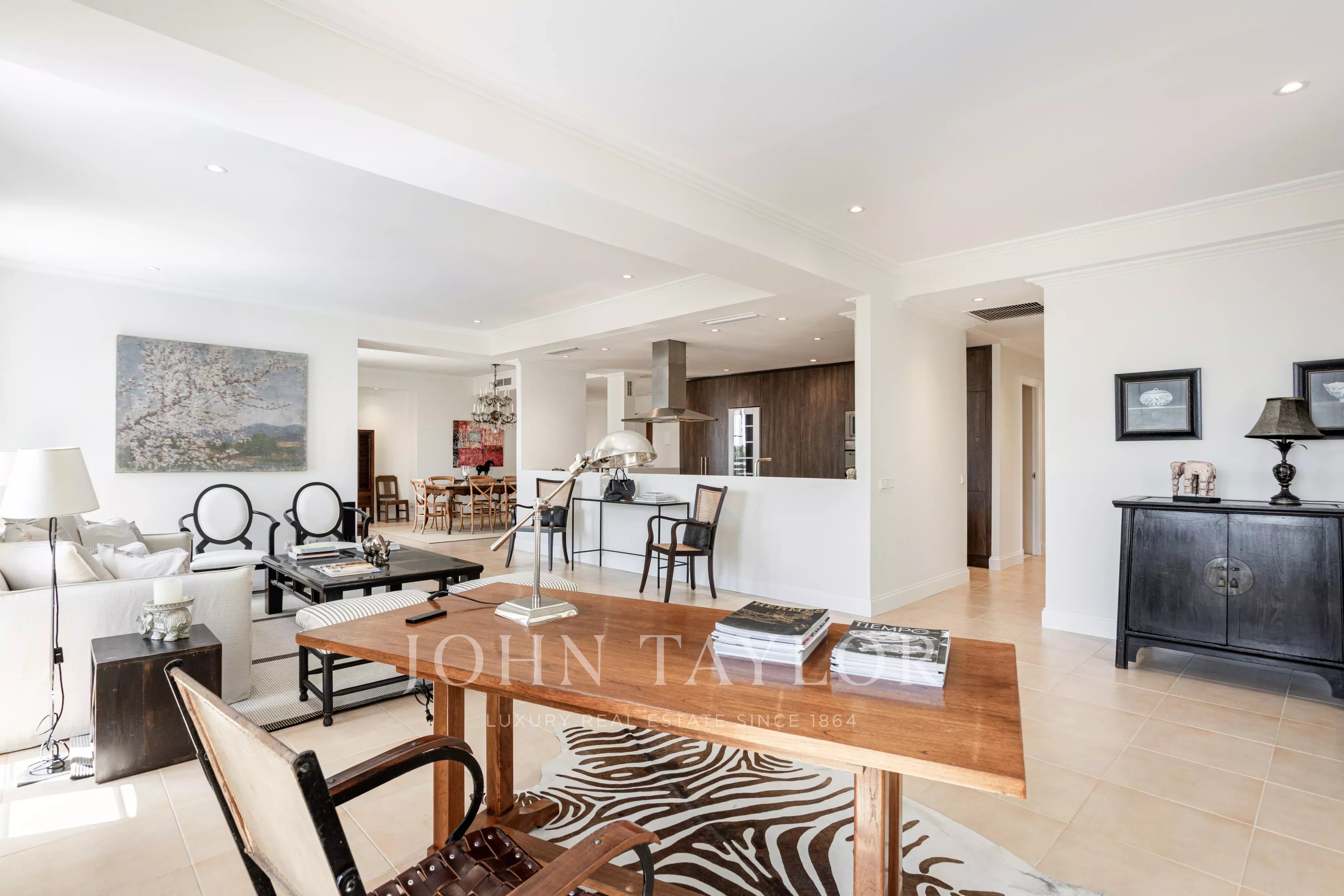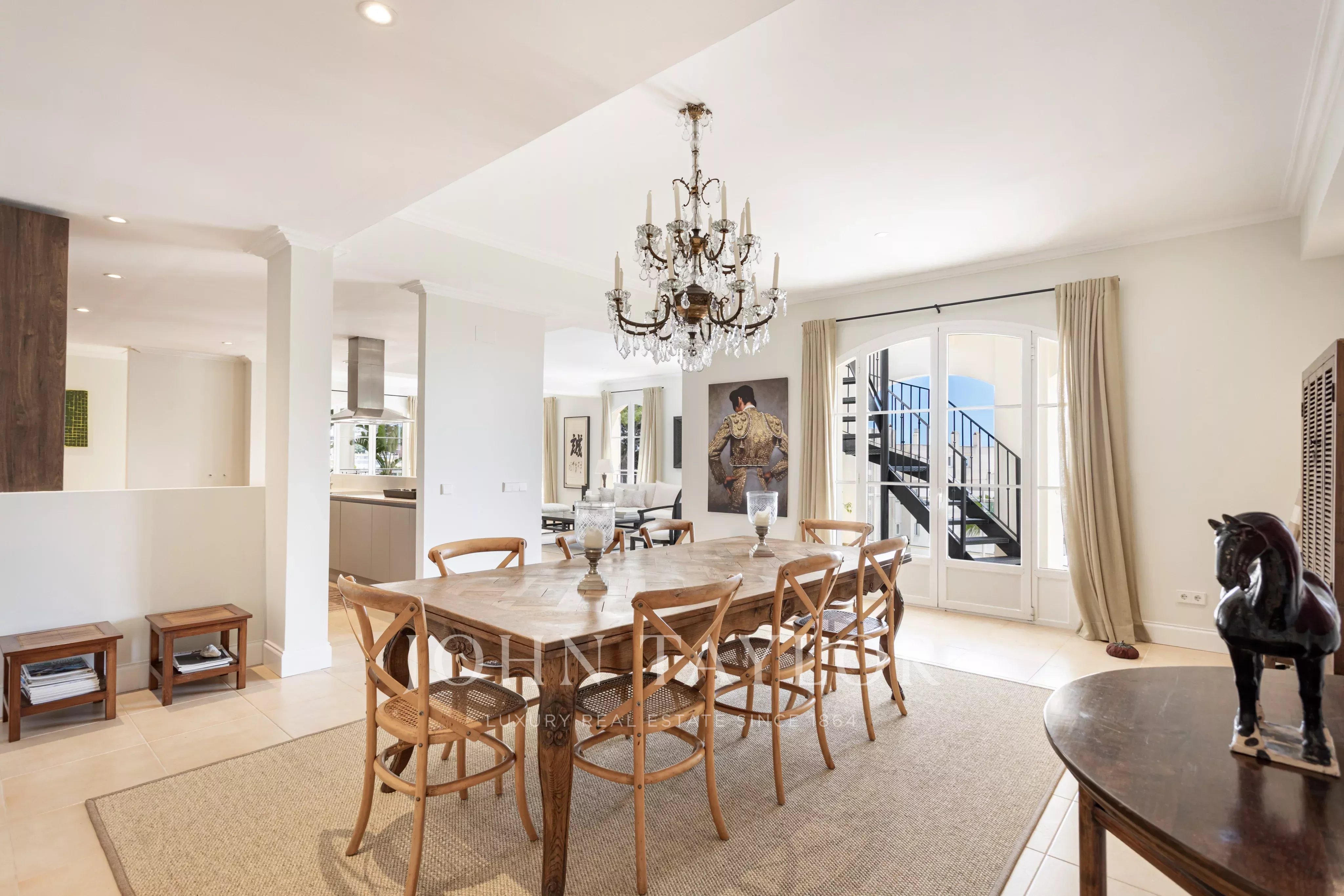 Penthouse se nachází v budově s velmi malým počtem sousedů, což zaručuje vysokou úroveň soukromí. Nemovitost má přibližně 255 m² a nabízí čtyři ložnice a tři koupelny plus samostatné WC. Dvě ložnice mají vlastní koupelnu.