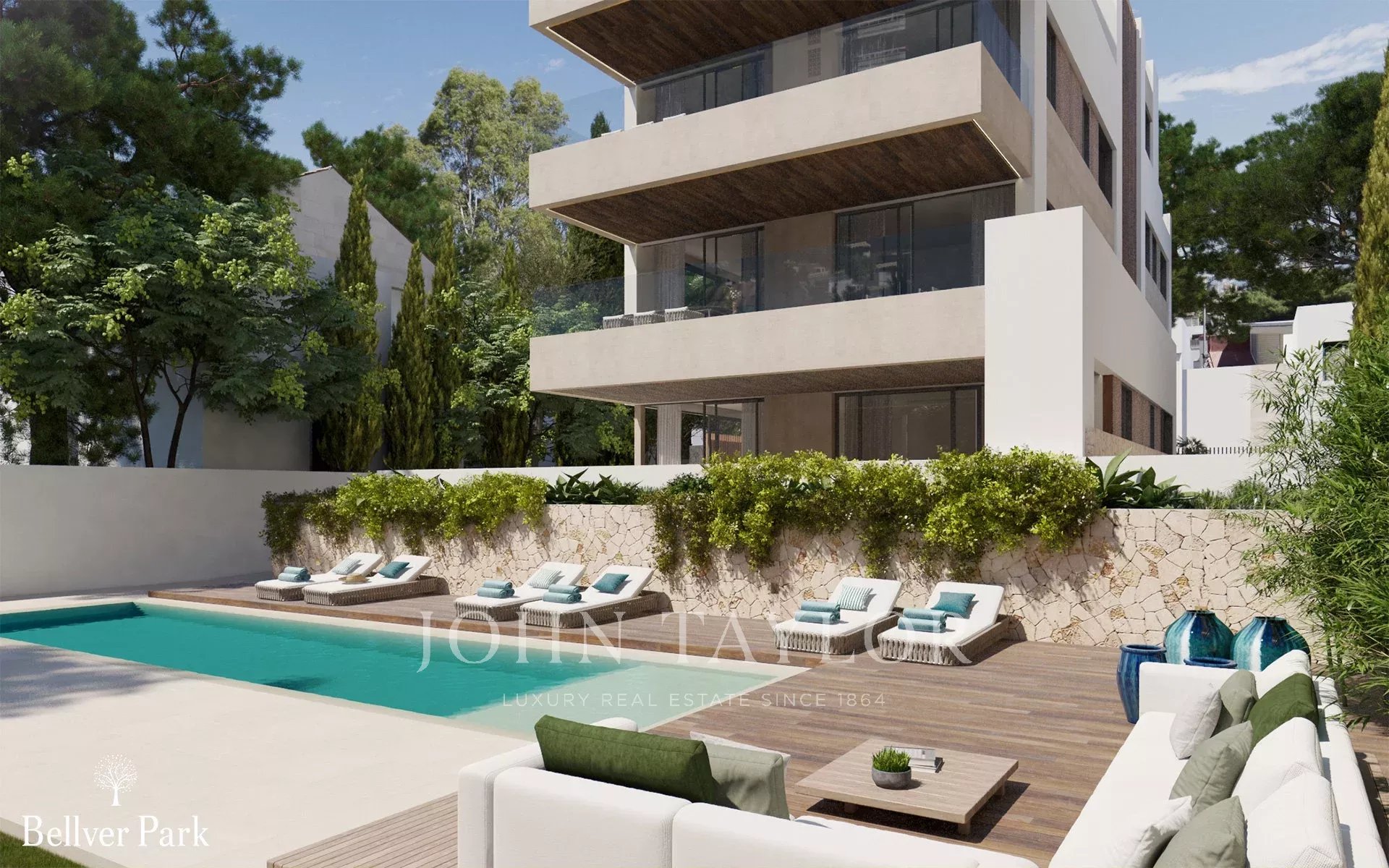 Tento přízemní apartmán má velkou zahradu orientovanou na jih a vytváří spíše pocit domu než bytu. Je mírně vyvýšený, takže nejste na úrovni komunitního bazénu, ale máte přímý přístup ze zahrady k bazénu. Tento apartmán se třemi ložnicemi a dvěma koupelnami nabízí 93 m2 vnitřní obytné plochy a 75 m2 venkovní zahrady. V ceně je zahrnuto jedno podzemní parkovací stání a úložný prostor. K dispozici je seznam doplňků, kde si můžete přidat pergolu, vířivku nebo další stromy a rostliny.