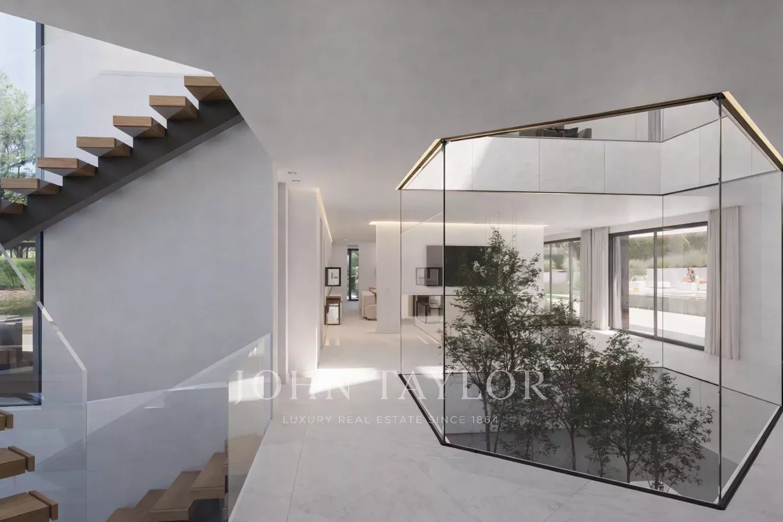 V prvním patře odděluje prosklené a stromy lemované vnitřní designové patio hlavní apartmá od ostatních tří ložnic (možnost čtyř ložnic), všechny s vlastní koupelnou, velkou šatnou a terasou. Hlavní apartmá se vstupem na velkou terasu orientovanou na jih a s volně stojící vanou a dvěma hydromasážními sprchami a dvěma nezávislými šatnami.
