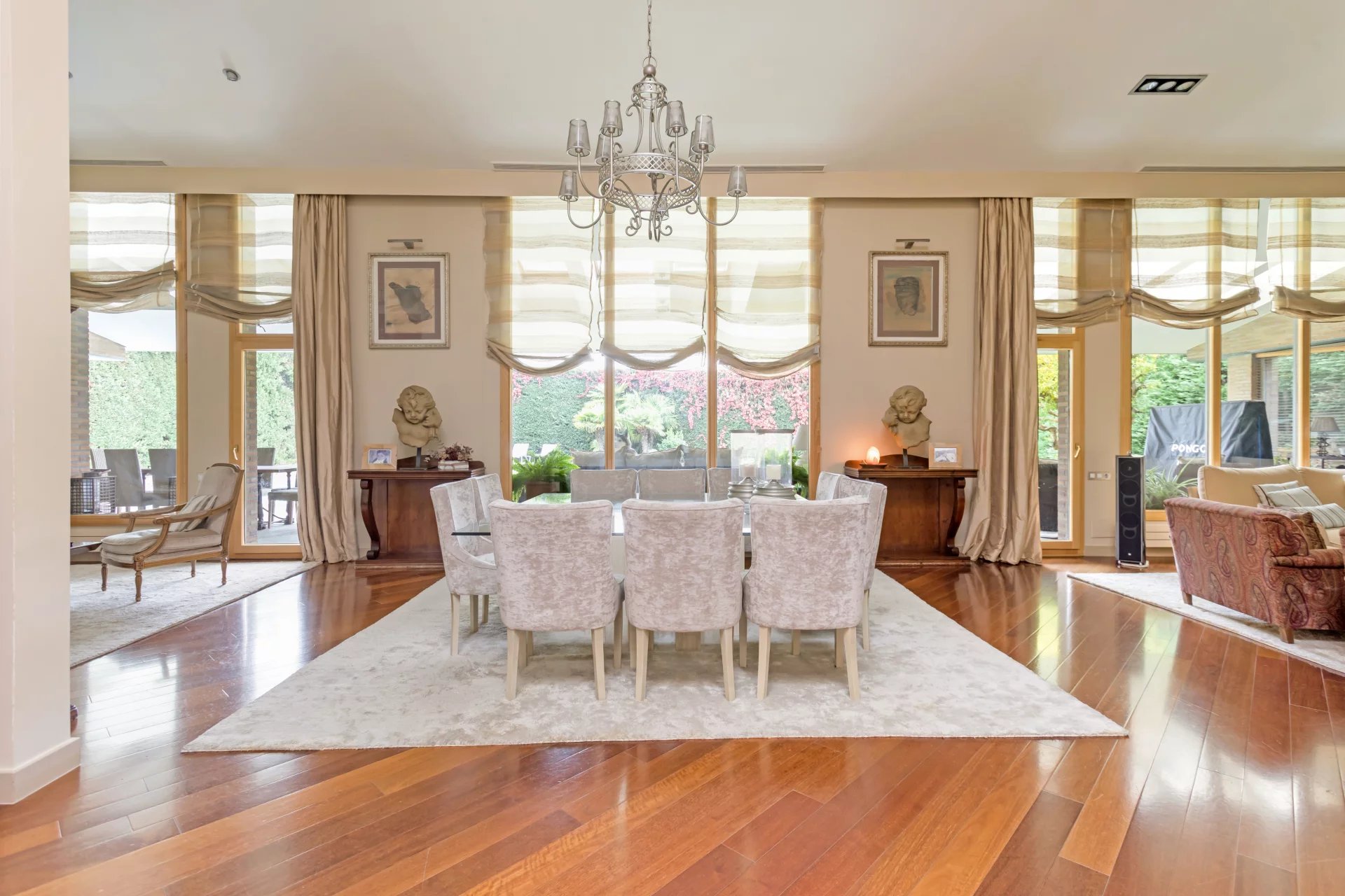 V prestižní rezidenční čtvrti La Finca v Pozuelo de Alarcón vám představujeme tuto nádhernou samostatně stojící vilu, která je ztělesněním architektonické dokonalosti a současného luxusu. Tato nemovitost o rozloze 815 m², postavená na pozemku o rozloze 1 100 m², vyniká funkčním designem, světlostí, kterou jí zajišťuje jižní orientace, a soukromím, které zaručuje její umístění v jedné z nejbezpečnějších a nejexkluzivnějších urbanizací v Evropě.