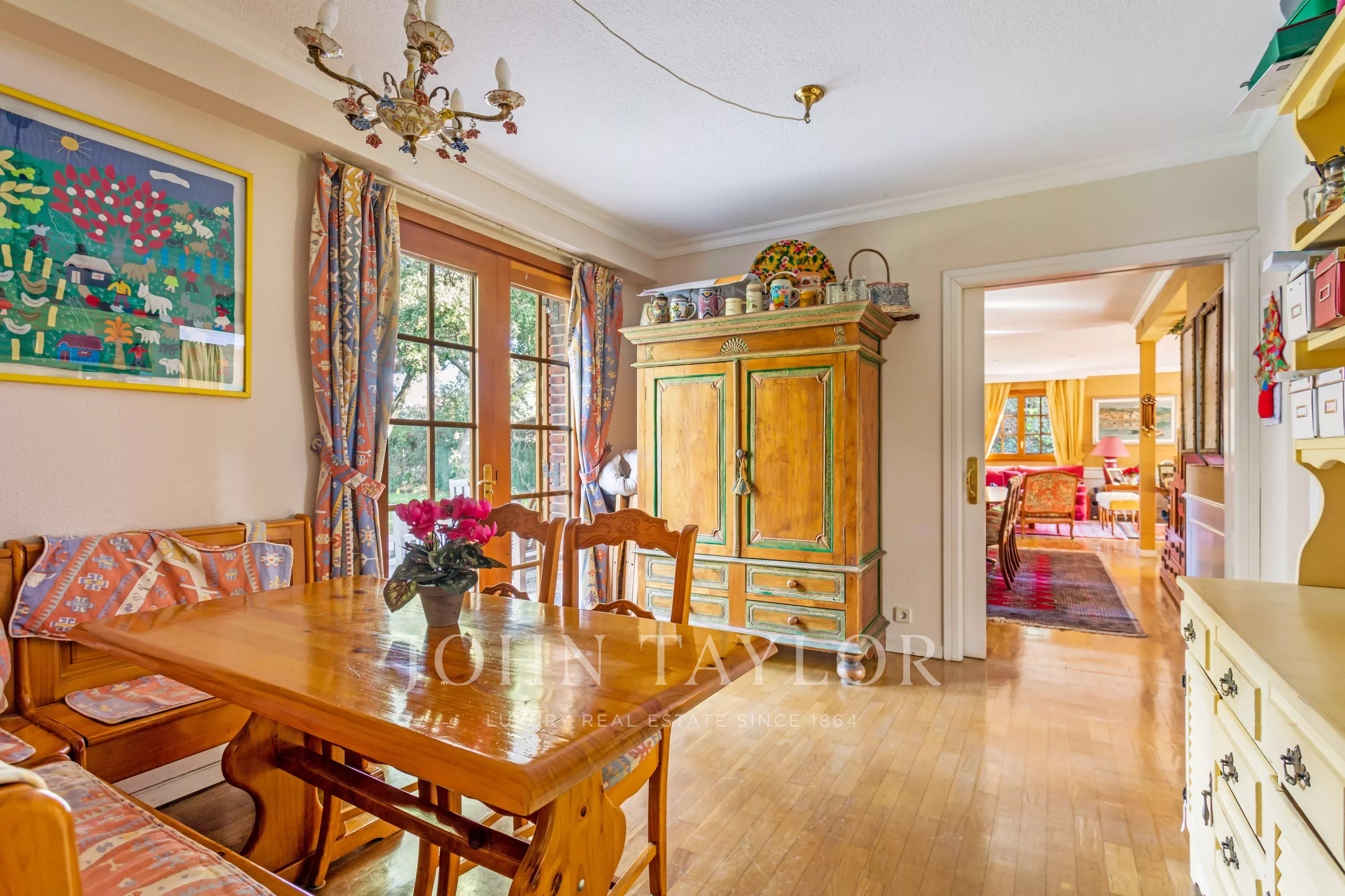 Samostatně stojící dvoupatrová vila postavená na velkém zalesněném pozemku o rozloze téměř 2 300 m2 a zastavěné ploše přibližně 400 m2, kterou lze rozšířit.