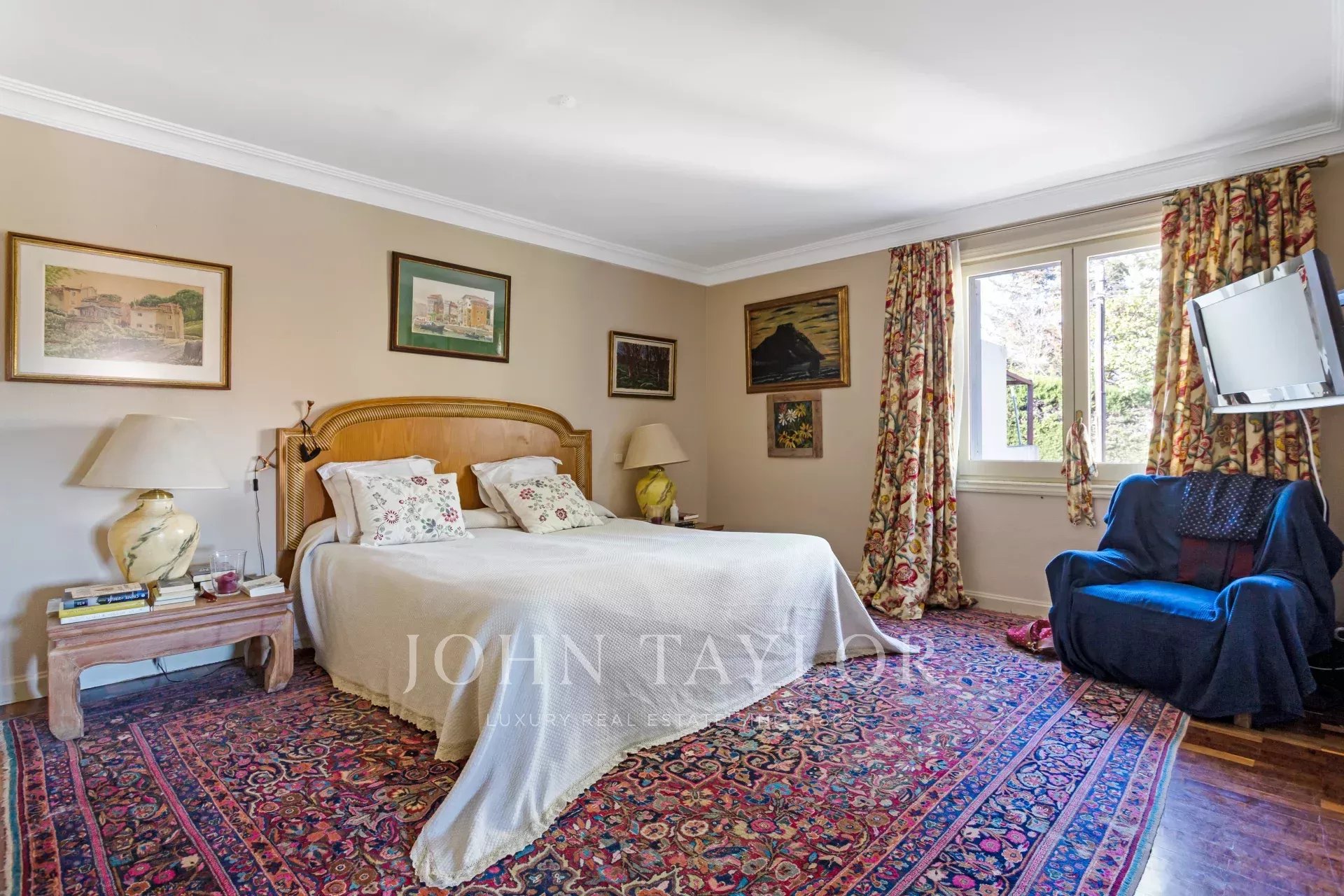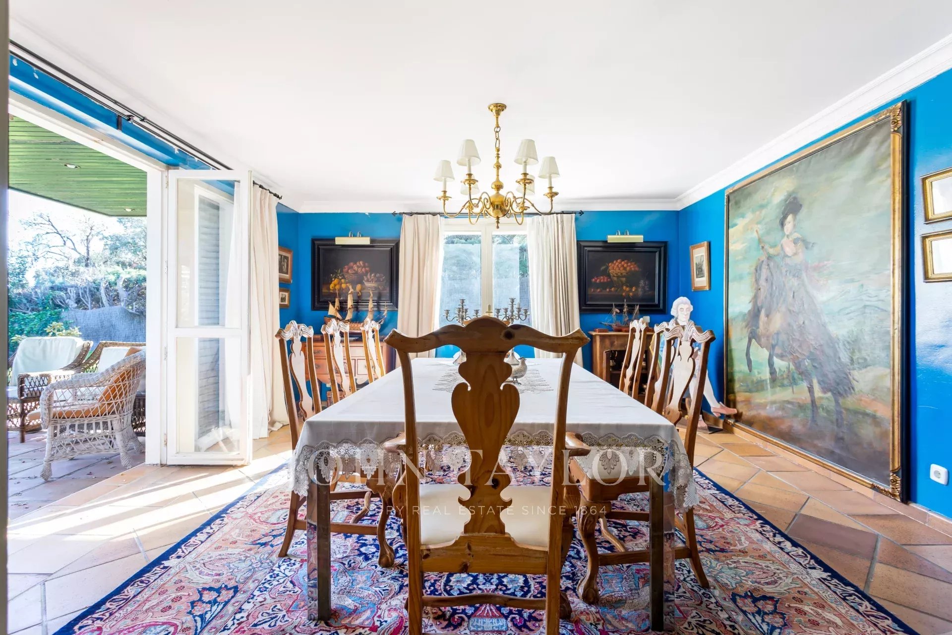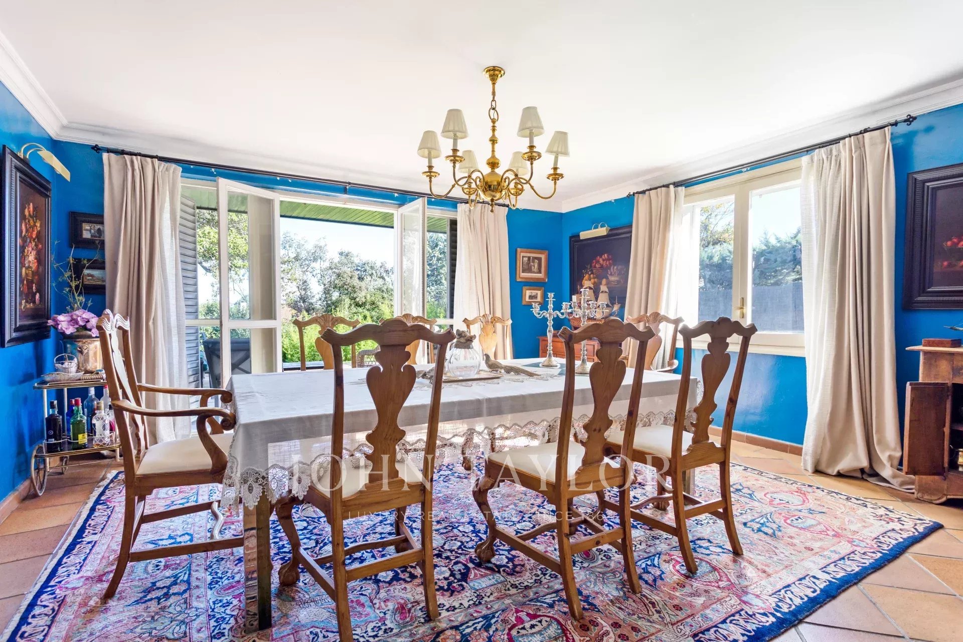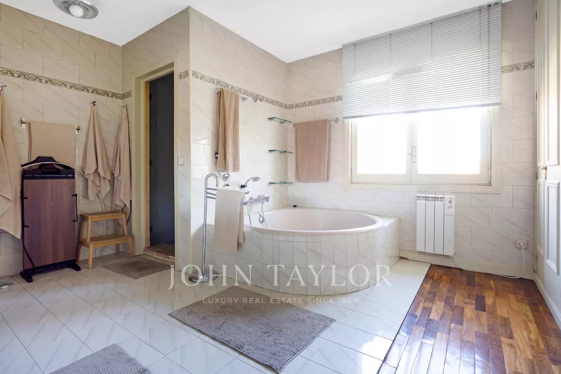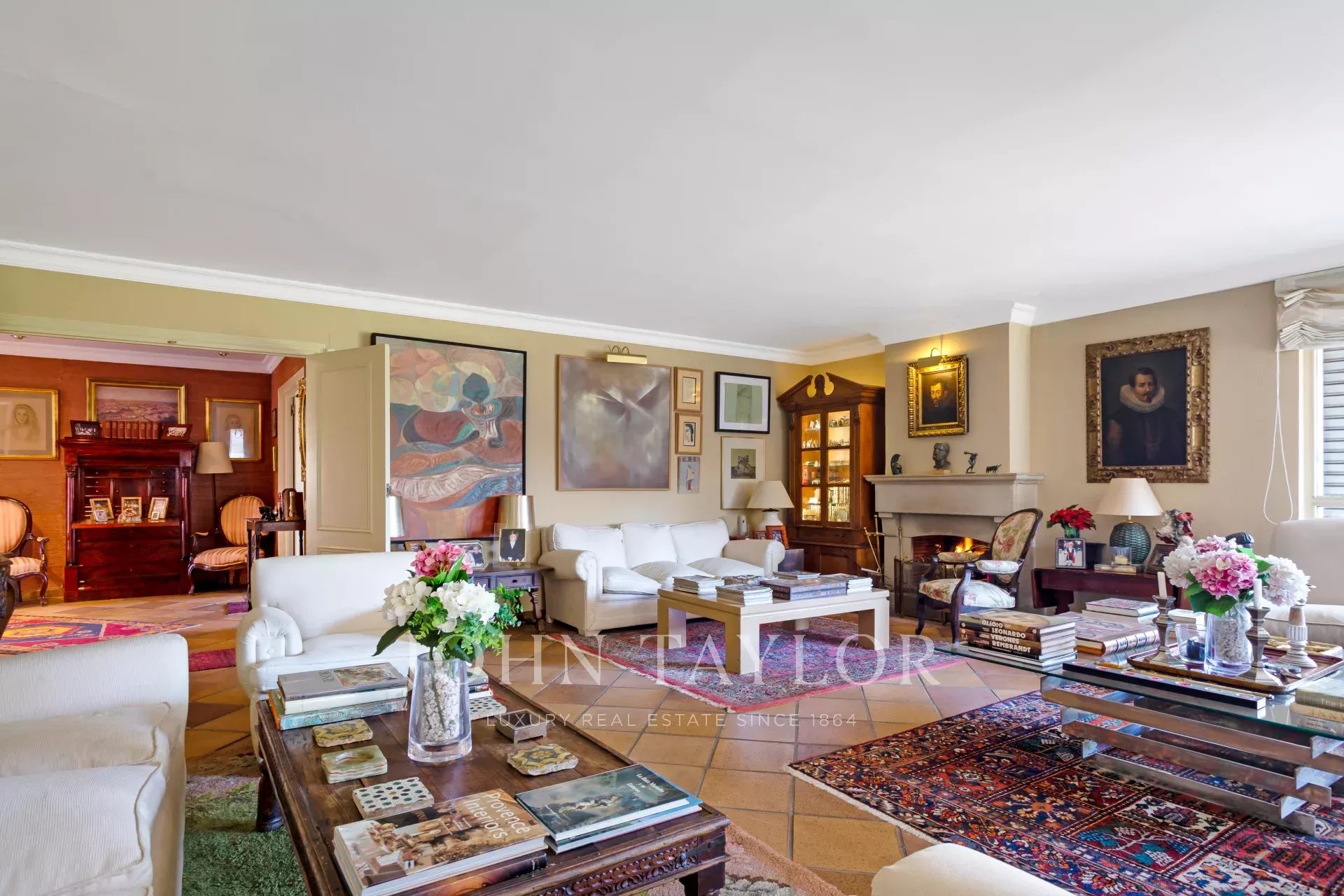 V hlavním patře je velká vstupní hala, obývací pokoj ve třech místnostech, nádherná jídelna, která se otevírá na velkou verandu a zahradu, dále kancelář-knihovna a koupelna.