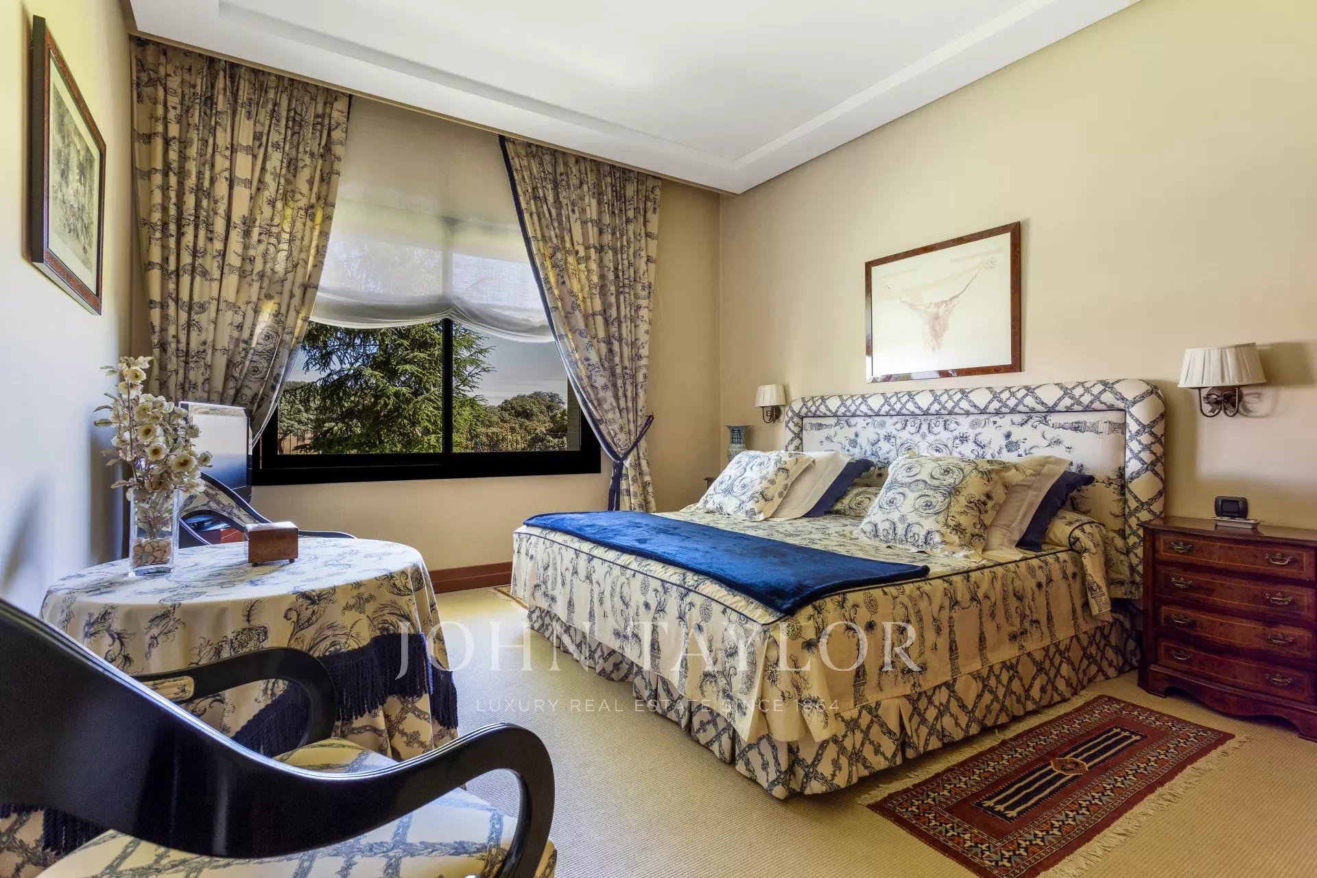 V patře studovna s knihovnou, pracovnou a čítárnou s výborným osvětlením. Hlavní ložnice v námořním designovém stylu a další personalizovaná pracovna, obrovská okna, výhled na El Pardo. Vstup do hlavní ložnice, dvě velké nezávislé šatny, chodba se skříněmi a dvě koupelny: jedna s toaletou a druhá kompletní koupelna s hydromasážní sprchou.