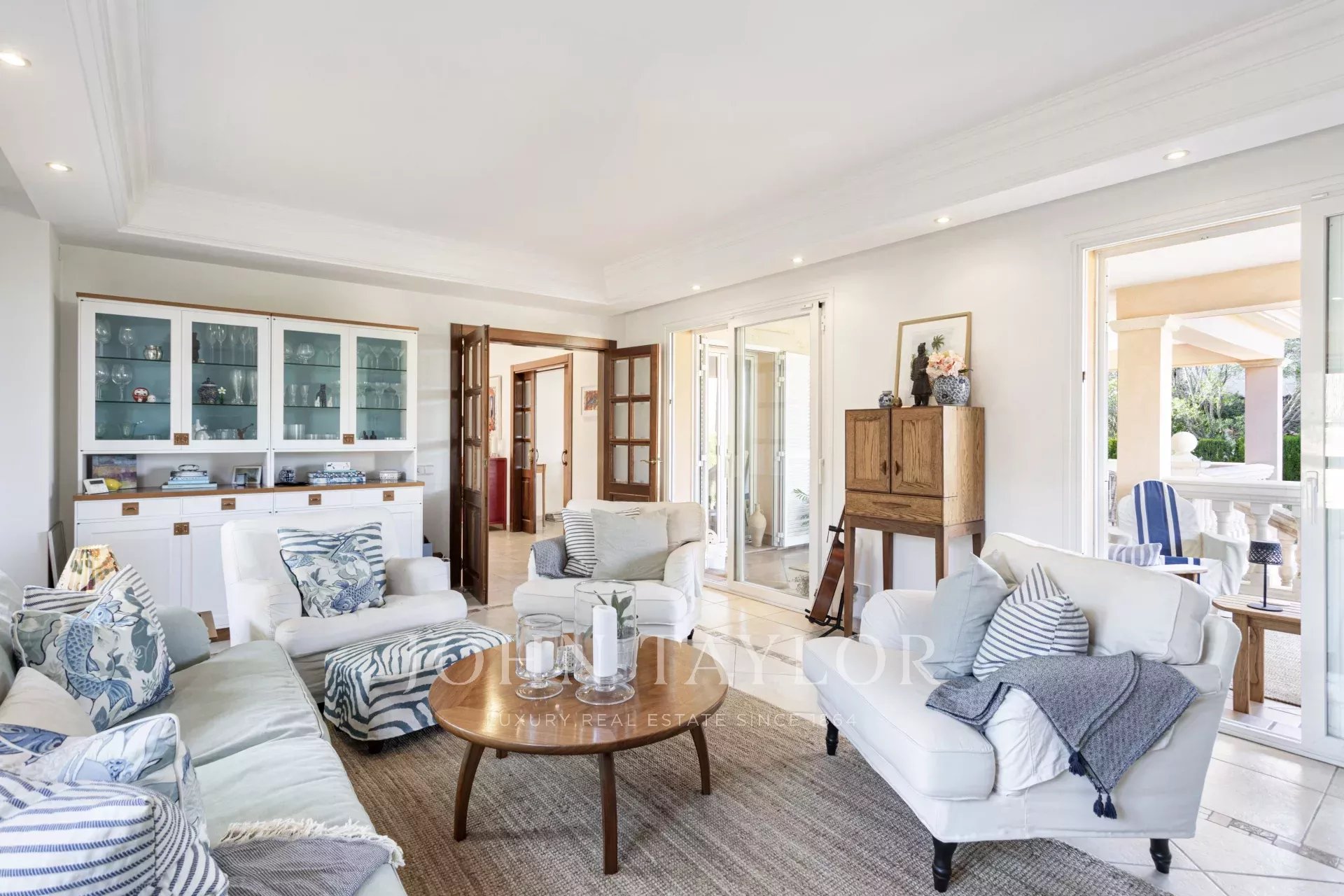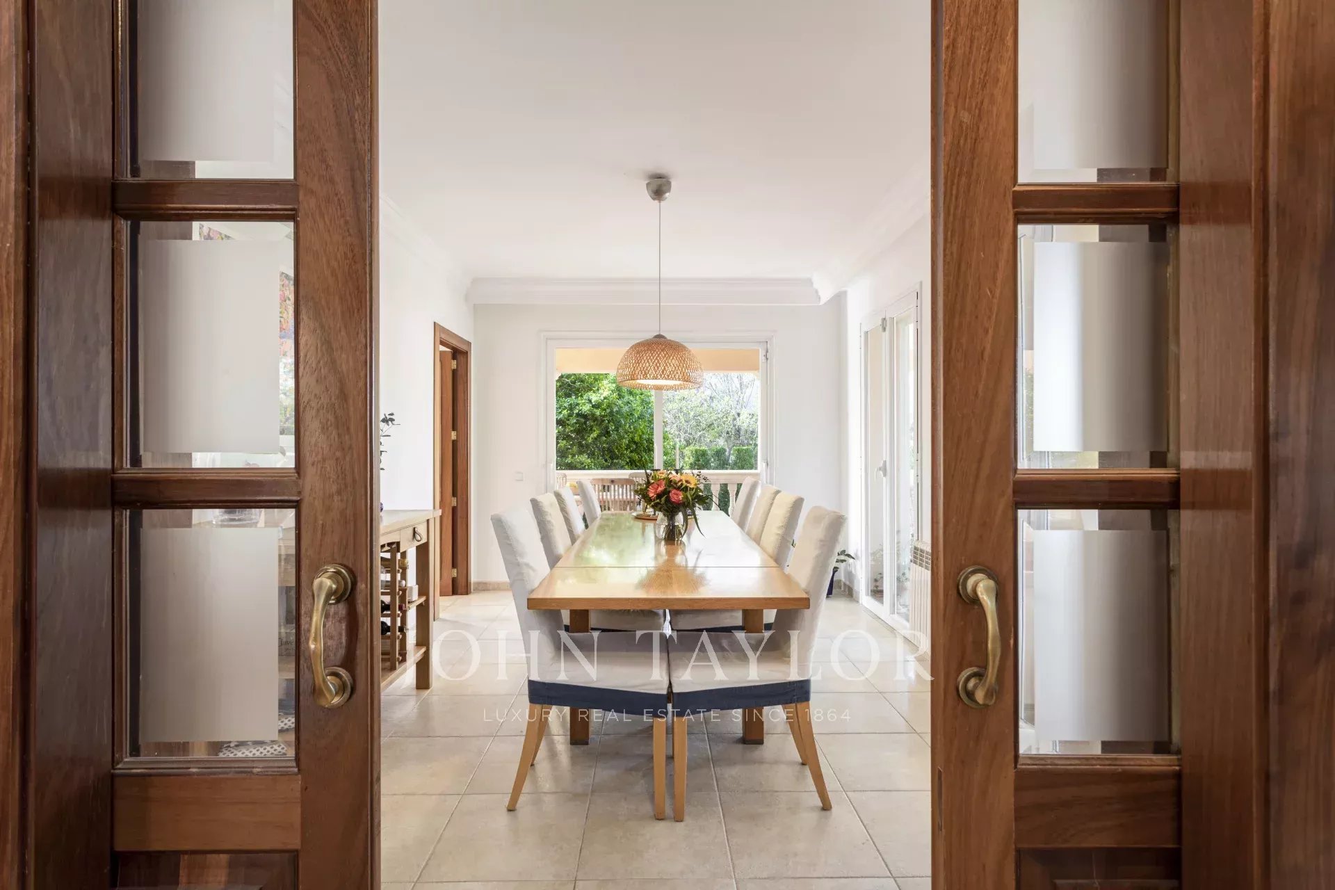 Vstupte do příjemné recepce, která se otevírá do světlého a prostorného obývacího pokoje s jídelnou a útulným krbem - ideální pro rodinná setkání. Plně vybavená kuchyň nabízí oddělený jídelní a pracovní prostor, ideální pro moderní bydlení. Užijte si bezproblémové bydlení uvnitř i venku díky velkým otevřeným a zastřešeným terasám, které vedou přímo do soukromé zahrady.