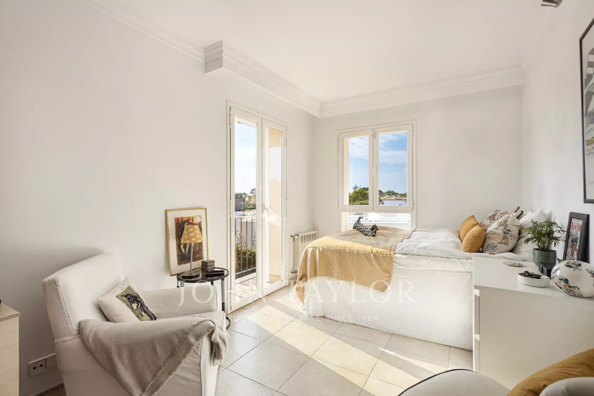V patře najdete čtyři prostorné ložnice a dvě moderní koupelny, včetně hlavního apartmá s vlastní koupelnou a přístupem na soukromou terasu s výhledem do okolí.