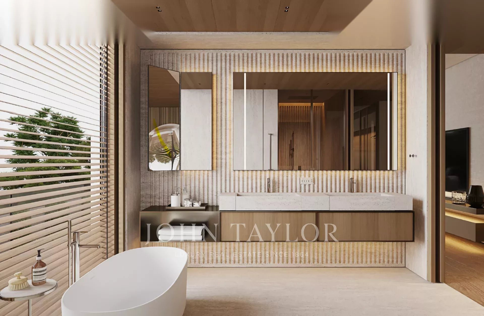 Architektonické řešení pozvedá úroveň této vily ještě výše. Dům, pod nímž je podepsán jeden z nejvybranějších architektů na mezinárodní scéně, Yodezeen, je koncipován jako sochařské dílo, kde byla pečlivě promyšlena každá linie, každý objem a každý materiál. Odkrytý beton, přírodní kámen, kov a velké skleněné plochy spolu vedou dialog v dokonalé harmonii a vytvářejí otevřené, organické prostory zalité přirozeným světlem.