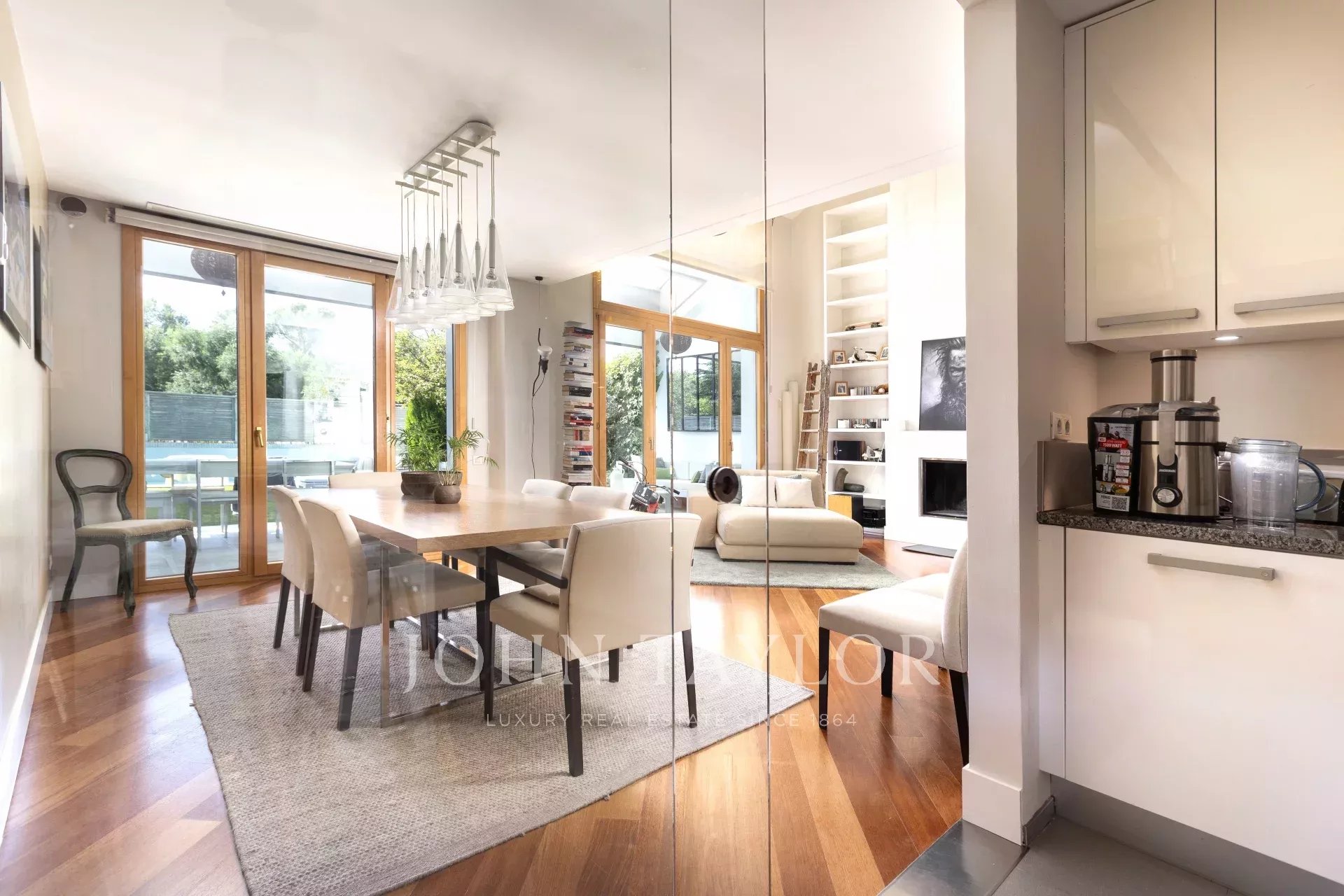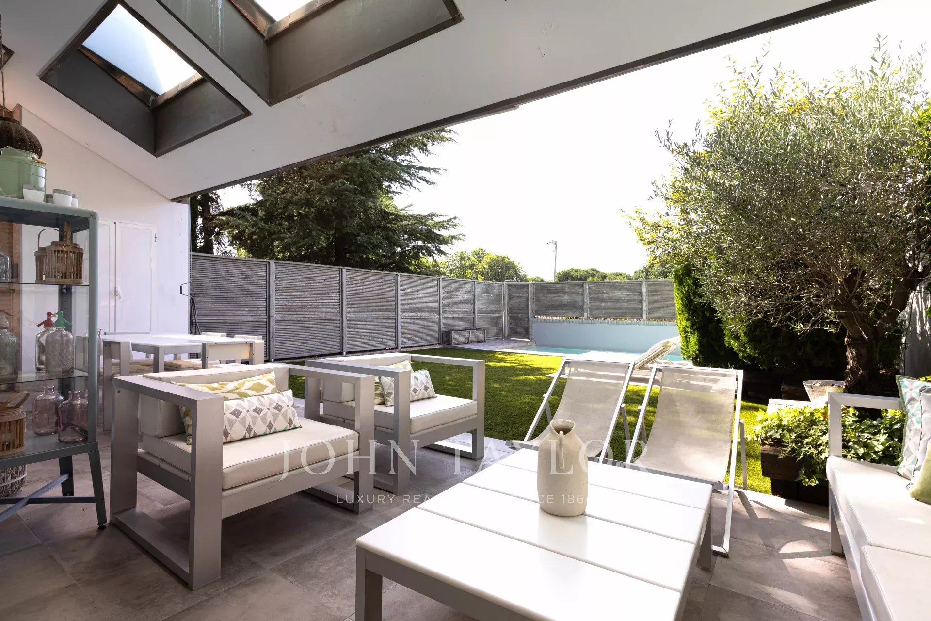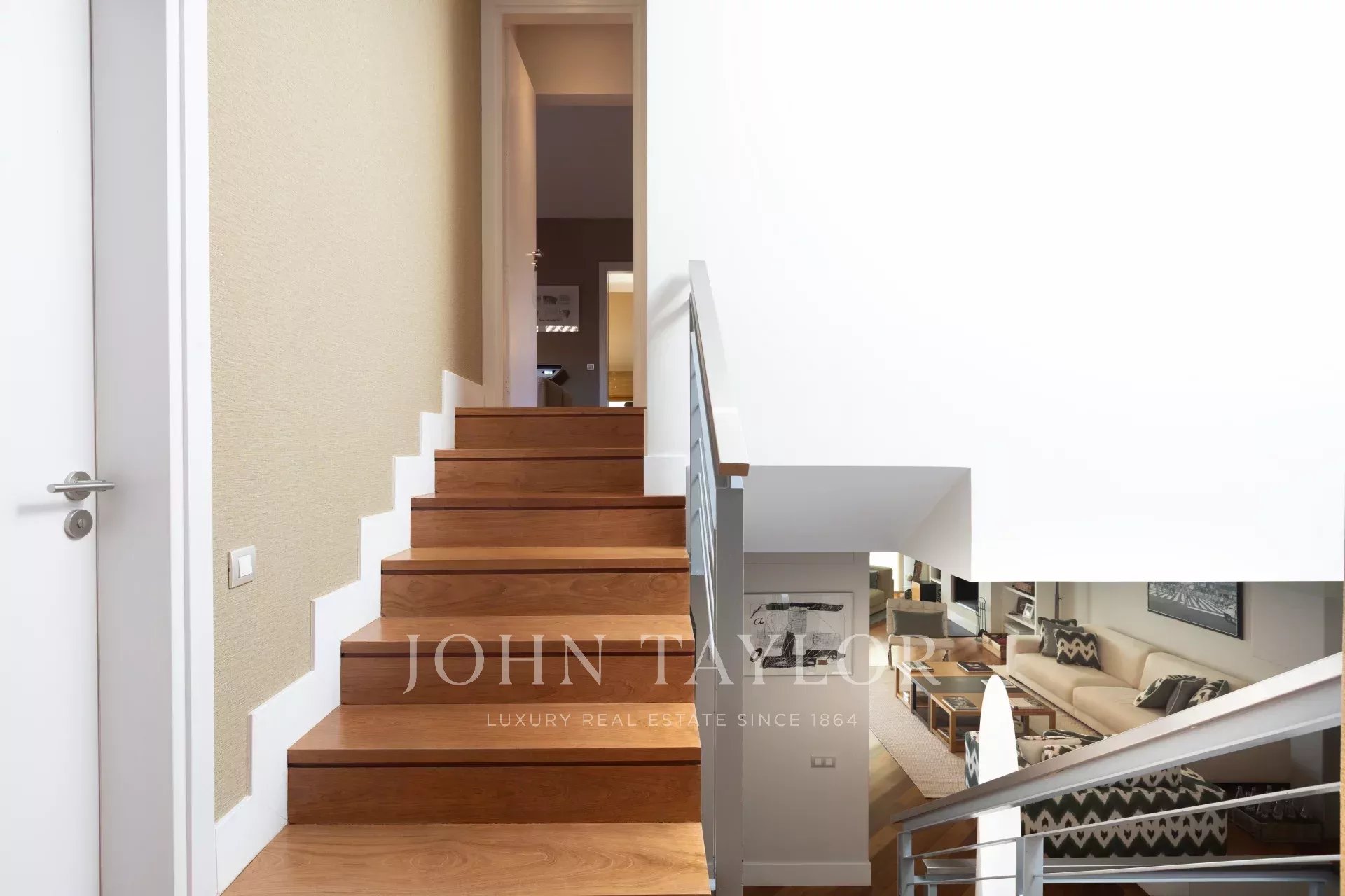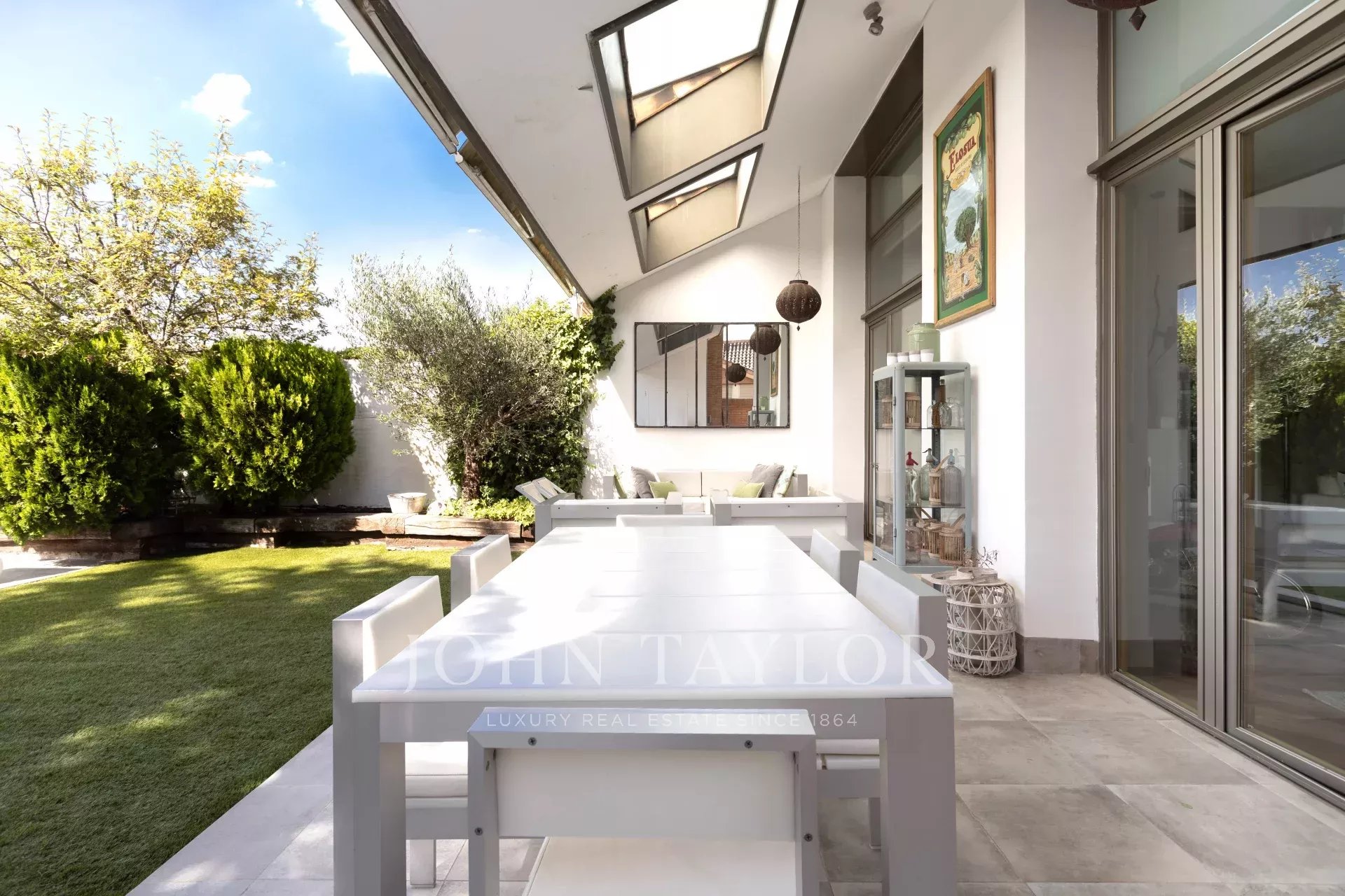 Při vstupu do domu najdeme prostornou halu se vstupem do velkého obývacího pokoje a pracovny. V patře pokračujeme do druhého světlého obývacího pokoje s jídelnou a výhledem na bazén a soukromou zahradu; a do velké kuchyně. V dalším patře jsou tři světlé ložnice a dvě koupelny. A dále nahoru přicházíme do hlavní ložnice, která má vlastní koupelnu, přilehlou šatnu a balkon.