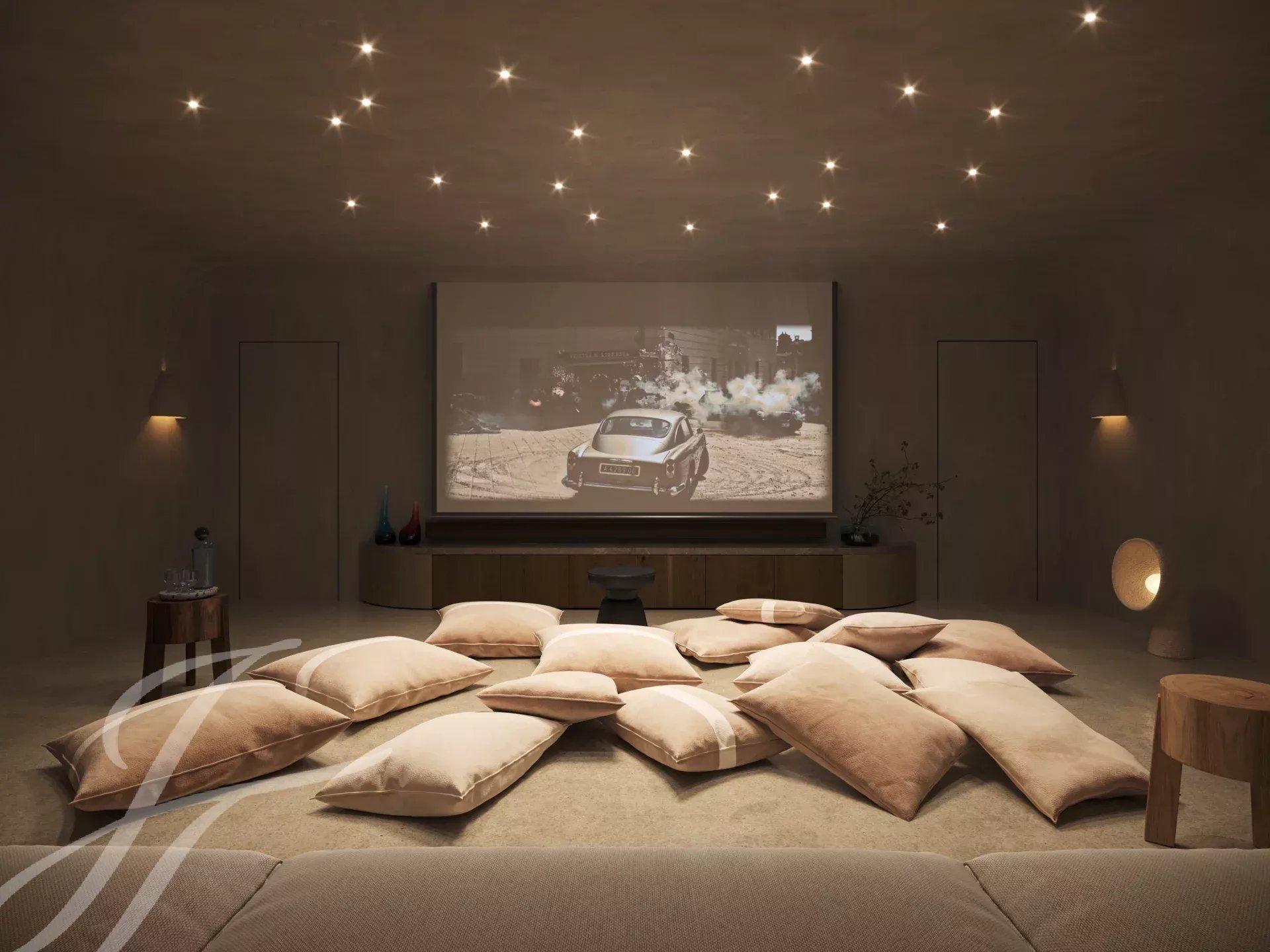 V přízemí se nachází plně vybavená kuchyň s centrálním ostrůvkem a snídaňovým koutem, úžasný obývací pokoj s působivým krbem a formální jídelní kout. Dále zahrnuje 3 dvoulůžkové ložnice s vlastní koupelnou a toaletu pro hosty. Všechny pokoje v přízemí nabízejí přímý vstup do exteriéru nemovitosti. První patro je celé vyhrazeno apartmá majitele, které zahrnuje šatnu, vlastní koupelnu a soukromou terasu s výhledem do krajiny a na vinice.
