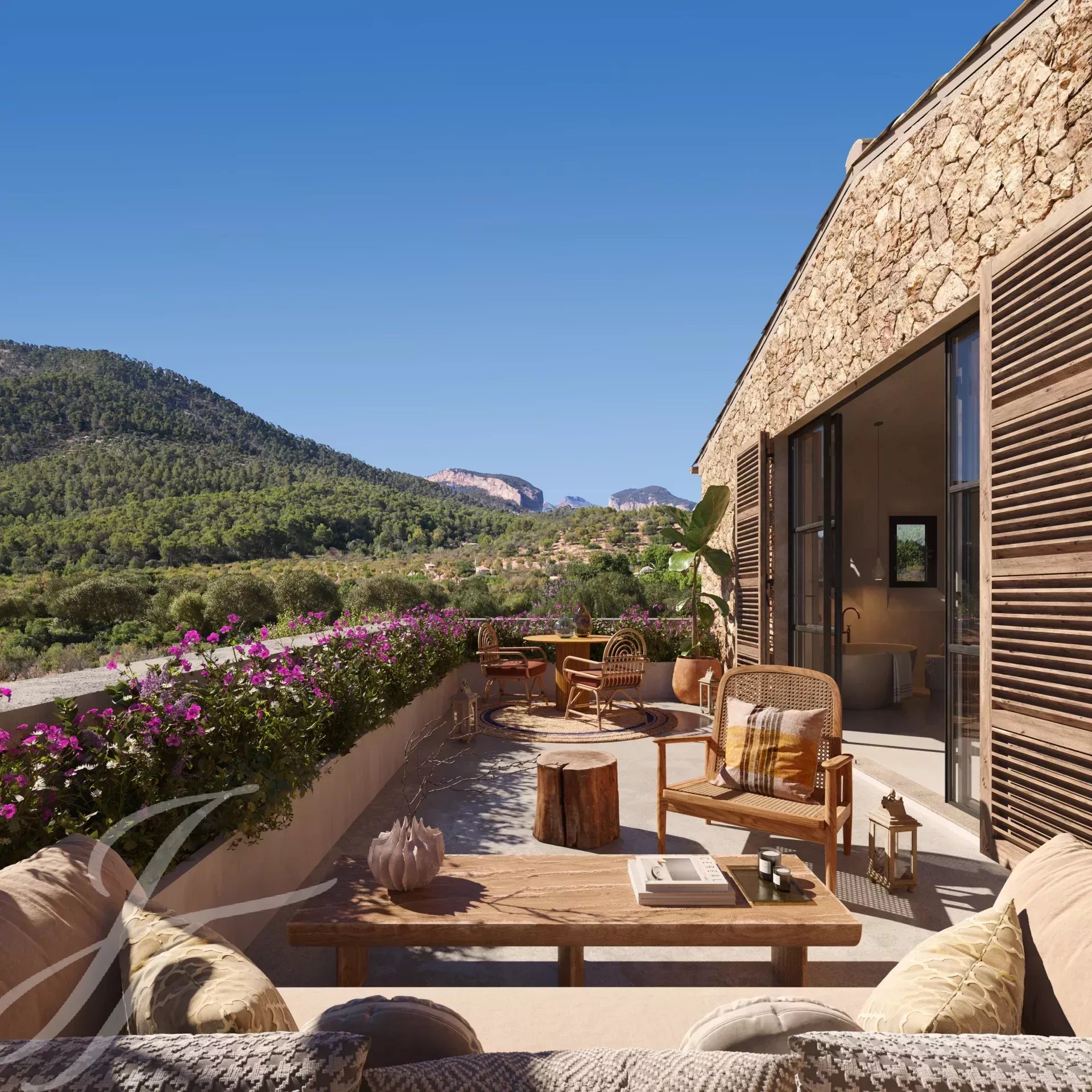 Casa Valle de los Almendros - Tento krásný boho-chic venkovský dům je v současné době ve výstavbě a jeho dokončení se očekává ve 4. čtvrtletí roku 2027. Nachází se v jedné z nejžádanějších venkovských lokalit v blízkosti města a letiště, zajišťuje snadný a pohodlný přístup k nemovitosti. Vstupní terasa nemovitosti, kamenná fasáda, dřevěné okenice, vysoké stropy s dřevěnými trámy a také klenuté stropy spolu s kamennou podlahou, okny od podlahy ke stropu a středomořskou krajinou vytvářejí fantastickou energii a přirozený tok v celém domě.