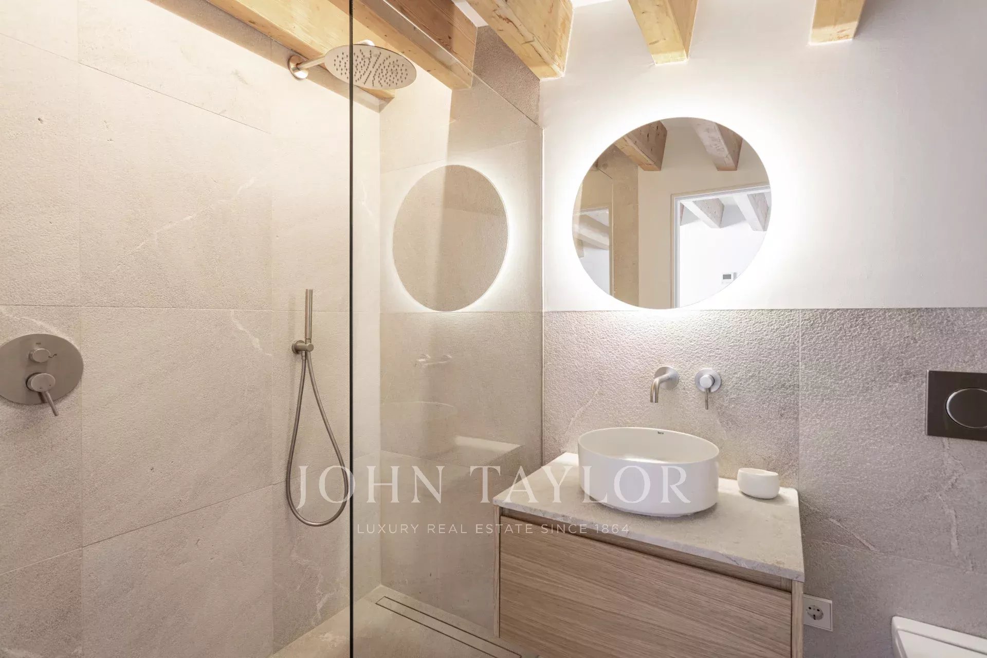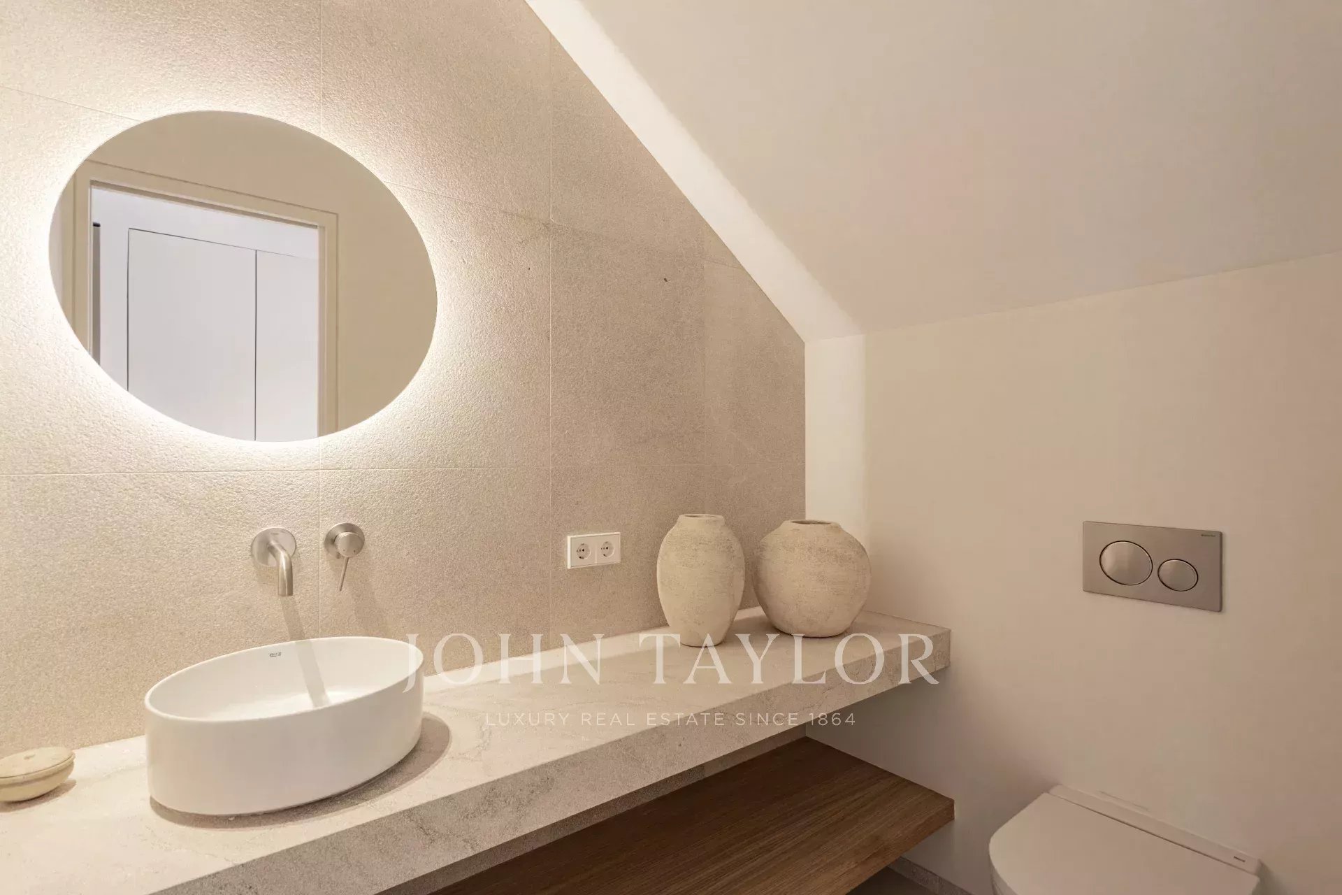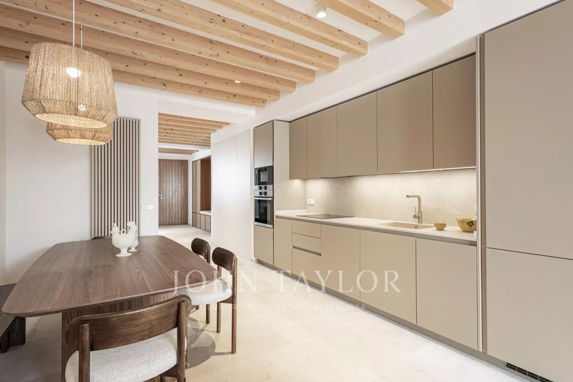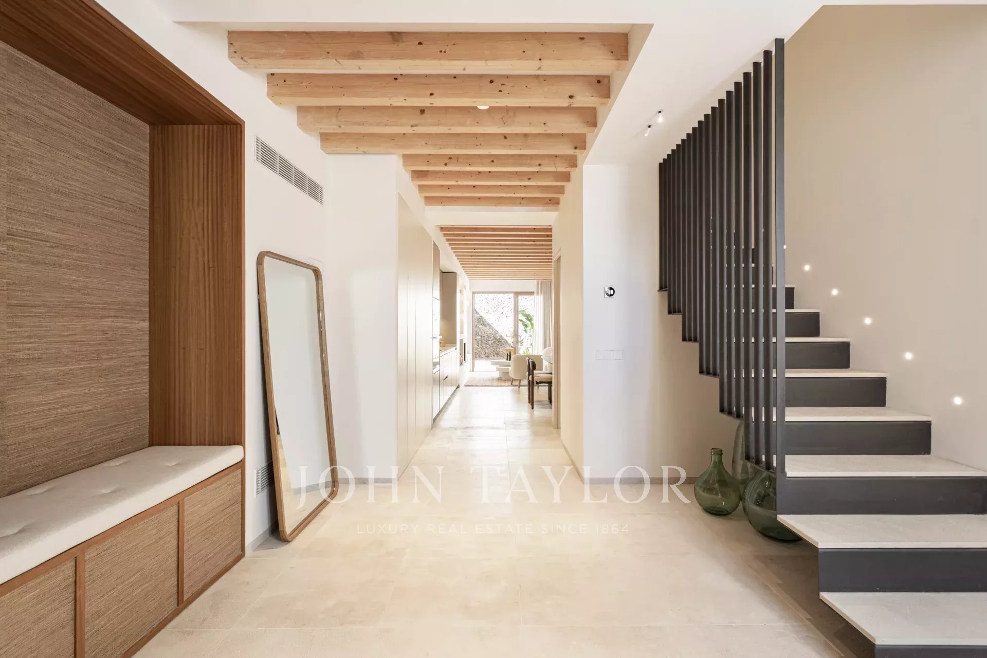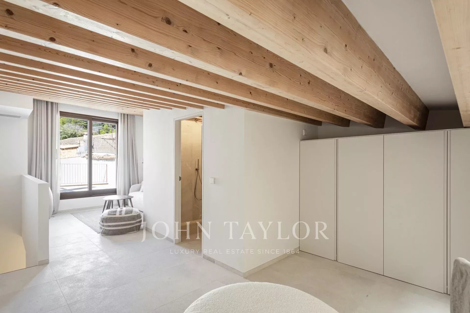 Tento úžasný městský dům se třemi ložnicemi, třemi koupelnami a toaletou pro hosty prošel kompletní rekonstrukcí, která jej proměnila v moderní a luxusní prostor s nádechem rustikálního kouzla. Díky své vynikající poloze v centru města, pouhé dvě minuty chůze od ikonického kostela, nabízí tato nemovitost to nejlepší z obou světů: městské pohodlí a klidnou atmosféru venkovského prostředí. Po vstupu do domu vás přivítá pocit tepla a elegance. Kamenné zdi a dřevěné trámy dodávají prostorám charakter a autenticitu, zatímco špičkové materiály použité v celém objektu zaručují bezkonkurenční úroveň kvality a pohodlí. V prvním patře se nachází jediný prostor obývací pokoj s krbem, dále jídelna a designová kuchyně plně vybavená nejmodernějšími spotřebiči a povrchovými úpravami nejvyšší kvality. Odtud je přístup na jednu ze dvou teras, kde si můžete vychutnat venkovní stolování nebo relaxovat pod hřejivým středomořským sluncem. Nemovitost má radiátory ve všech místnostech a navíc rozvody klimatizace.