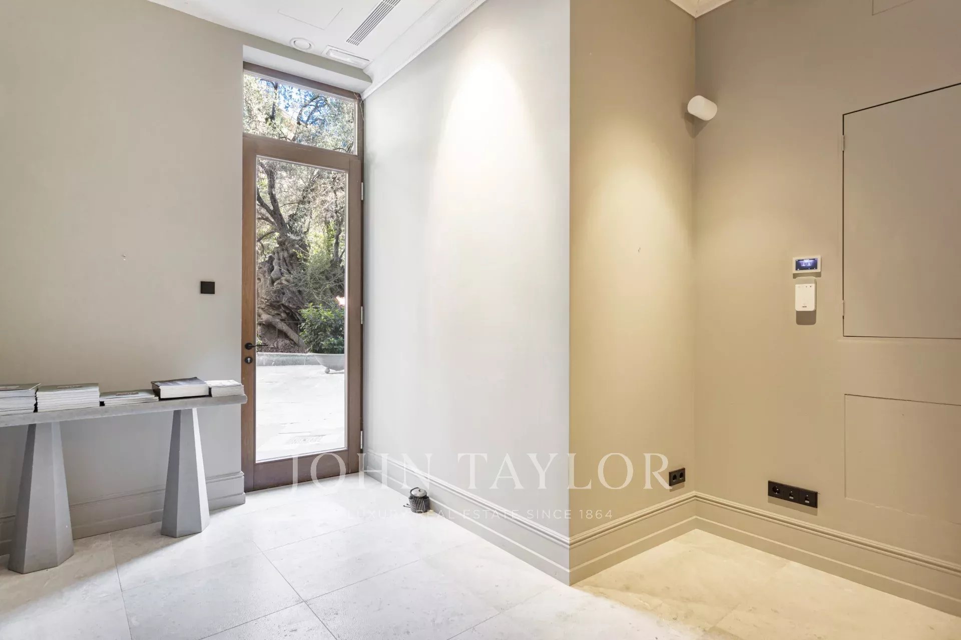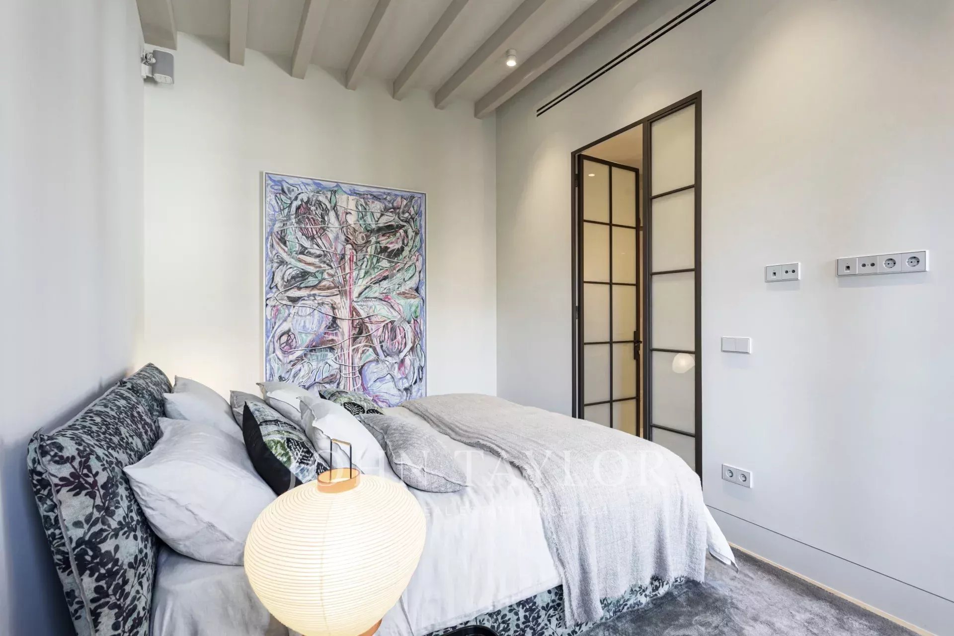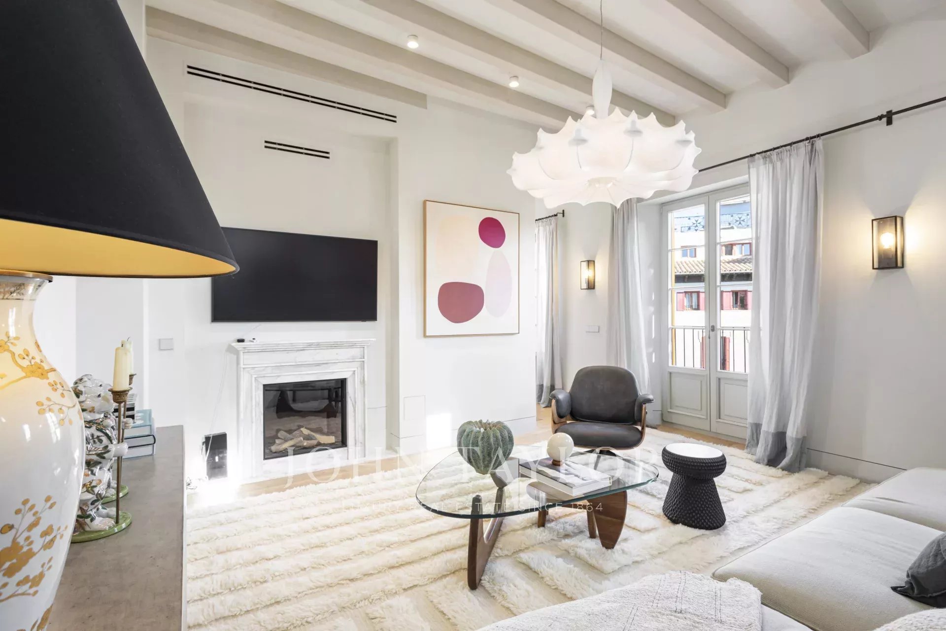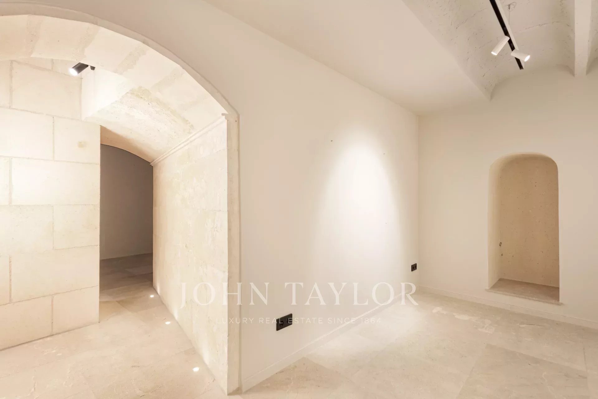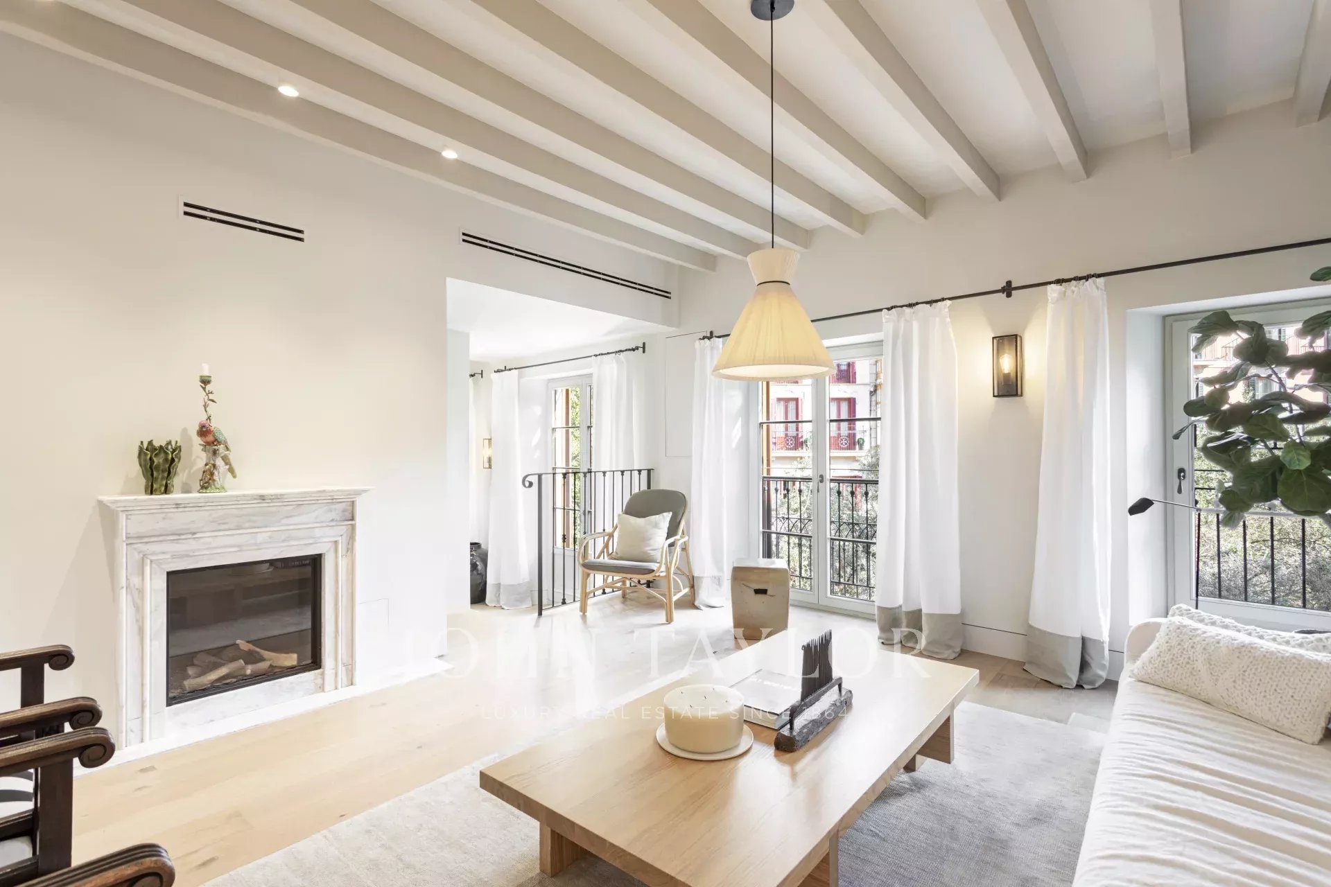 Na tomto důmyslně navrženém půdorysu je prostor pro kuchyň s jídelnou a dvojitými dveřmi otevírajícími se na náměstí Placa Cort. Ložnice má šatnu a vlastní koupelnu za kapsovými dveřmi. V kuchyni jsou skříňky na míru vyrobeny z masivního dřeva a veškerý kuchyňský mramor je Calacatta Gold, který jsme ručně vybrali na místě v Itálii. Jedná se o nádherný byt a překvapivě klidnou oázu uprostřed rušného Starého Města.