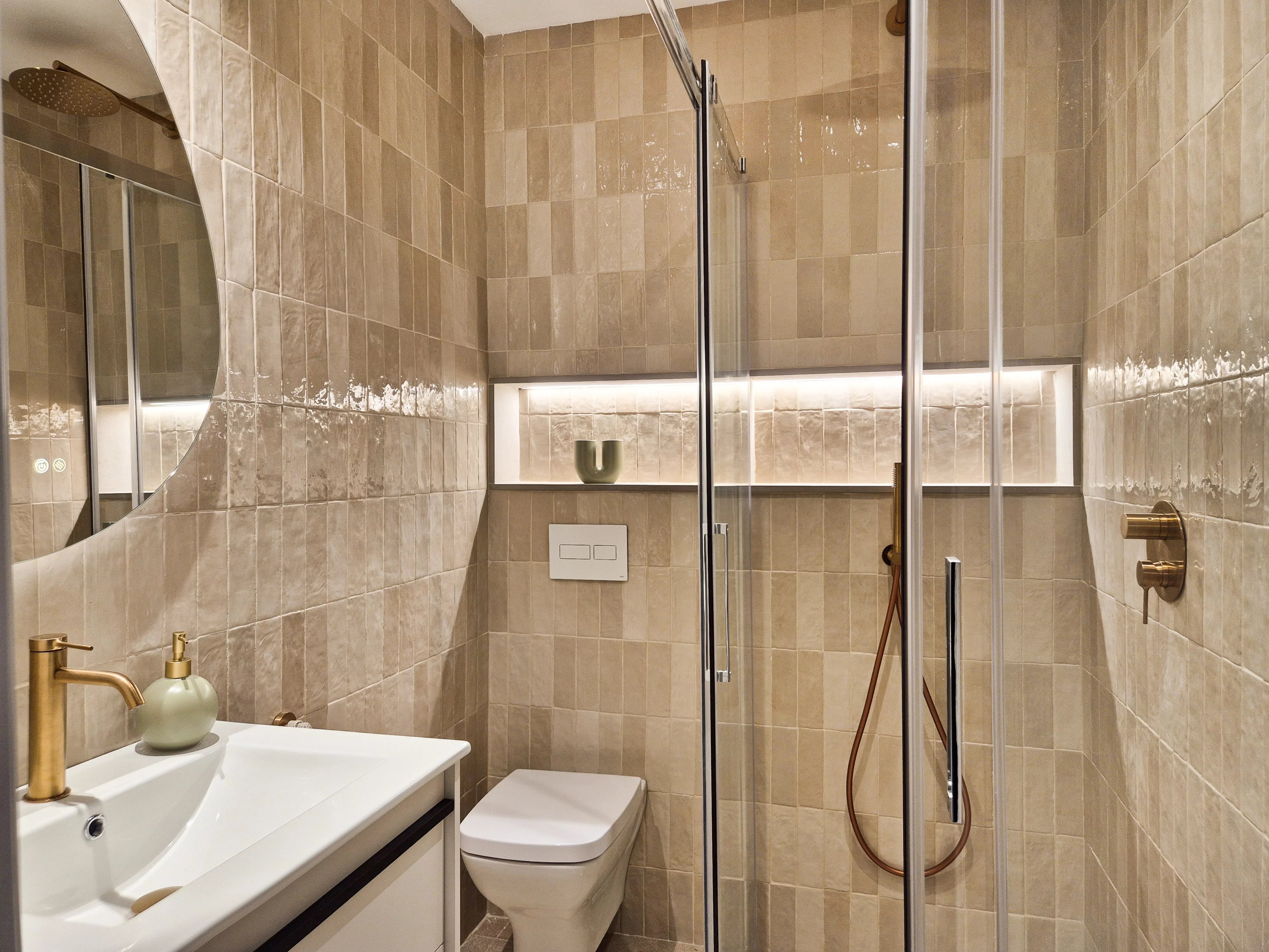 Dům stojí na pozemku o rozloze 300 m² a je vybaven moderní aerotermální klimatizací, podlahovým vytápěním a individuální klimatizací v každé ložnici. Elegantní materiály, velkoformátové podlahy a na míru vyrobené měděné armatury povyšují interiéry, zatímco mechanizovaná garáž dodává v této exkluzivní oblasti vzácné pohodlí.