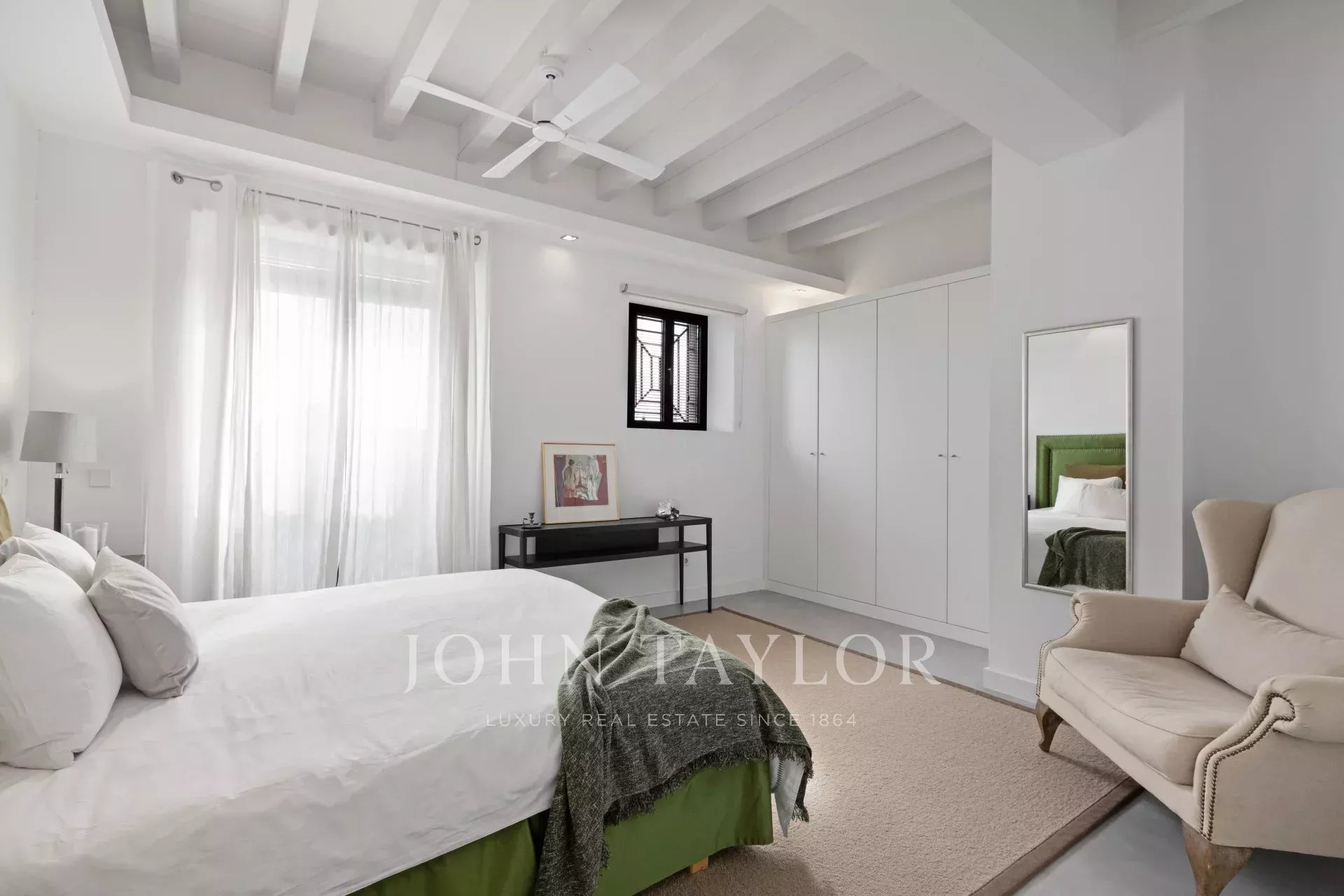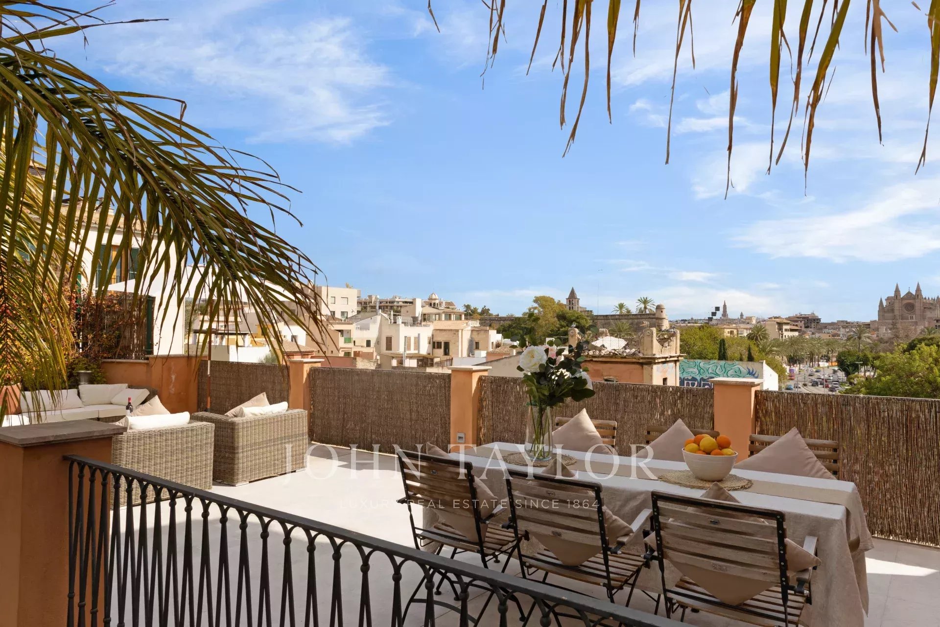 Jeden z nejunikátnějších domů v Palmě, který se nachází v elegantní čtvrti El Jonquet a pochází z roku 1887, vyžadoval zvláštní povolení ke stavbě, a proto se mu říká "Dům královen". Je postaven ve třech podlažích, přízemí nabízí 3 ložnice, 2 koupelny, prádelnu, sklad, garážový prostor a vnitřní terasu s přístupem na nadstandardní terasu. První patro nabízí nejlepší výhled na moře, katedrálu a staré město a je věnováno čistému potěšení s plně vybavenou kuchyní, jídelnou a obývacím pokojem, který přímo přechází na velkou venkovní terasu s báječným bazénem a s dostatkem prostoru pro venkovní stolování, užívání si slunce nebo prostě jen relaxaci. Nadřazené patro zahrnuje hlavní apartmá se dvěma ložnicemi, které si rovněž užívají neuvěřitelný výhled, a vlastní koupelnou. Nemovitost má klimatizaci v celém domě, podlahové vytápění na vyšších podlažích a prodává se kompletně zařízená, připravená pro své nové obyvatele, aby si mohli nadále užívat jedinečný domov s tím nejlepším, co Palma nabízí, na dosah ruky.