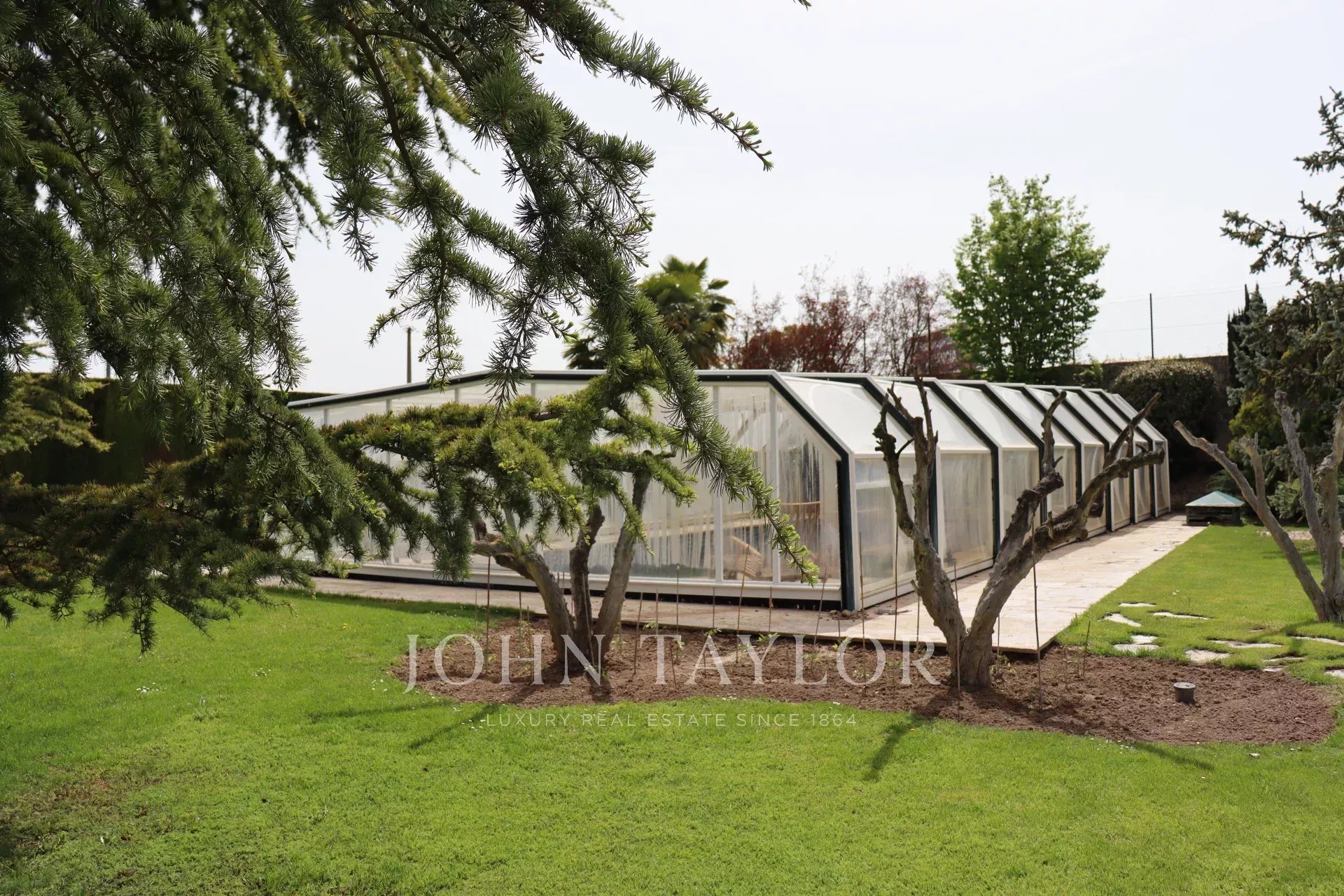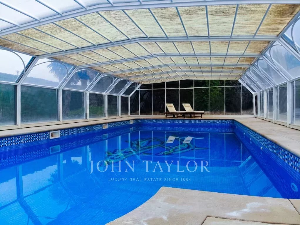 Krytá garáž pro dvě vozidla (možnost rozšíření), krytý venkovní bazén a tenisový kurt.