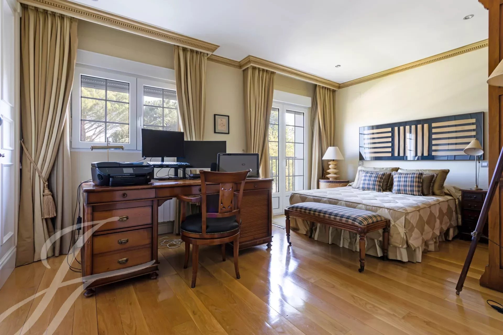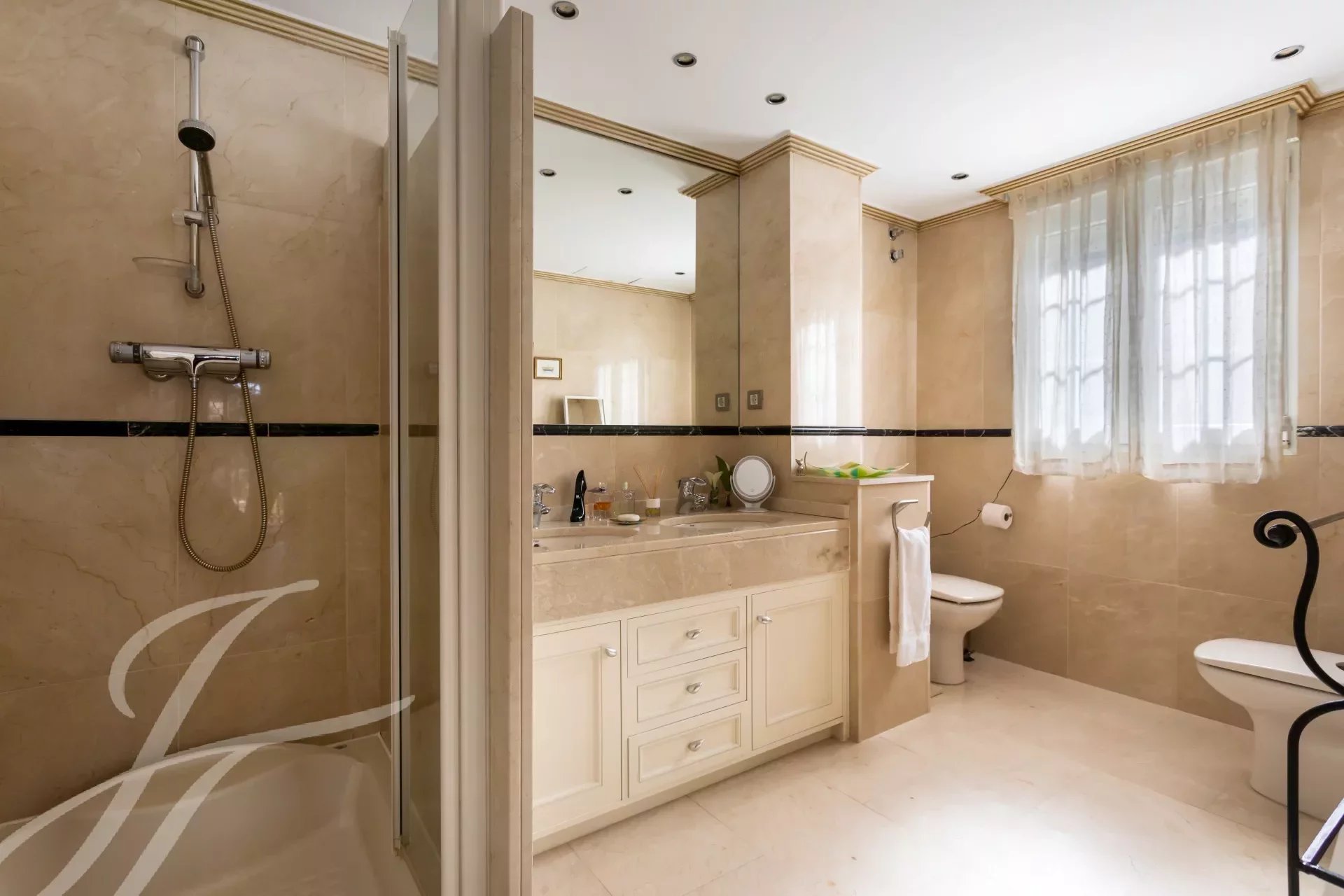 Impozantní vila v klasickém stylu na pozemku o rozloze 2 200 m2 a ploše 737 m2, má upravené zahrady navržené renomovaným zahradním architektem a krásný bazén. Velkolepá stavba ve výborném stavu, postavená z vynikajících materiálů. Rozdělení do dvou hlavních podlaží a polopřízemí. Vstup přes velkolepou halu a přístup do kteréhokoli patra po majestátním schodišti nebo výtahem. Pozemek má díky své poloze absolutní soukromí a bezpečnost.