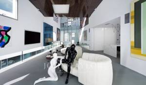 Muzeum. Prostor s velkou výškou, zalitý přirozeným světlem. Umění zachycuje prostředí.
