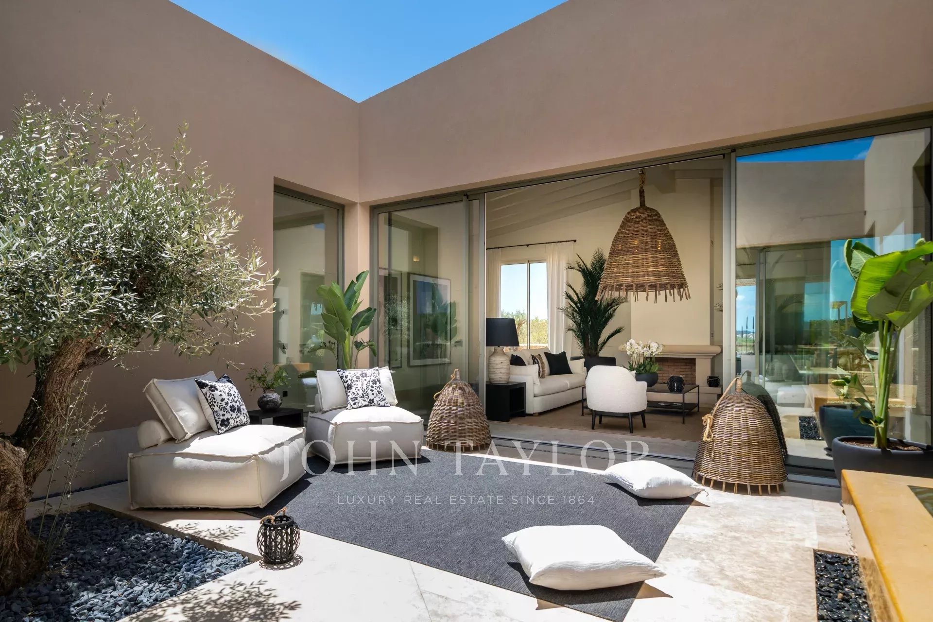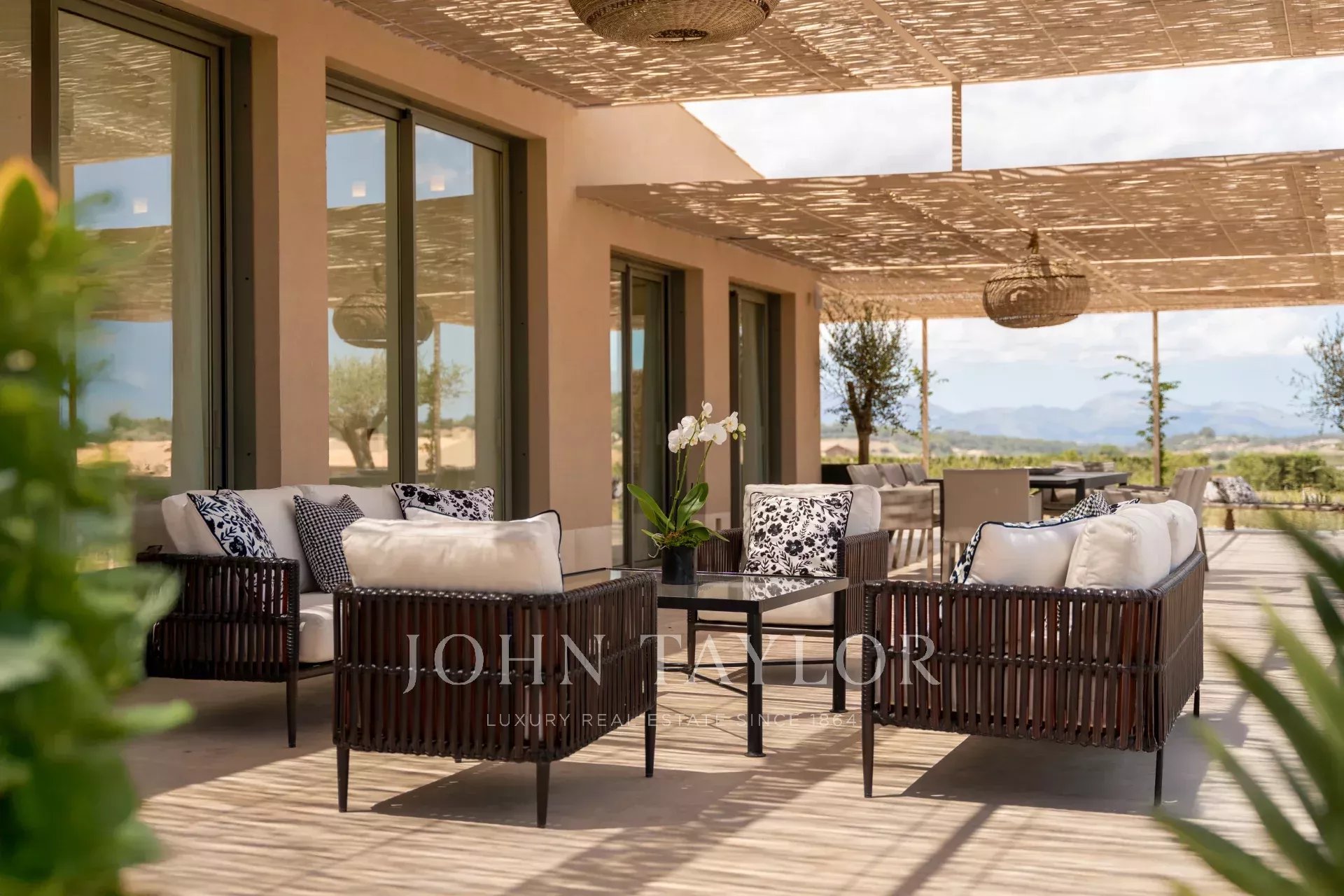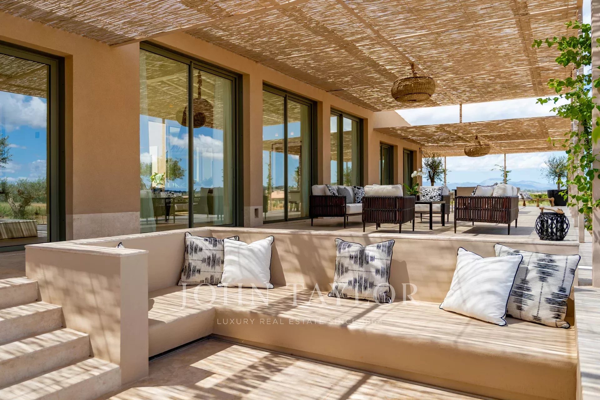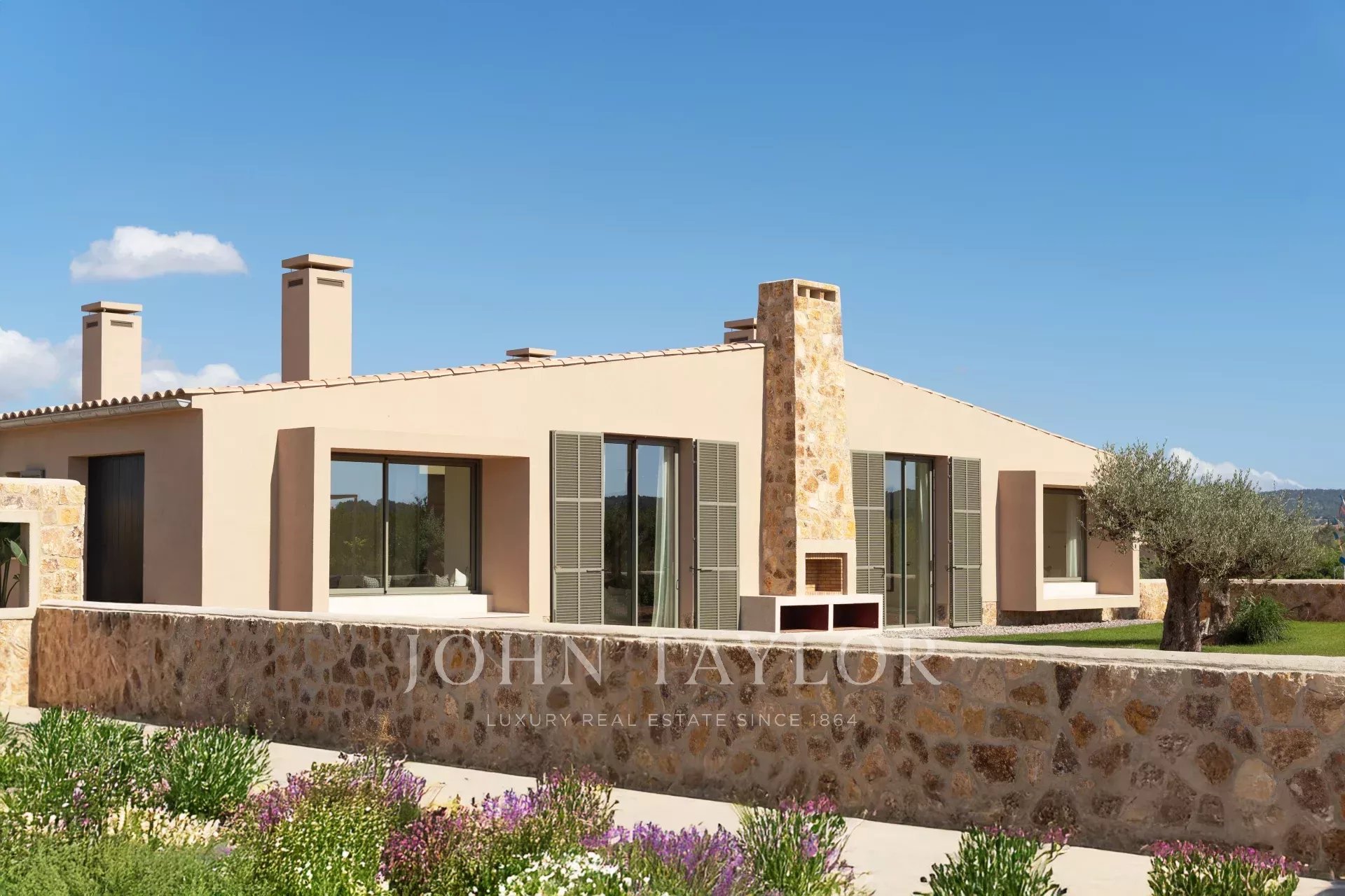 Při příjezdu k nemovitosti vplujete dlouhou, soukromou 300metrovou příjezdovou cestou lemovanou olivovníky k hlavnímu vchodu. Obklopuje vás zemědělská půda, vinice, pšeničná pole a olivové a mandlové háje. Krása této lokality, jízda po idylických venkovských cestách a rychlých dálnicích, zaručuje, že nejste více než dvacet pět minut od Palmy, letiště, nejlepších pláží, nákupů a nejlepších mezinárodních škol.