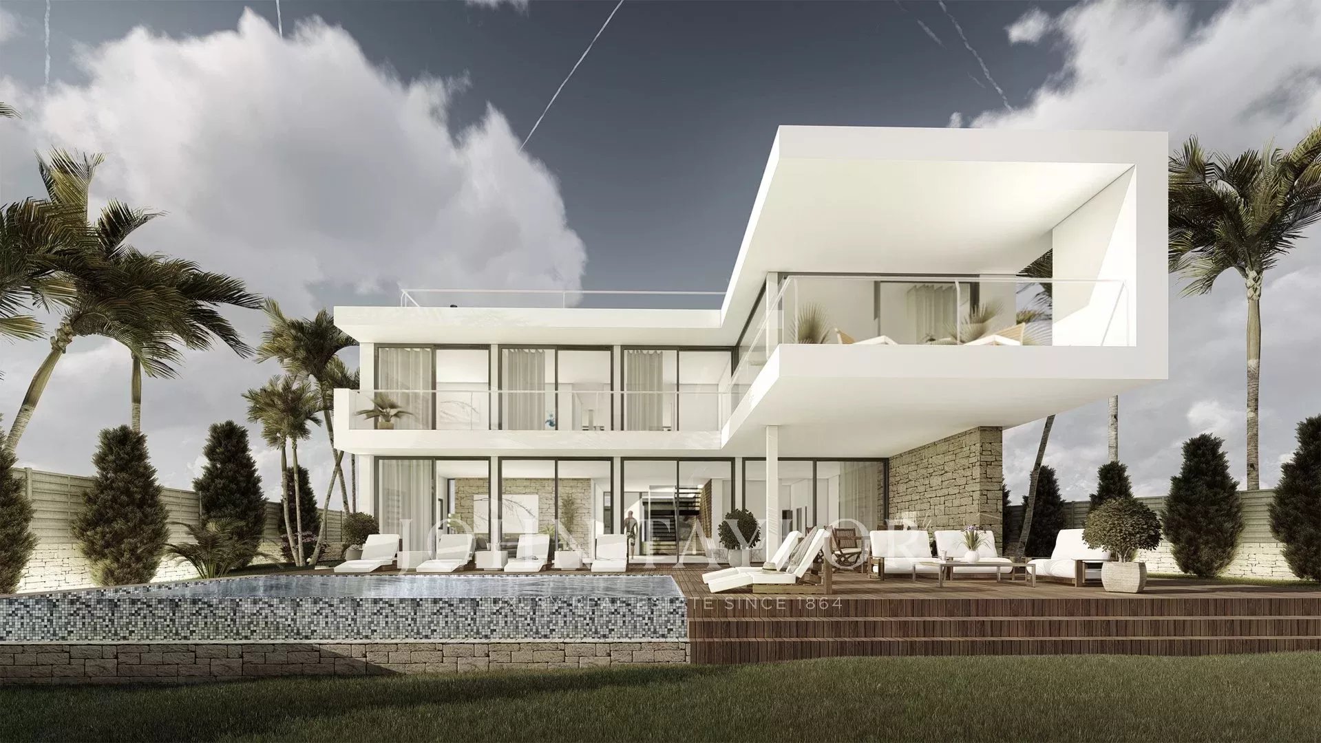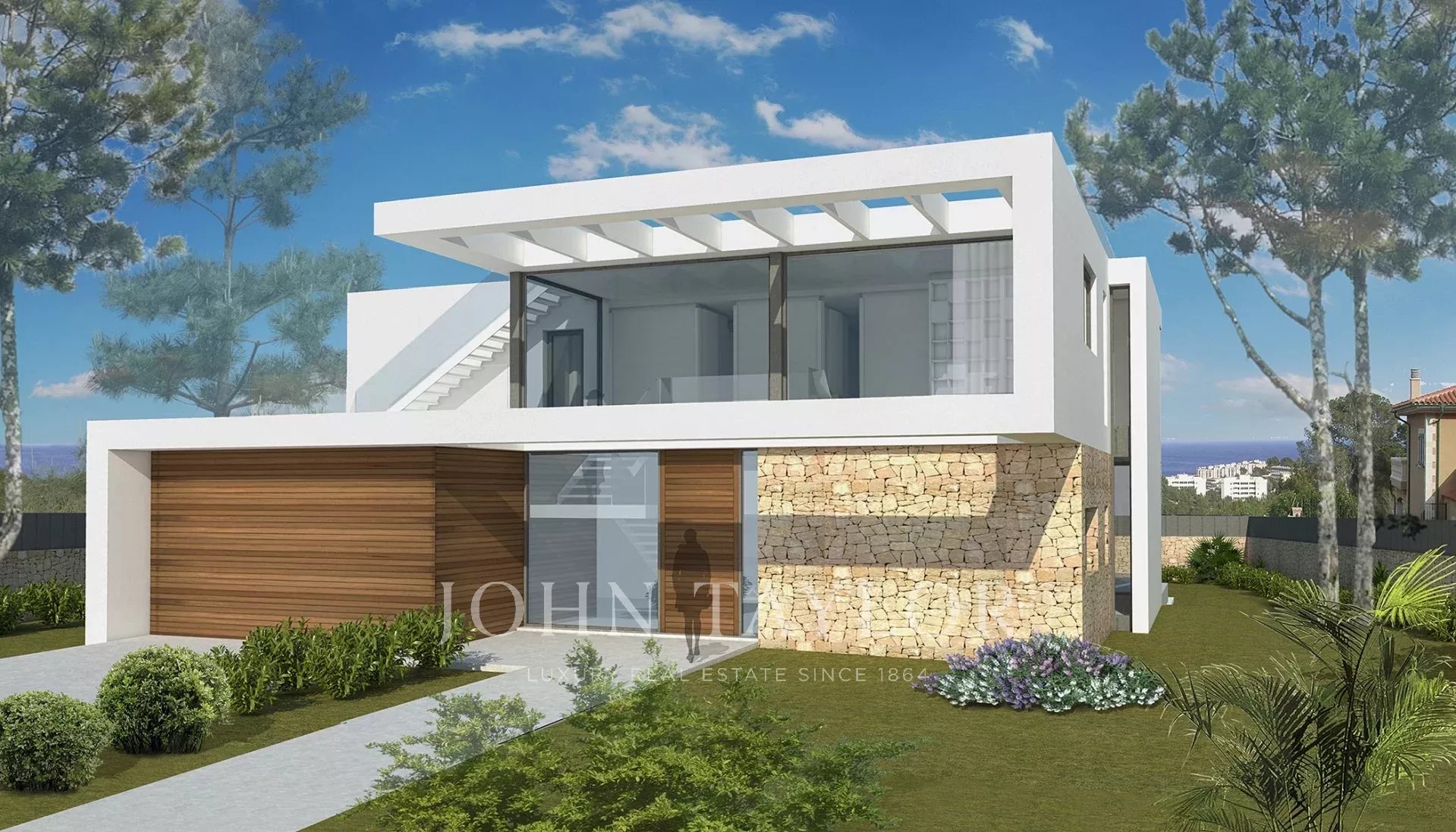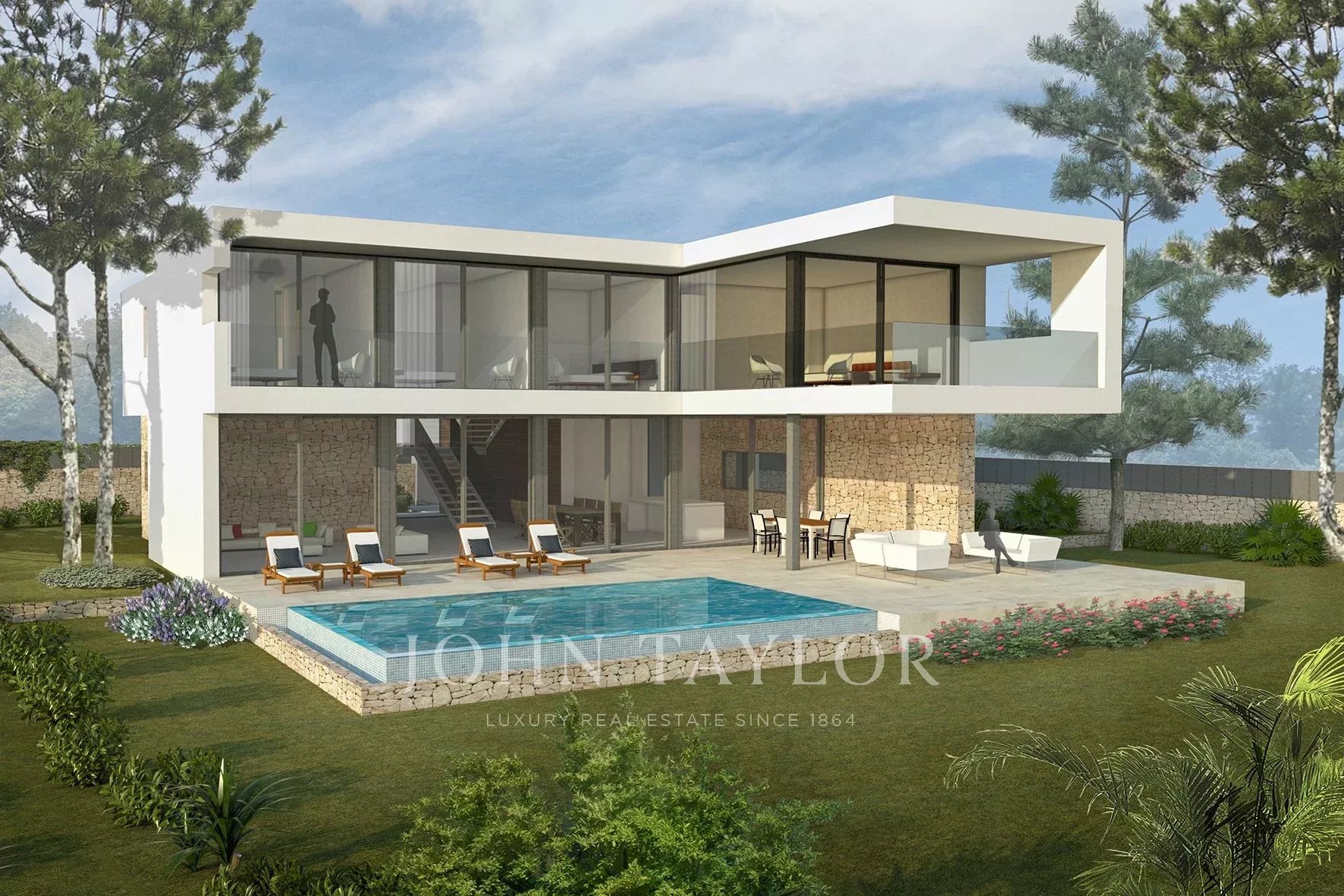 Tato nová vila se nabízí na pěkném rovinatém pozemku v dobré lokalitě s částečným výhledem na moře v Cala Viñyas. Pozemek má 1 100 m2 a moderní vila se středomořskými akcenty bude mít zastavěnou plochu přibližně 385 m2, která je rozdělena do 2 podlaží a střešní terasy. V 1. patře jsou 4 dvoulůžkové ložnice a 4 koupelny. V přízemí nabízí obývací a jídelní prostor s otevřenou kuchyní. Vysoká prosklená přední okna poskytují nemovitosti spoustu světla a pěkný výhled. Výhled na moře má z prvního patra i ze střešní terasy. Garáž, klimatizace h / c, podlahové vytápění tepelným čerpadlem, okna s dvojitými skly, spotřebiče Gaggenau a velký bazén jsou některé z hlavních předností této nově postavené vily, která je obklopena přírodou.