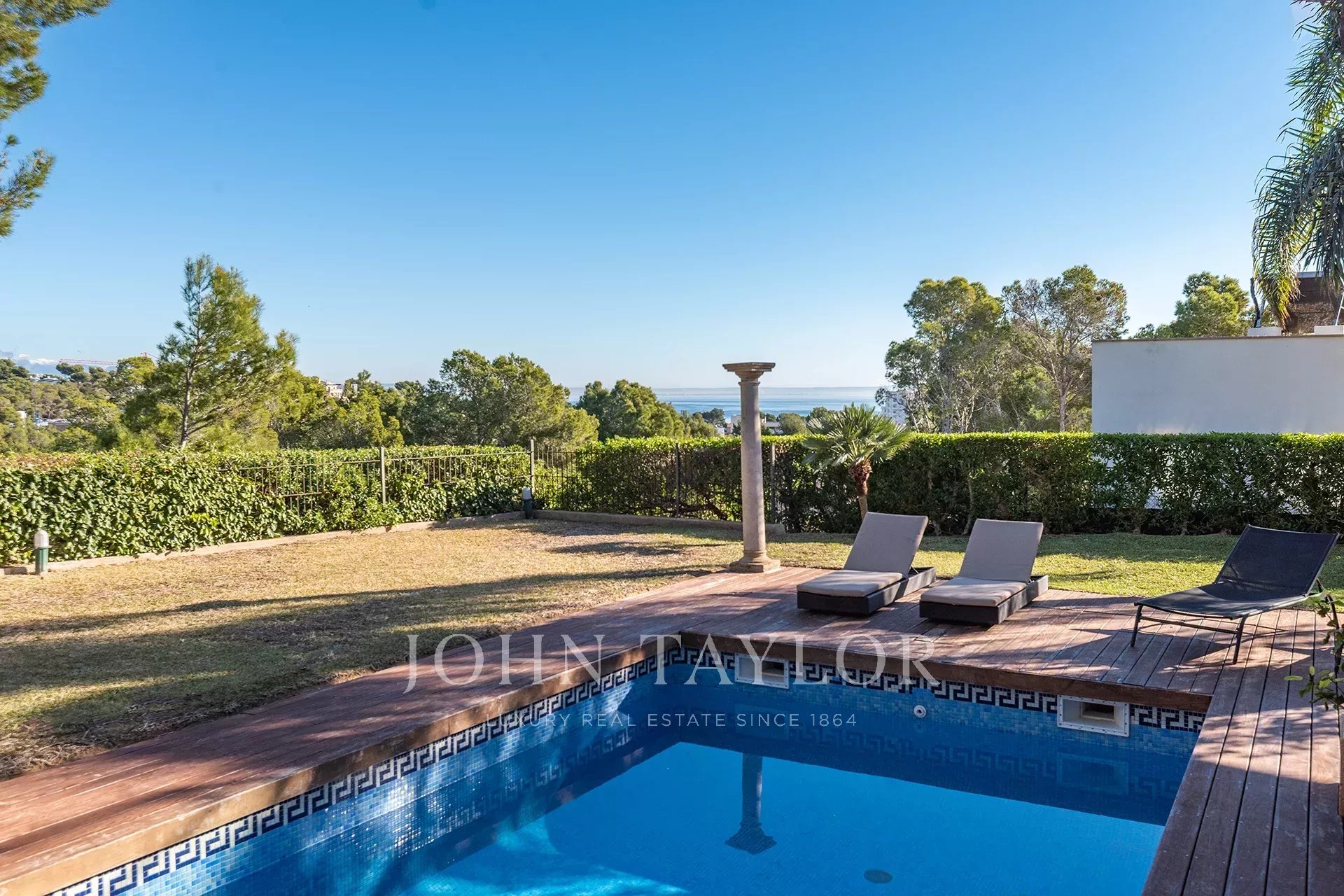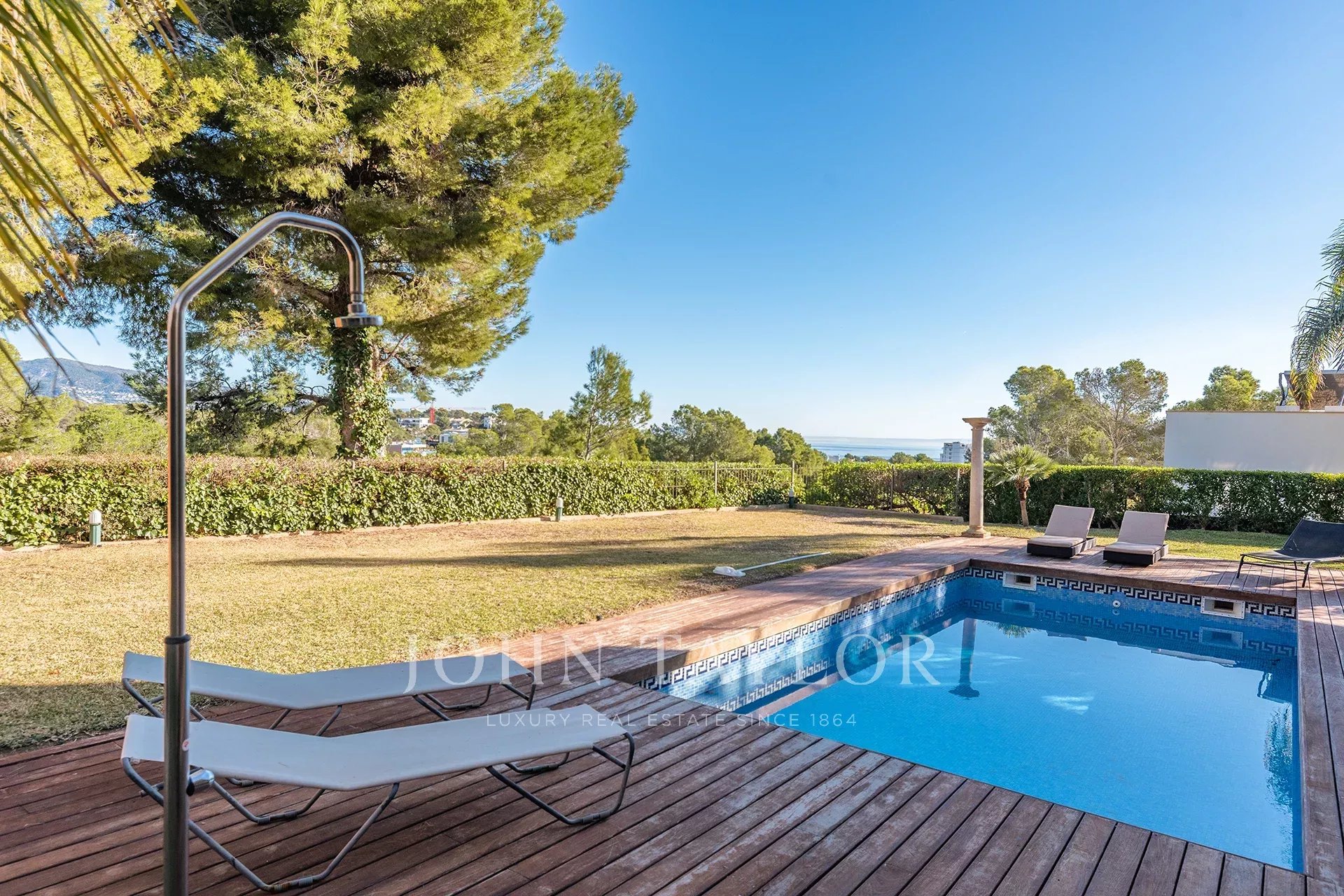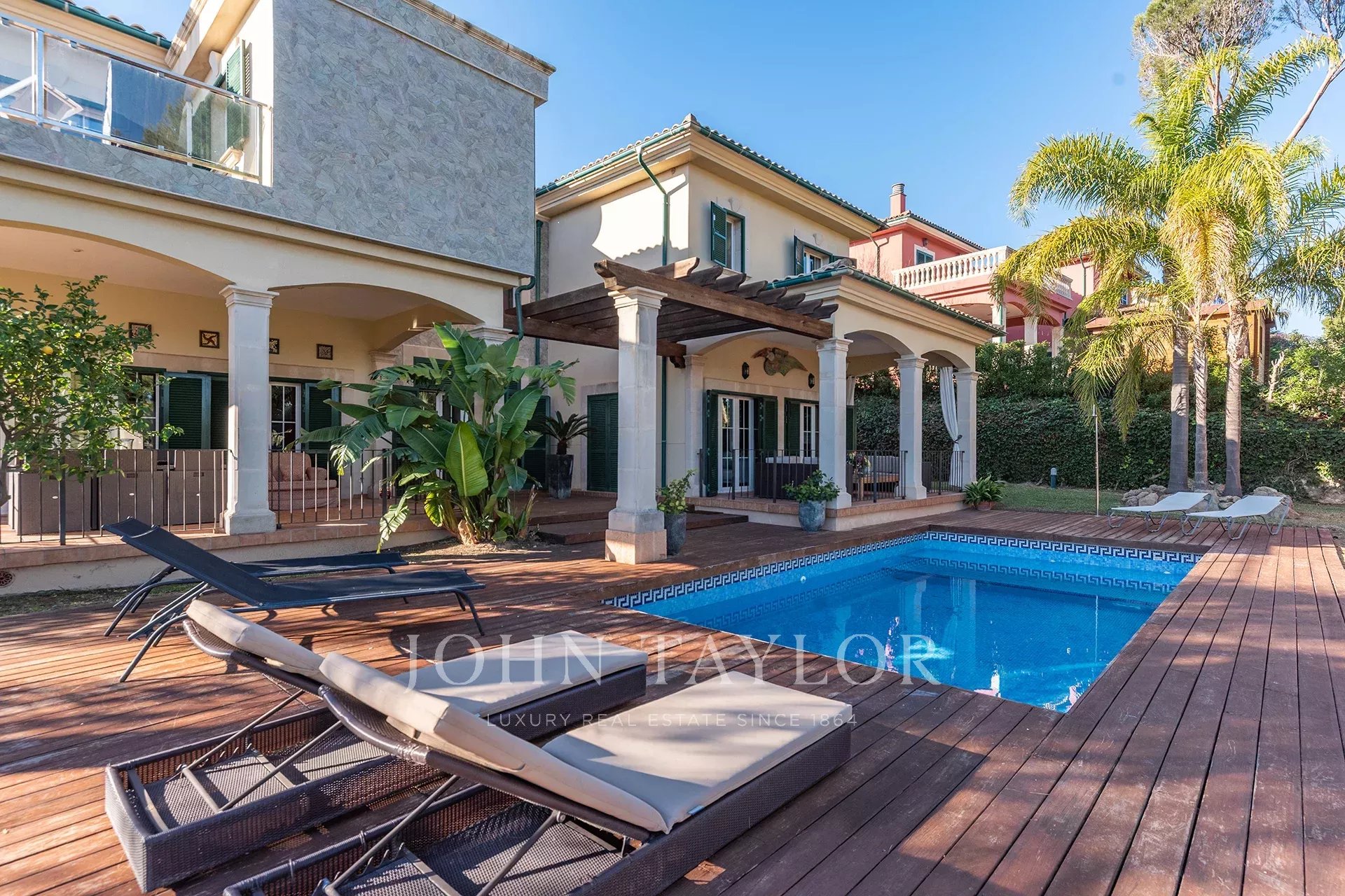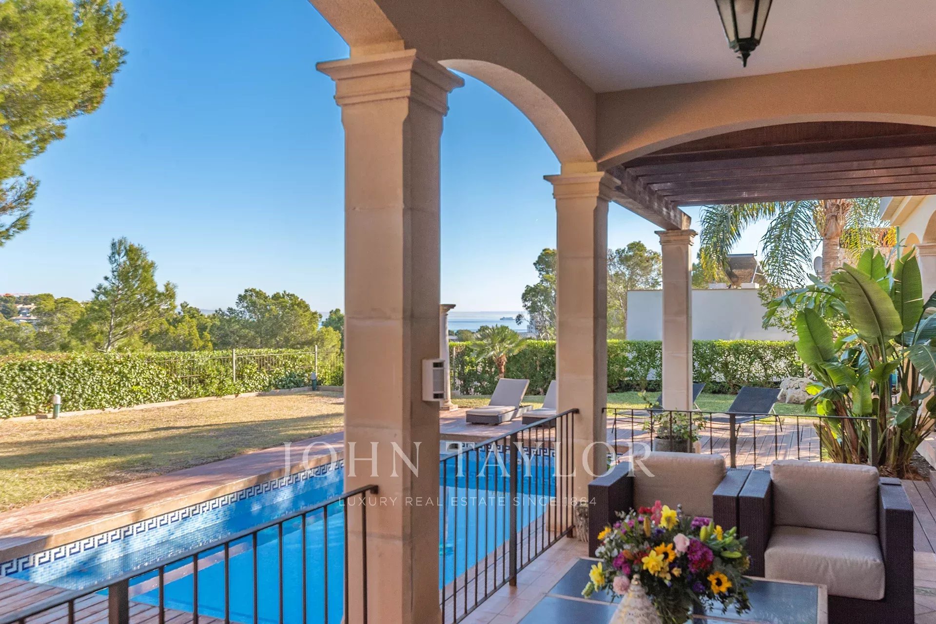 Útulná vila s dostatkem soukromí na klidném místě v Cala Vinyas. Tento nádherný rodinný dům se nachází v malé komunitě v pěší vzdálenosti od pláže. Dům je velmi prostorný a má 3 ložnice s vlastní koupelnou. K dispozici je také další místnost, která se nyní používá jako televizní místnost, ale mohla by být čtvrtou ložnicí. Přízemí domu nabízí prostorný obývací pokoj s jídelnou a krbem, krásnou vstupní halu s vysokými stropy, toaletu pro hosty, moderní kuchyň a technickou místnost. Z obývacího pokoje i kuchyně je přístup na několik teras a do velké zahrady s bazénem. Jak z přízemí, tak z prvního patra si můžete vychutnat částečný výhled na moře. Dřevěné podlahy a kvalitní truhlářské práce, garáž a 2 venkovní parkovací místa doplňují tuto krásnou vilu.