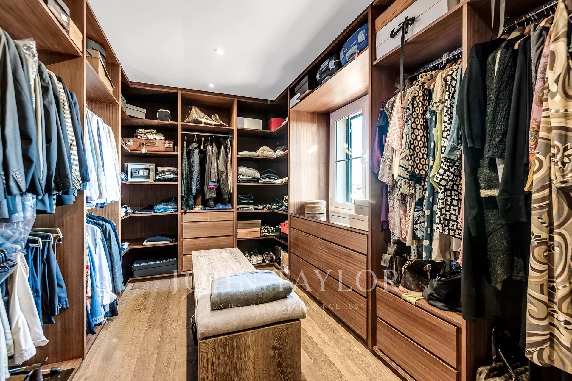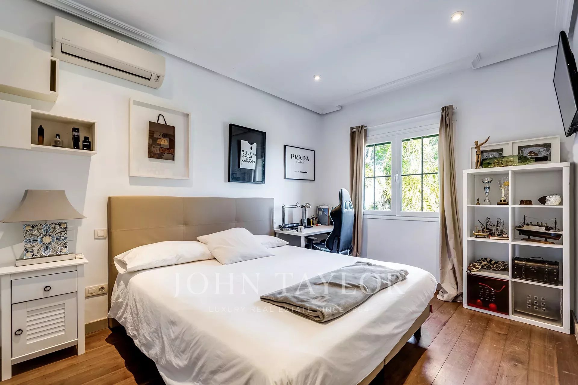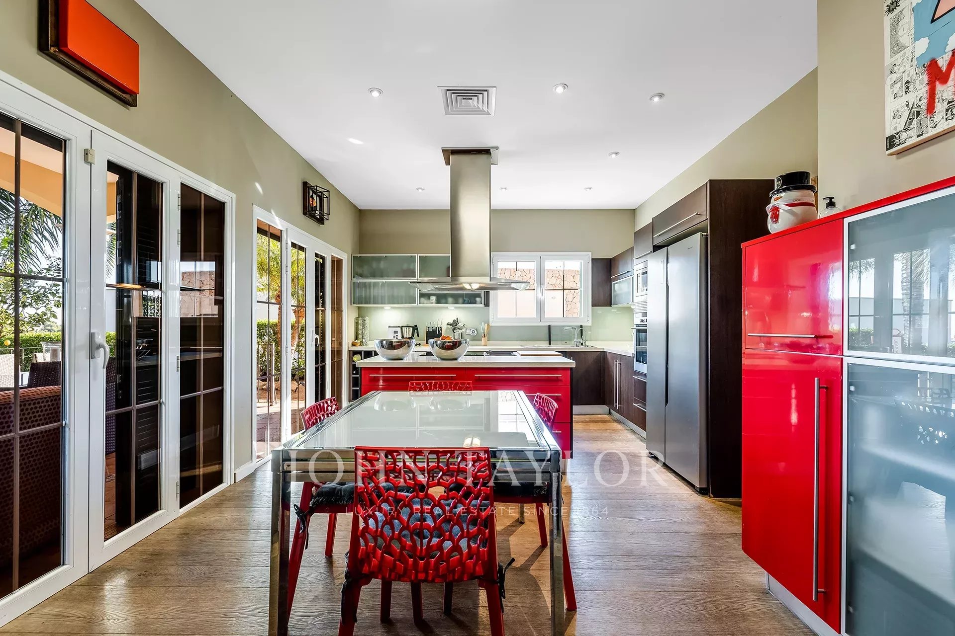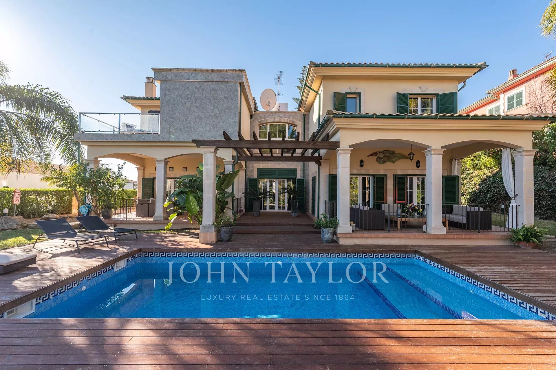 Útulná vila s dostatkem soukromí na klidném místě v Cala Vinyas. Tento nádherný rodinný dům se nachází v malé komunitě v pěší vzdálenosti od pláže. Dům je velmi prostorný a má 3 ložnice s vlastní koupelnou. K dispozici je také další místnost, která se nyní používá jako televizní místnost, ale mohla by být čtvrtou ložnicí. Přízemí domu nabízí prostorný obývací pokoj s jídelnou a krbem, krásnou vstupní halu s vysokými stropy, toaletu pro hosty, moderní kuchyň a technickou místnost. Z obývacího pokoje i kuchyně je přístup na několik teras a do velké zahrady s bazénem. Jak z přízemí, tak z prvního patra si můžete vychutnat částečný výhled na moře. Dřevěné podlahy a kvalitní truhlářské práce, garáž a 2 venkovní parkovací místa doplňují tuto krásnou vilu.