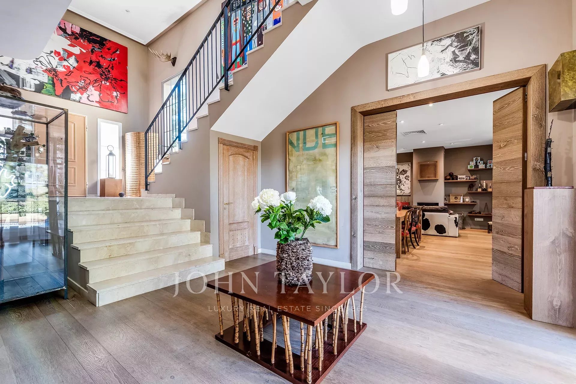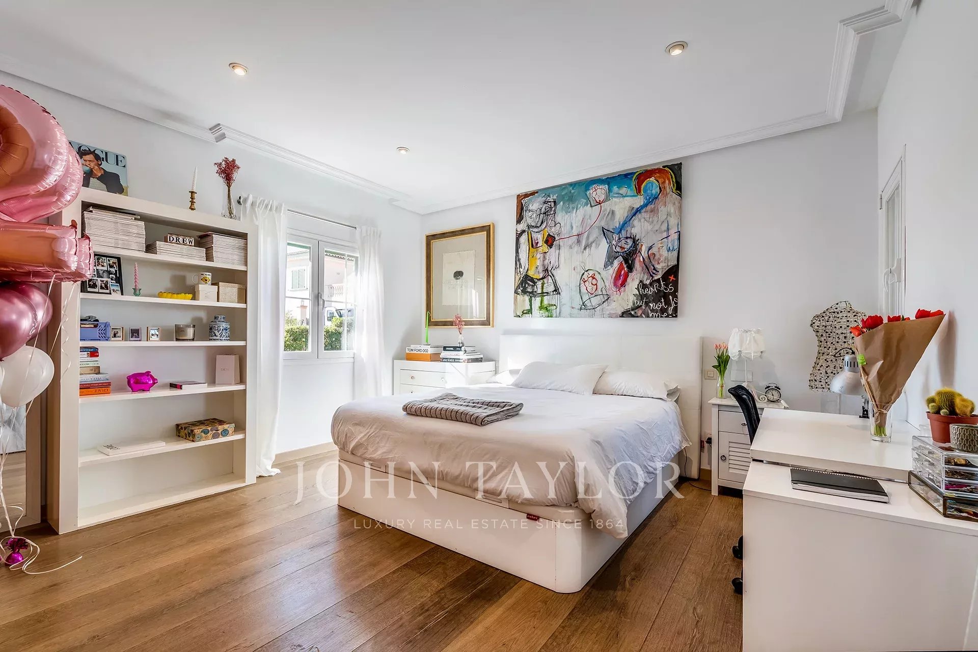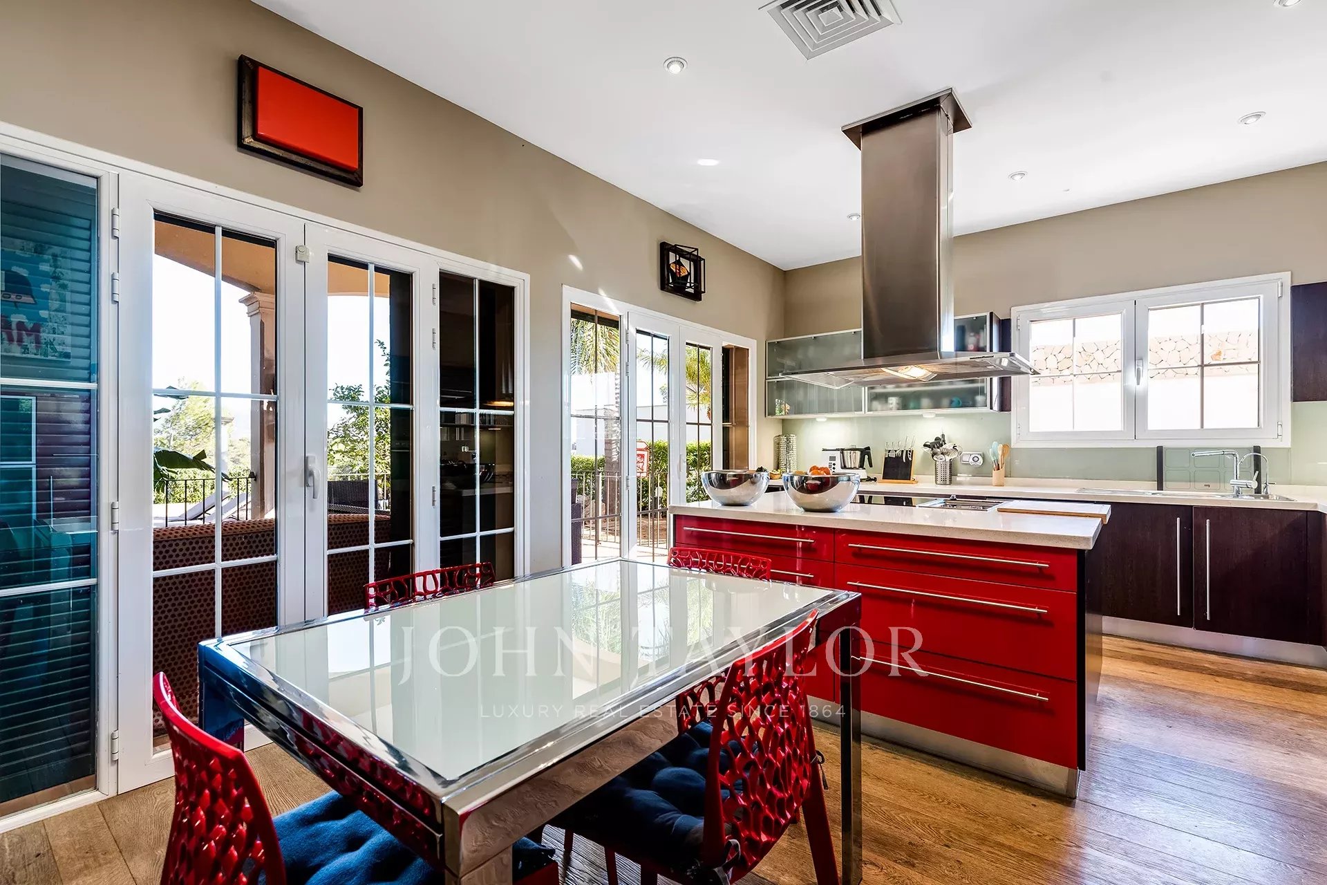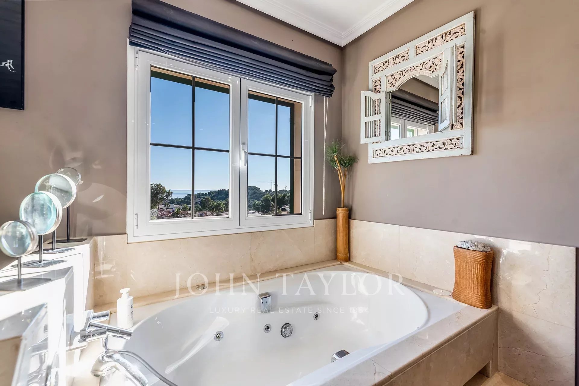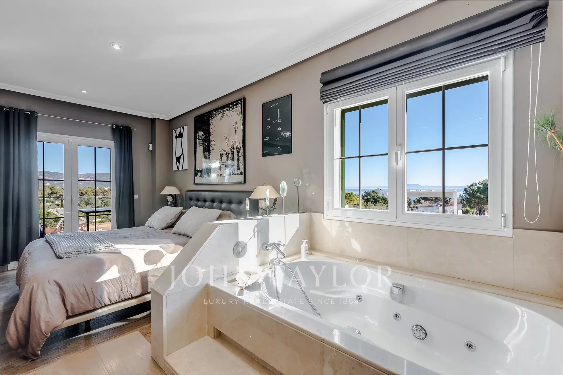 Útulná vila s dostatkem soukromí na klidném místě v Cala Vinyas. Tento nádherný rodinný dům se nachází v malé komunitě v pěší vzdálenosti od pláže. Dům je velmi prostorný a má 3 ložnice s vlastní koupelnou. K dispozici je také další místnost, která se nyní používá jako televizní místnost, ale mohla by být čtvrtou ložnicí. Přízemí domu nabízí prostorný obývací pokoj s jídelnou a krbem, krásnou vstupní halu s vysokými stropy, toaletu pro hosty, moderní kuchyň a technickou místnost. Z obývacího pokoje i kuchyně je přístup na několik teras a do velké zahrady s bazénem. Jak z přízemí, tak z prvního patra si můžete vychutnat částečný výhled na moře. Dřevěné podlahy a kvalitní truhlářské práce, garáž a 2 venkovní parkovací místa doplňují tuto krásnou vilu.