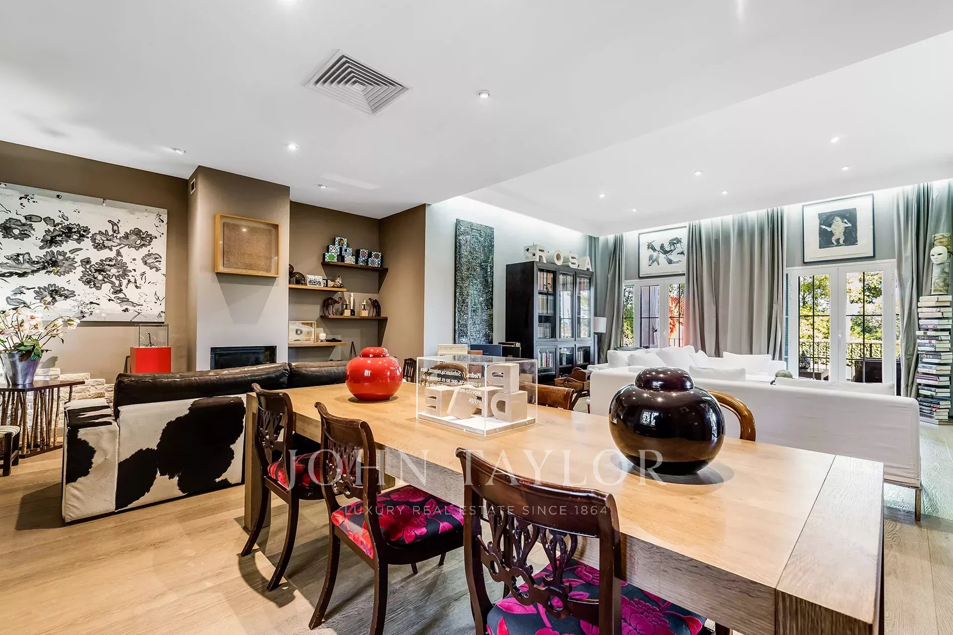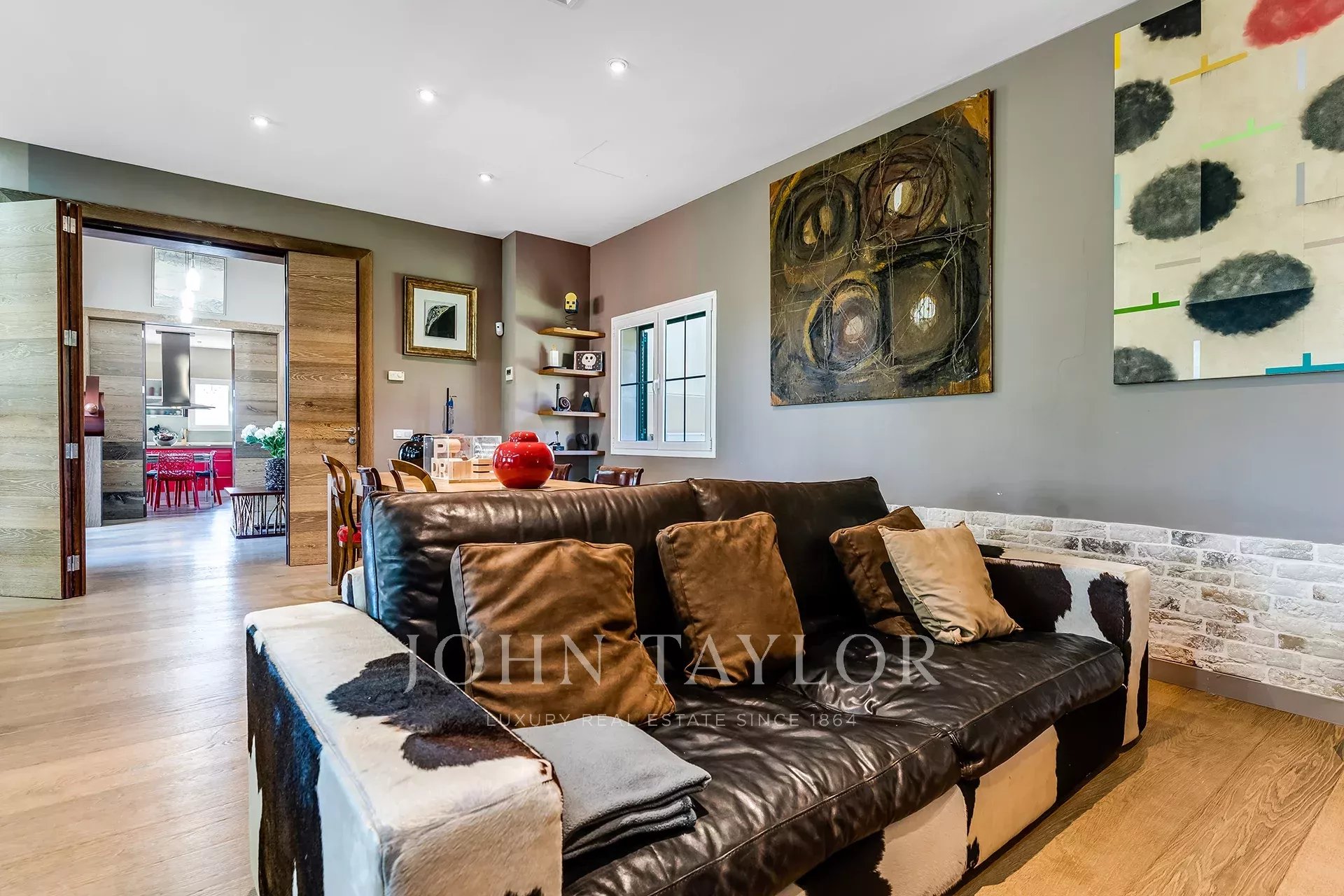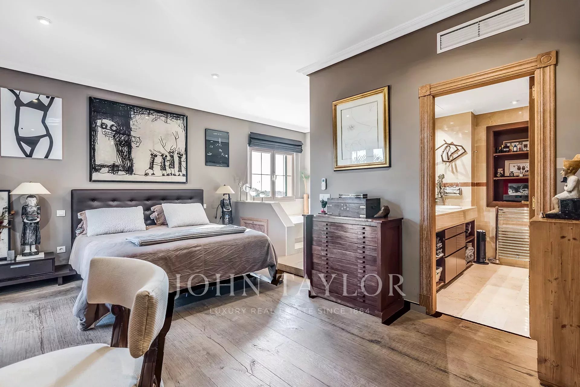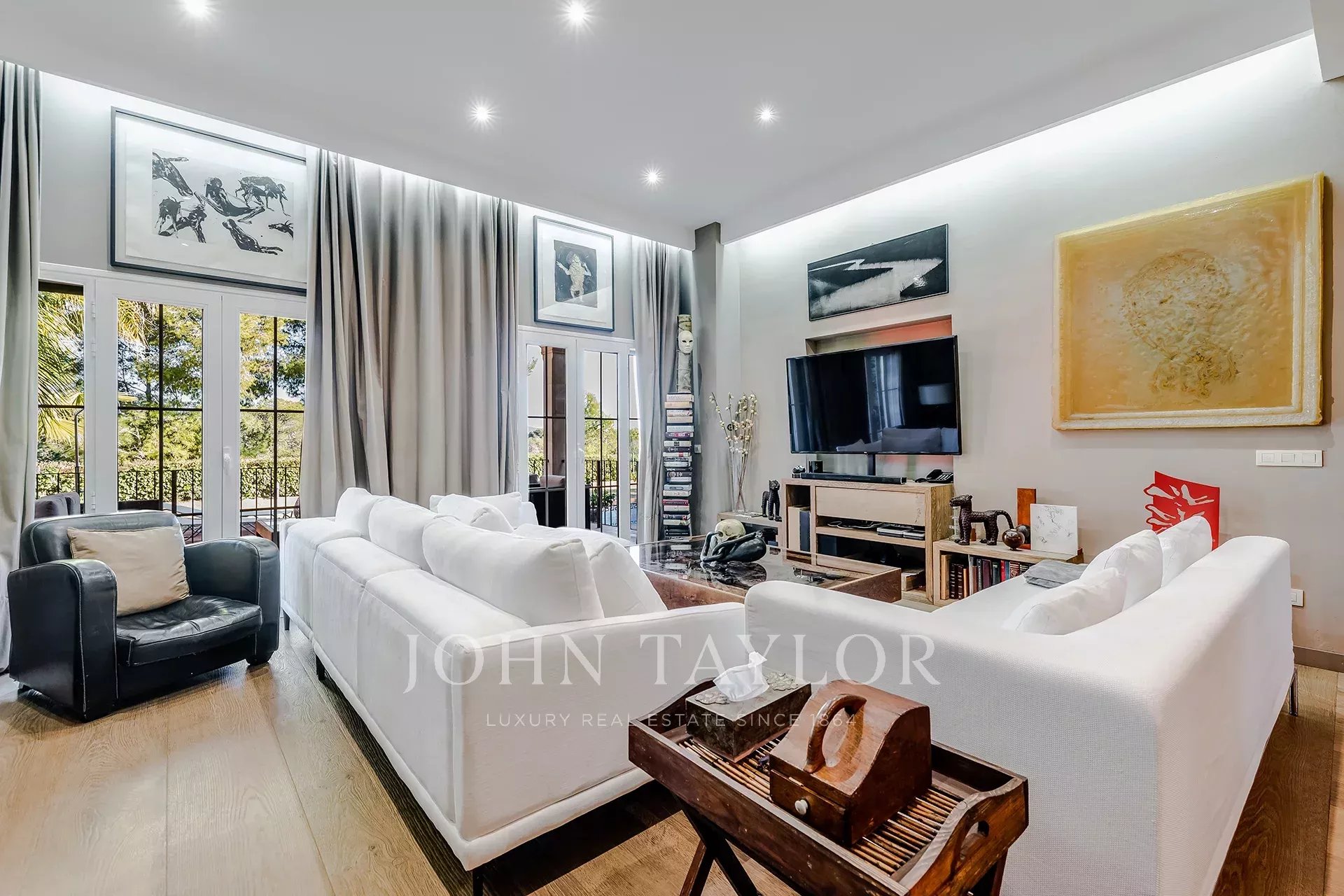 Útulná vila s dostatkem soukromí na klidném místě v Cala Vinyas. Tento nádherný rodinný dům se nachází v malé komunitě v pěší vzdálenosti od pláže. Dům je velmi prostorný a má 3 ložnice s vlastní koupelnou. K dispozici je také další místnost, která se nyní používá jako televizní místnost, ale mohla by být čtvrtou ložnicí. Přízemí domu nabízí prostorný obývací pokoj s jídelnou a krbem, krásnou vstupní halu s vysokými stropy, toaletu pro hosty, moderní kuchyň a technickou místnost. Z obývacího pokoje i kuchyně je přístup na několik teras a do velké zahrady s bazénem. Jak z přízemí, tak z prvního patra si můžete vychutnat částečný výhled na moře. Dřevěné podlahy a kvalitní truhlářské práce, garáž a 2 venkovní parkovací místa doplňují tuto krásnou vilu.