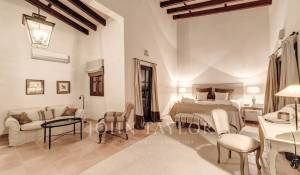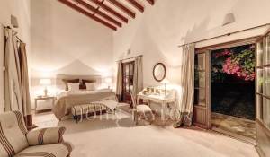 Tato finca na prodej se nachází na fantastickém místě a nabízí jedinečný zážitek z bydlení. Je zasazena do prostředí klidné pohody a nabízí naprosté soukromí a bezkonkurenční spojení s okolní přírodou. Navzdory svému idylickému útočišti se tato nemovitost těší těsné blízkosti veškeré občanské vybavenosti, kterou jihozápadní část Mallorky nabízí. Finca se nachází jen pár kroků od půvabné vesničky Calvia a pouhých 15 minut jízdy autem od zlatavých pláží, vyhlášených golfových hřišť, vybraných restaurací, okouzlujících barů a exkluzivních obchodů. Tento skvost s pozemkem o rozloze 30 000 m2 byl v roce 2012 kompletně zrekonstruován a nabízí olejové podlahové vytápění, kované vstupní dveře, velmi vysoké stropy s odhalenými trámy a muntinová okna s dvojitým zasklením ve venkovském stylu. Díky vlastní studni a solárním panelům je nemovitost zcela soběstačná. Hlavní dům je důkazem elegance a funkčnosti, s prostorným obývacím pokojem, který vybízí k relaxaci, vysoce kvalitní kuchyní, toaletou pro hosty a čtyřmi ložnicemi, z nichž každá má vlastní koupelnu. Kromě toho je součástí nemovitosti byt pro hosty, který nabízí vlastní obytný prostor s obývacím pokojem a kuchyní, dvě ložnice a koupelnu. Kryté terasy a svěží rajská zahrada s nekonečným bazénem jsou oázou luxusu a pohodlí, která uspokojí všechny vaše touhy po venkovním bydlení. Odtud se vám naskytne majestátní výhled na hory. Pro milovníky koní a oslů má tato usedlost několik stájí a dostatek výběhů, takže je dokonalým útočištěm pro milovníky jízdy na koni. Domluvte si s námi návštěvu.