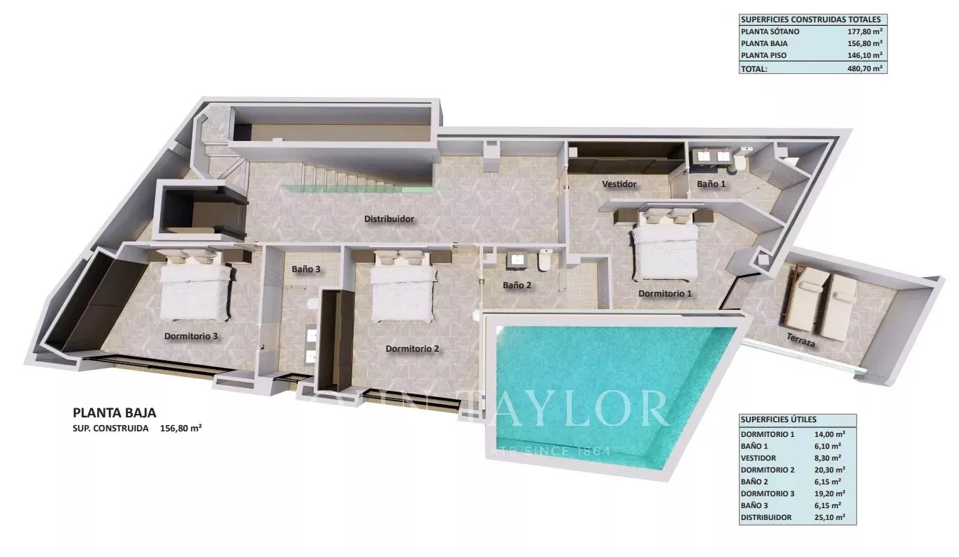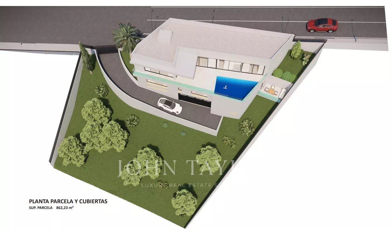 Nabízíme vám designovou vilu, která se staví s vysokou kvalitou v klidné a nádherné oblasti. Výhled na moře je nádherný. Nachází se na pozemku o rozloze přibližně 862 m² a nabízí obytnou plochu 480 m2 rozloženou do dvou podlaží a suterénu. V horním patře, které je na úrovni ulice, se nachází vstupní hala s výtahem, otevřený obývací pokoj s jídelnou, ložnice s šatnou a koupelnou en-suite, se vstupem na pěknou terasu a toaleta pro hosty. Z tohoto patra se na prostorné terase můžete kochat fantastickým bazénem s výhledem na hory a okolí až k moři. V přízemí se nachází prostorný hlavní apartmán s vlastní koupelnou a šatnou a soukromou terasou a další tři ložnice. Výtahem nebo po schodech se dostanete do suterénu s garáží pro 2 auta, technickou místností a technickou místností. Dokončení je plánováno na začátek roku 2025. Dálnice není slyšet. Pro více informací a sjednání prohlídky nás neváhejte kontaktovat. Toto je vaše příležitost získat novostavbu domu v jedné z nejvyhledávanějších oblastí s velkým klidem.