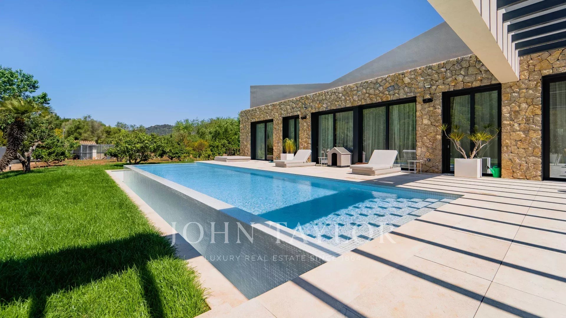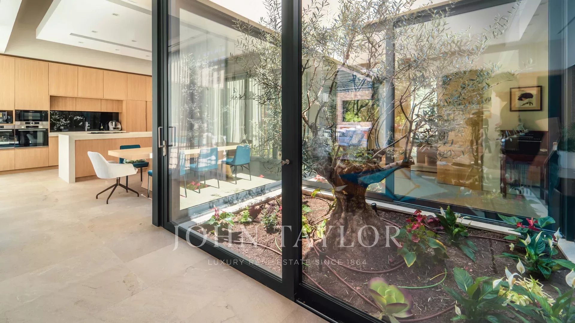 Tento nově postavený venkovský dům se nachází pouhých 10 minut od Palmy. Jeho úžasná architektura, okna od podlahy ke stropu a otevřený půdorys zajišťují maximální design, přirozené světlo a absolutní pohodlí. Hlavní obytná část se točí kolem centrálního atria s vnitřní zahradou a skládá se ze 4 ložnic s koupelnami, obývacího pokoje s krbem, plně vybavené kuchyně, spíže, vinotéky, domácí pracovny, šatny a toalety pro hosty, prádelny, soukromé posilovny a garážového stání včetně dvou elektrických nabíječek. Z celého vnitřního prostoru je přístup na venkovní terasu včetně prostor vyhrazených pro B.B.Q. a Paellu. Nádherná zahrada zahrnuje ovocné stromy i zeleninový záhon. Nemovitost je vybavena nejmodernějšími technologiemi včetně podlahového vytápění, centrální klimatizace, zabezpečovacího systému, systému domácí automatizace, integrovaného ozvučení. Nemovitost se bude prodávat kompletně zařízená a připravená pro své nové majitele k nastěhování se vším všudy.