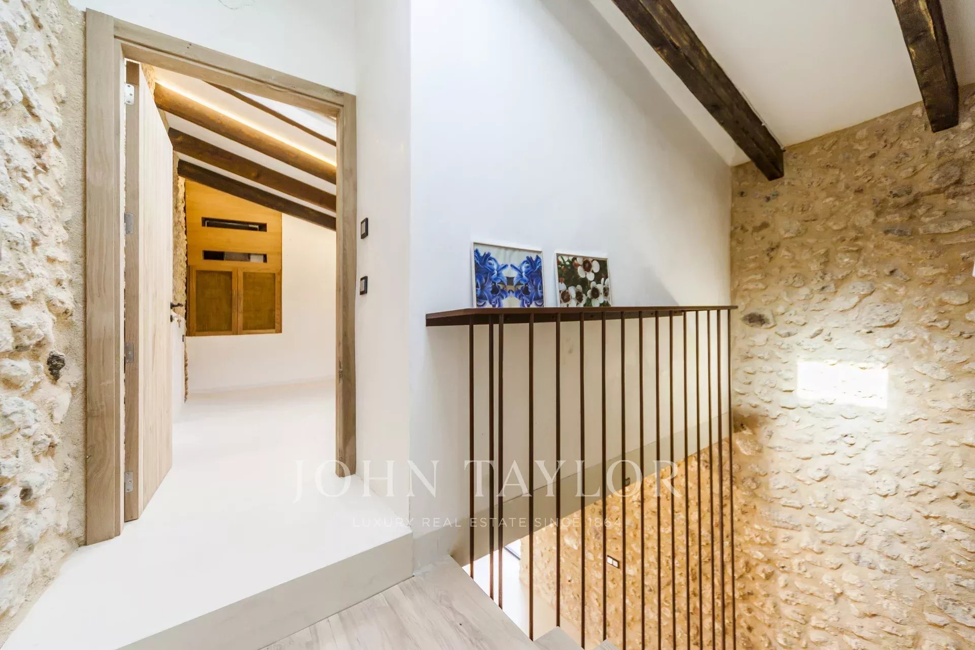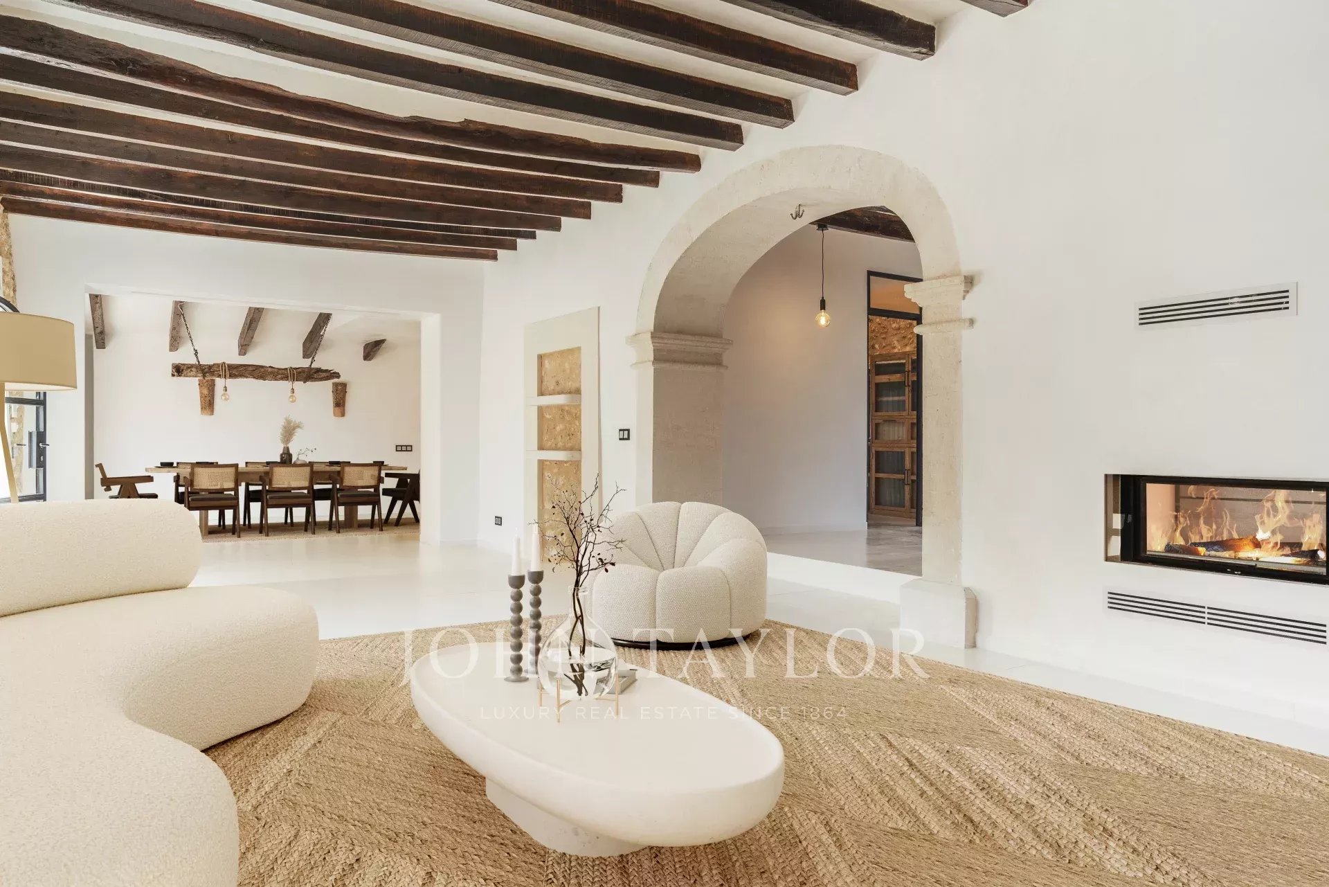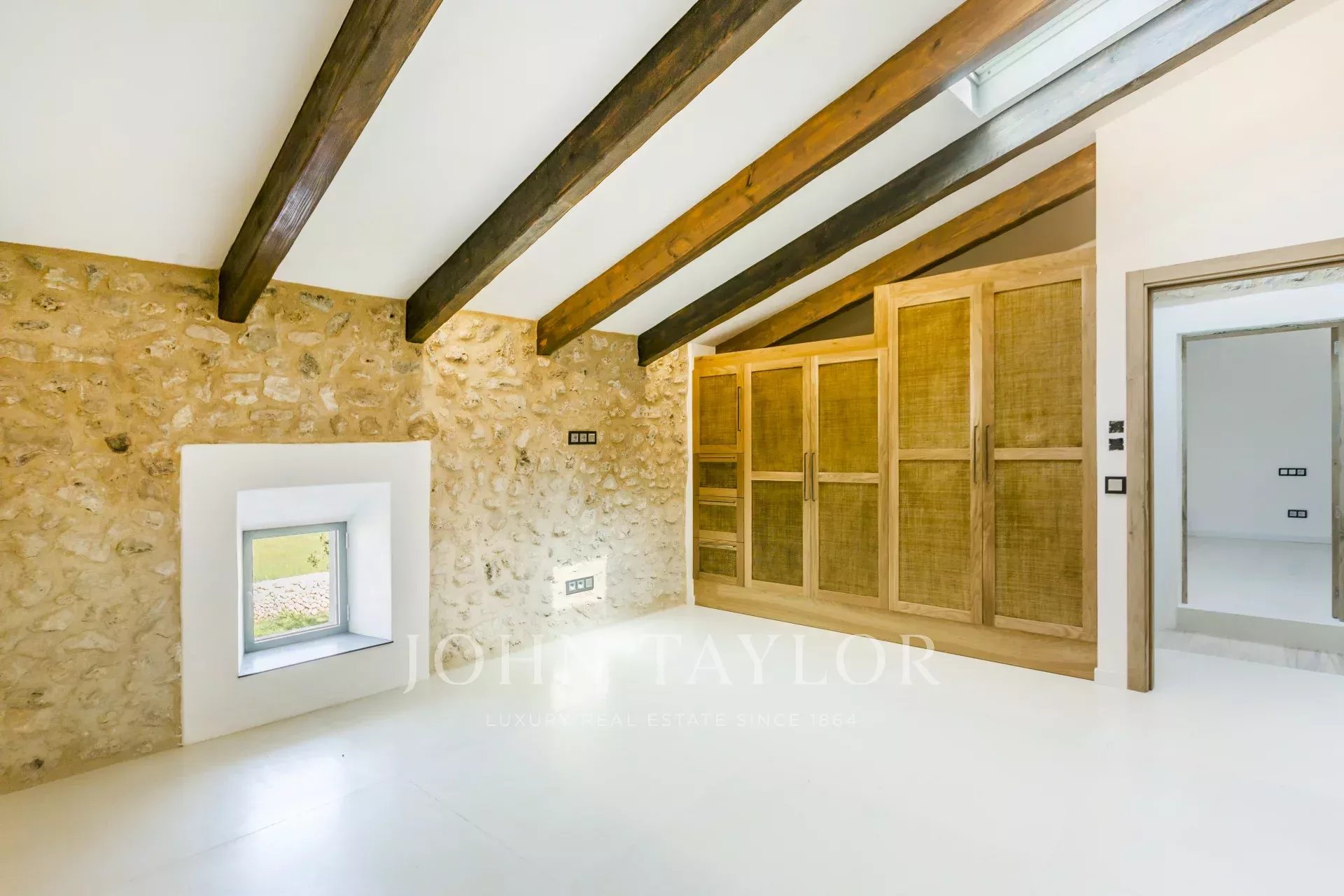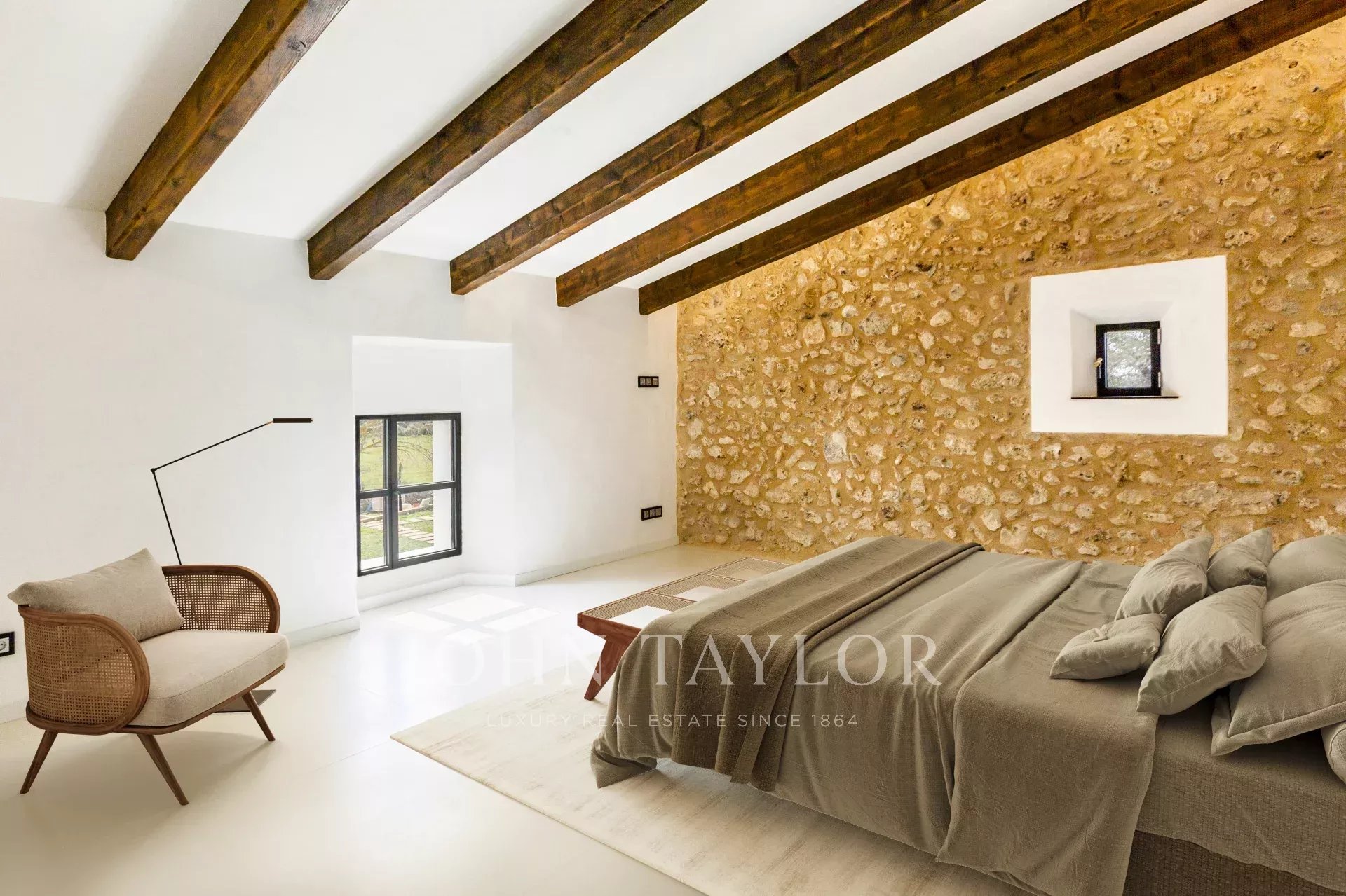Tato úžasná nemovitost hned při vstupu vyzařuje historii, přírodu, ticho a prostor. Kompletně zrekonstruovaná usedlost, jejíž historie sahá až do 16. století, nabízí otevřený obývací pokoj s jídelnou, útulný krb, na míru vyrobenou plně vybavenou kuchyň včetně spotřebičů Gaggenau. Celé přízemí vede na krytou verandu, otevřené terasy a zahradu. Hlavní dům nabízí 4 ložnice s vlastním sociálním zařízením, v případě potřeby možnost přidat pátou ložnici. Jedna z venkovních budov zahrnuje finské lázně i saunu a druhá venkovní budova je ideální k přestavbě podle přání nových majitelů. Venkovní krytá veranda zahrnuje b.b.q. venkovní kuchyňský kout včetně pece na pizzu. Velké otevřené terasy a bazén nabízejí nerušený výhled do otevřené krajiny.