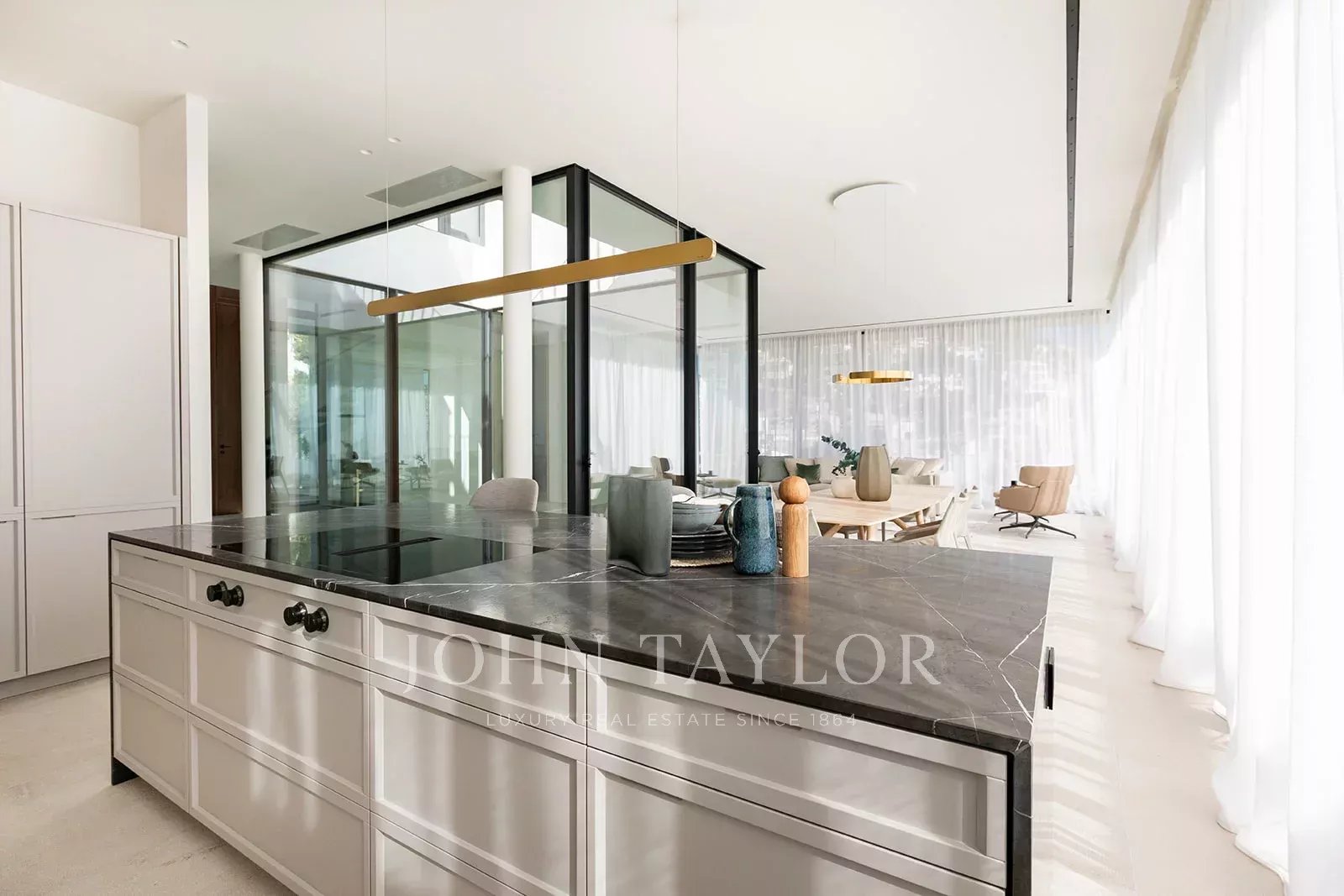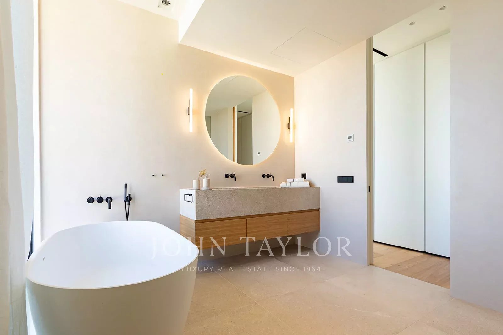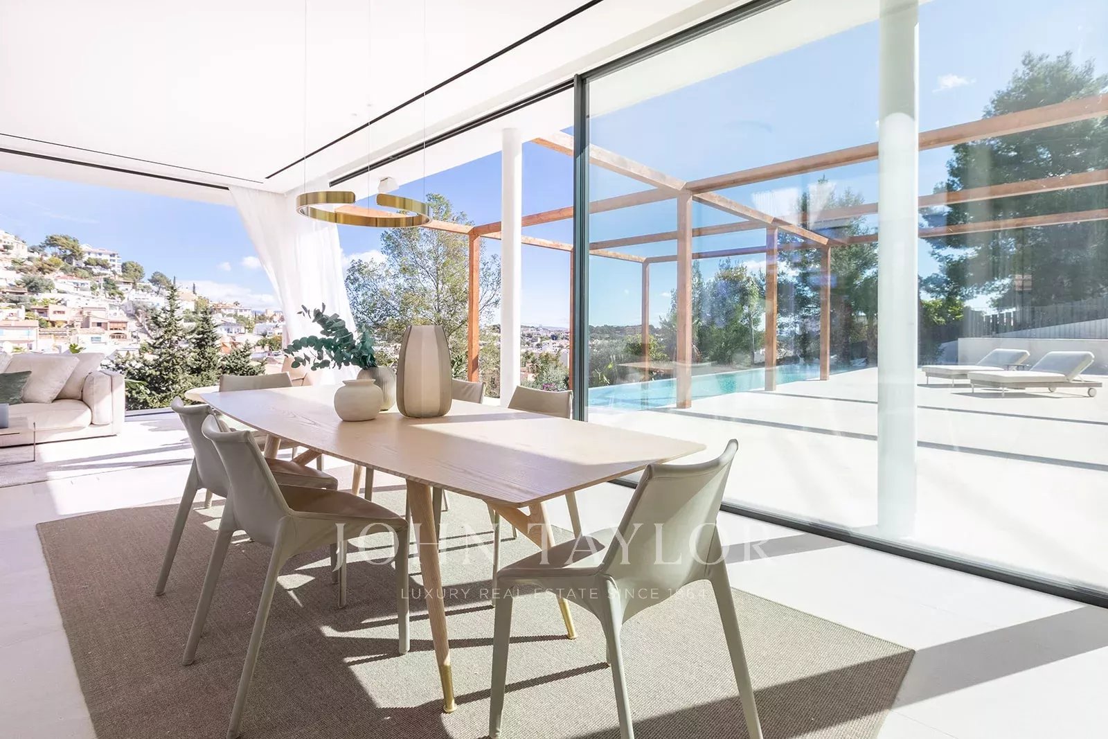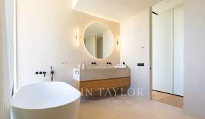 Tato moderní vila se pyšní více než 400 metry čtverečními důmyslného obytného prostoru, který stírá hranice mezi interiérem a exteriérem. Mezi hlavní přednosti této výjimečné nemovitosti patří soukromý bazén, rozsáhlé terasy, centrální atrium, které do interiéru vnáší přirozené světlo, a podzemní parkoviště pro tři auta. Nemovitost postavená na mírně svažitém pozemku je obklopena upravenými zahradami s nekonečným bazénem v nejnižším bodě, terasami a obytnými prostory orientovanými směrem k horám a otevřeným konceptem interiéru. Srdcem přízemí je atrium plné rostlin, které prostor naplňuje přirozeným světlem. Vějířovitě od něj odstupují vstupní hala a schodiště, spíž/společenská místnost, jedna dvoulůžková ložnice s vlastní koupelnou a prostorná otevřená koncepce kuchyně, jídelny a obývacího pokoje, uspořádaná na rozdělených úrovních, které odpovídají úrovním venkovních teras. Prosklení od podlahy ke stropu podél jedné strany obývacího prostoru směřuje na terasu s jídelnou a posezením, čímž se maximálně využívá potenciál venkovního bydlení. V prvním patře, které je rovněž přístupné po venkovním schodišti, se nacházejí další tři dvoulůžkové ložnice a koupelny. Dvě z nich jsou orientovány do atria, což zajišťuje dostatek světla, a mají také přístup na společnou terasu s výhledem do krajiny. V tomto moderním mallorském domě bude použita prvotřídní konstrukce, nejlepší materiály a špičkové spotřebiče. Neustálé používání světlého dřeva, obkladů z přírodního kamene a množství skla uvnitř i venku tuto nemovitost esteticky spojuje a zajišťuje, že je teplá, světlá a moderní a zároveň se těší jak blízkosti přírody, tak snadné dostupnosti Palmy a pobřeží.