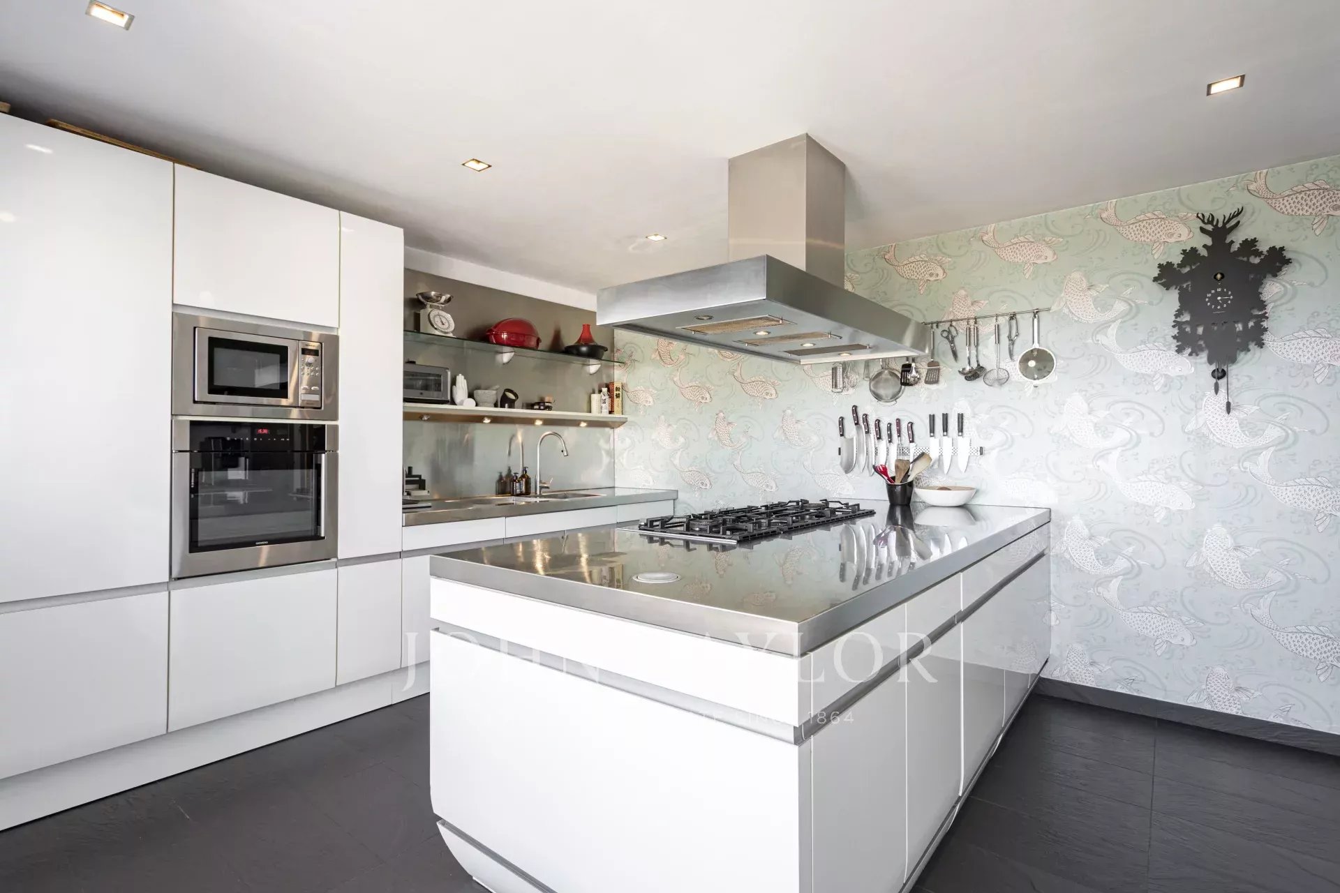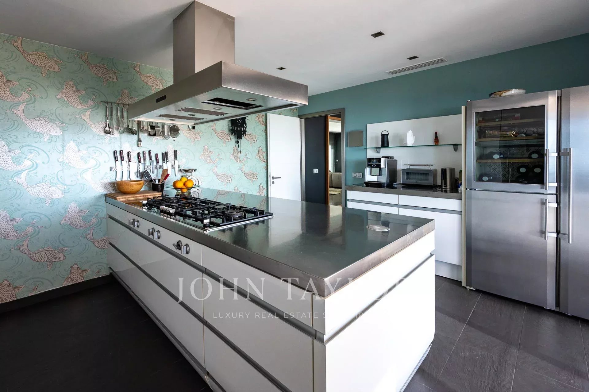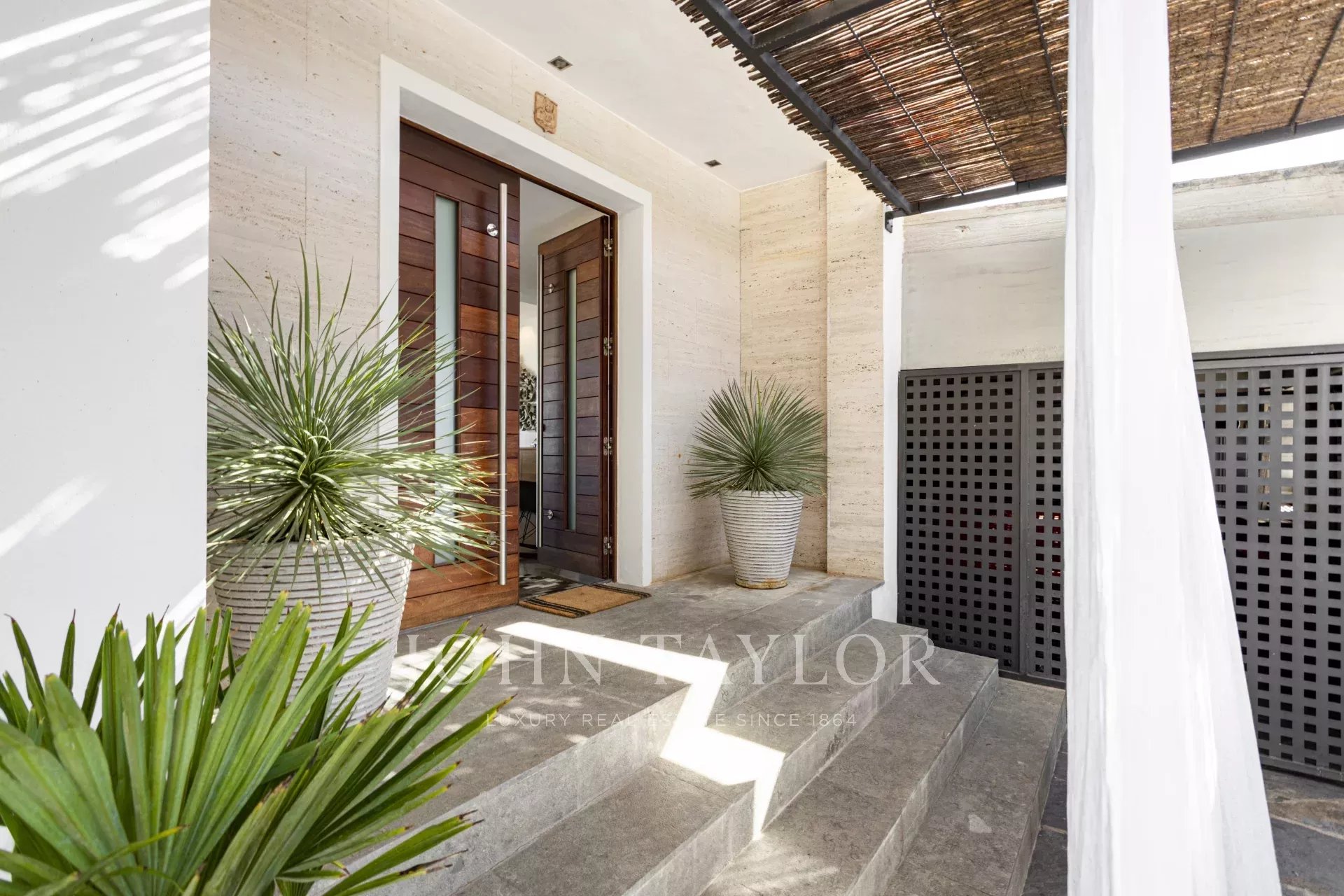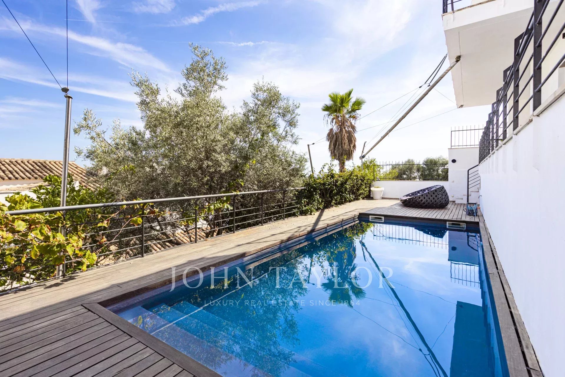 Moderní vybavení zahrnuje centrální klimatizaci, topení, podlahové vytápění v koupelnách a solární panely. Středomořská zahrada s citrusovníky je posledním detailem — připomínkou, že příroda je vždy nablízku, i když jste tak blízko města.