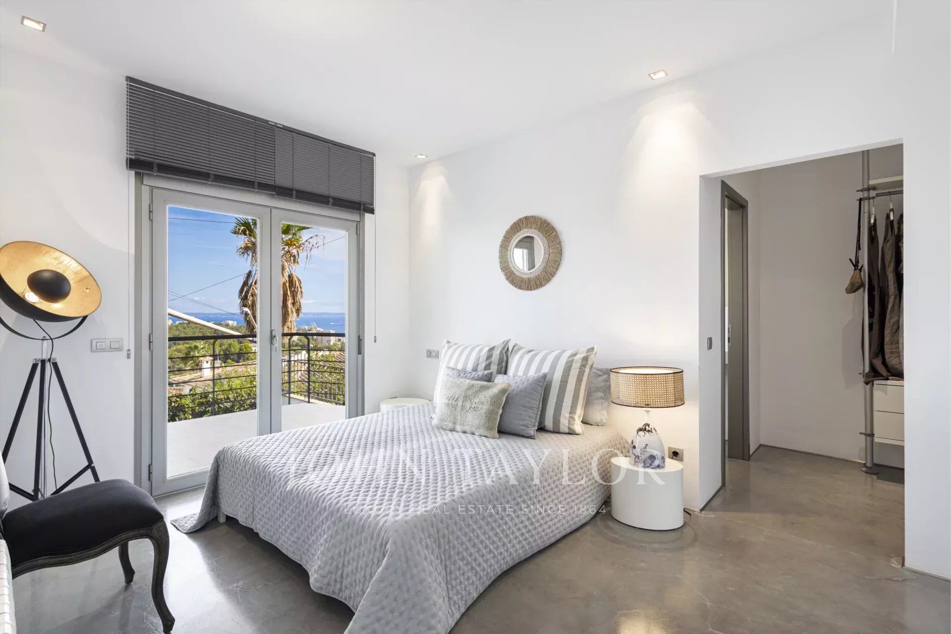 Nedávno zrekonstruovaná vila o rozloze 346 m² kombinuje elegantní interiéry se štědrými venkovními prostory, navrženými tak, aby co nejlépe využívaly mallorského světla a klimatu. Hlavní patro nabízí světlý obývací pokoj s krbem, hlavní ložnici se šatnou a výhledem na moře a plně vybavenou kuchyň — všechny místnosti mají přímý přístup na terasy.