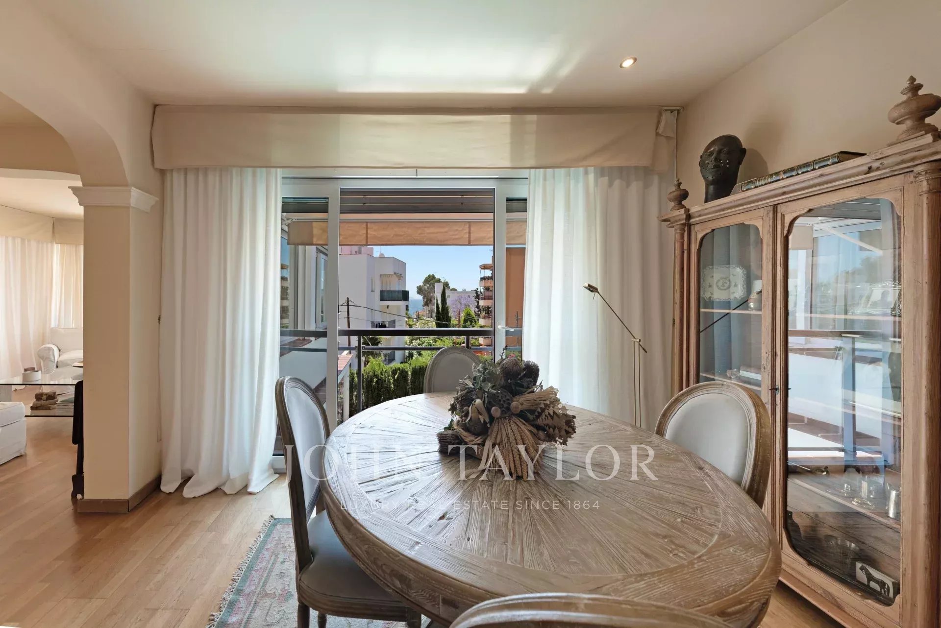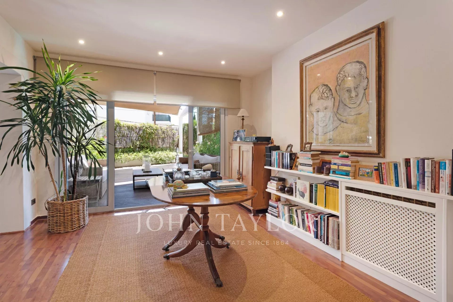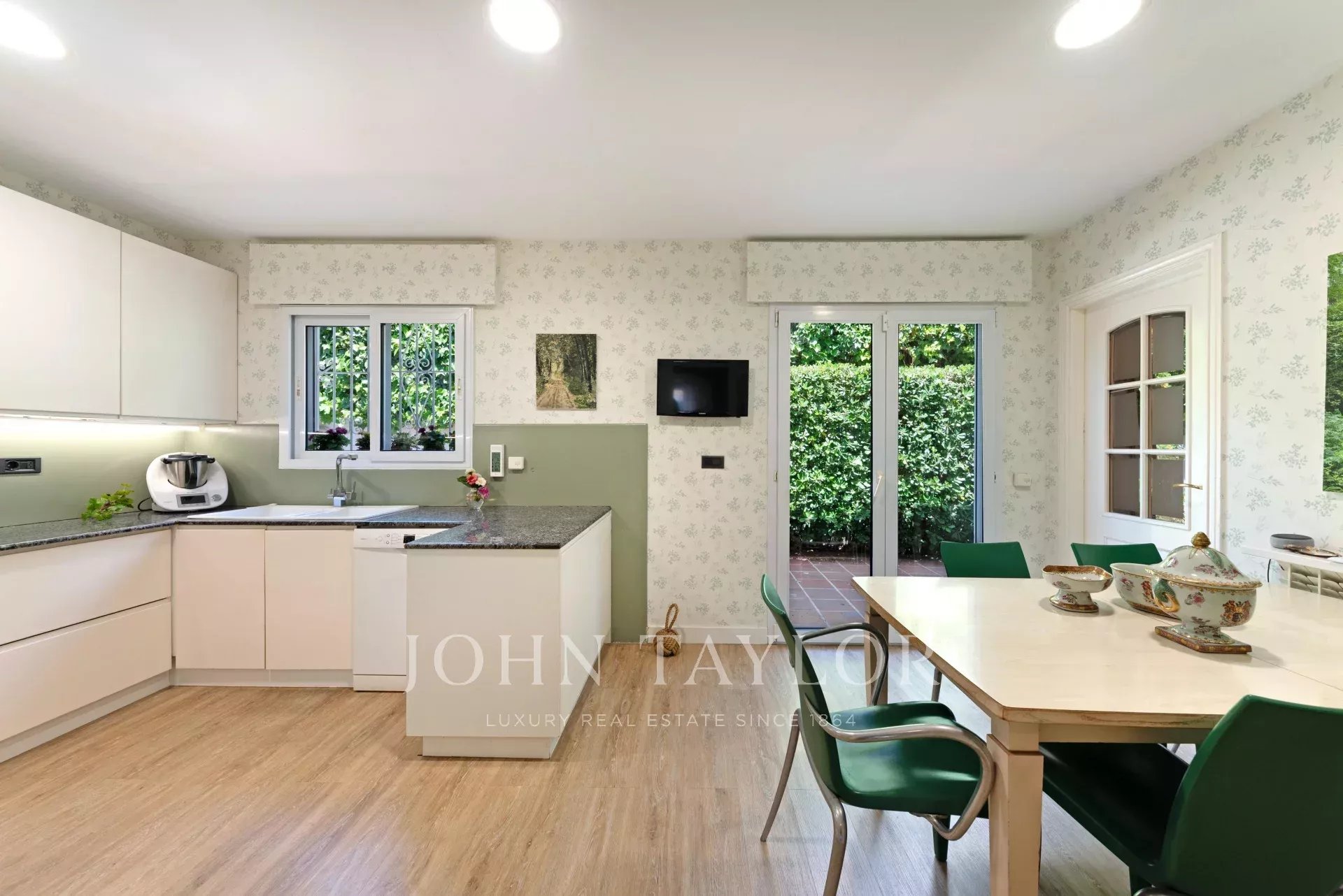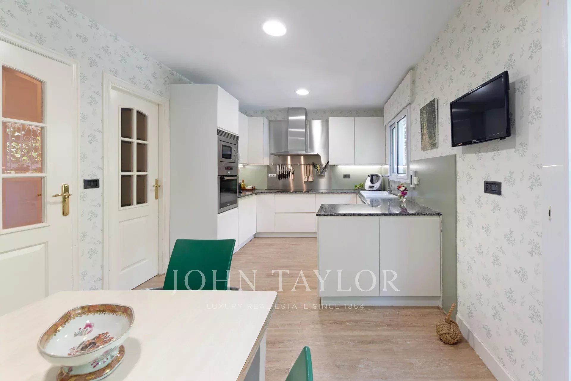 Tento krásný dům s částečným výhledem na moře, zahradou a bazénem je ideálním místem pro trávení volného času. Rozložení ve třech podlažích a garáž nabízí spoustu prostoru a všestrannosti. V prvním patře se nachází vstupní hala, velký obývací pokoj s jídelnou a terasou, kuchyně s jídelním koutem, spíž, prádelna. Jsou zde 2 ložnice, jedna z nich s vlastní koupelnou a šatnou, plus velká toaleta. V horním patře je obývací pokoj, 2 ložnice, 1 koupelna a 1 terasa. Ve spodním patře je TV místnost s plynovým krbem, 2 ložnice, 1 koupelna a další pokoj, vše se vstupem na terasu a zahradu s bazénem. Suterén nabízí velký prostor pro několik aut.