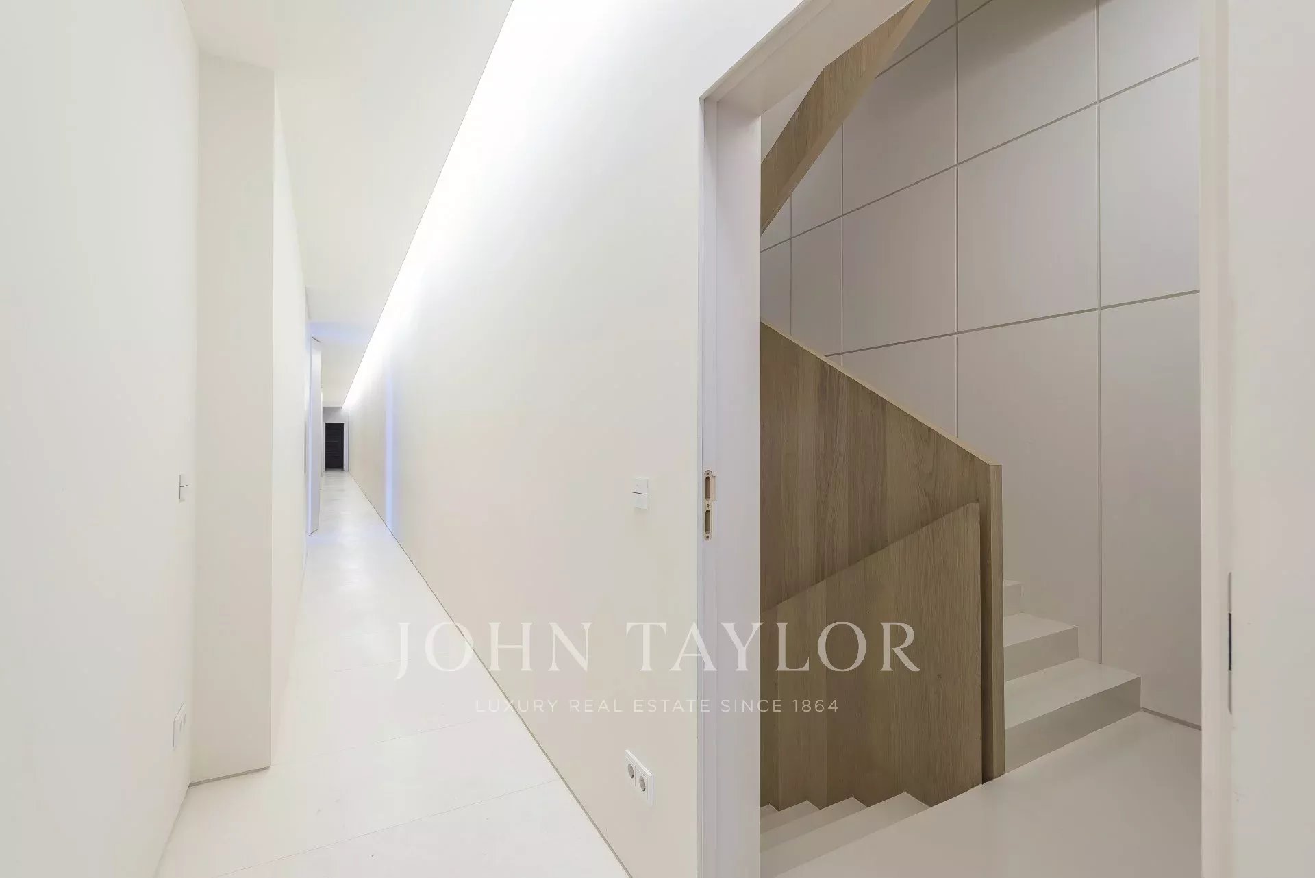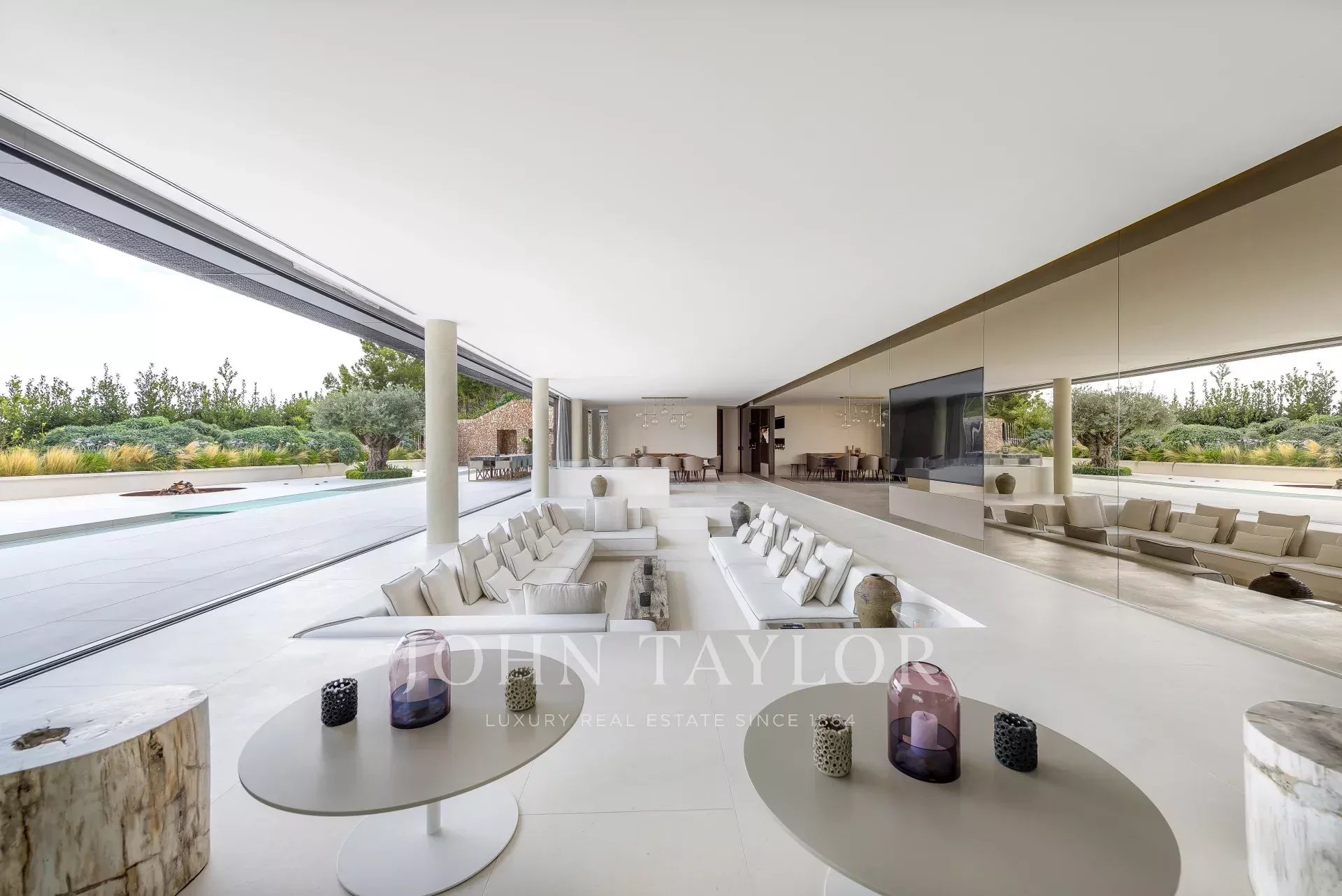 Díky průhledné skleněné fasádě v přízemí se obrovský obývací pokoj otevírá a zasahuje do zahrady, čímž se v létě zdvojnásobuje obytný prostor. Nekonečná terasa je obklopena přírodní krajinou a vybízí k prožití nezapomenutelného západu slunce. Snaha přenést středomořskou krajinu do budovy zlepšuje propojení interiéru se zahradou. Venkovní posezení se stává pokračováním obývacího pokoje.