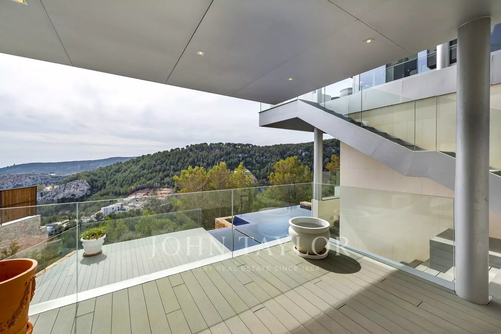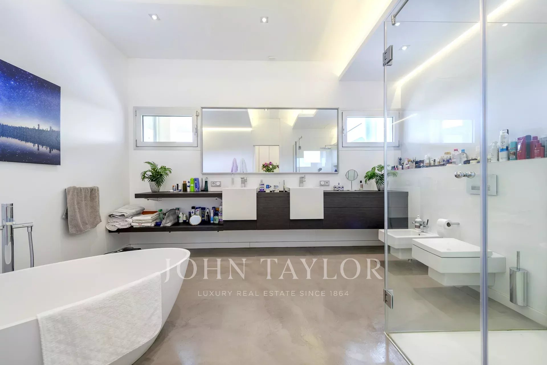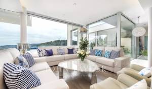 Tato úžasná nemovitost, která se nachází v klidné ulici končící v slepé uličce, nabízí jedinečný zážitek z bydlení. Každý kout této vily s panoramatickým výhledem na moře a hory byl navržen tak, aby poskytoval klid a krásu. Vila má 5 ložnic a 5 koupelen, což poskytuje dostatek pohodlného prostoru pro každodenní bydlení i pro zábavu hostů. Kromě toho je zde studio pro ty, kteří hledají soukromý prostor pro práci z domova, kinosál a plně vybavená posilovna, abyste mohli zůstat ve formě, aniž byste museli opustit domov. Relaxujte a revitalizujte se v sauně v objektu nebo si užijte chvíle klidu v chill out zóně s nádherným výhledem, která je ideální pro vychutnávání velkolepých západů slunce, a vila má nekonečný bazén. Modernost a energetická účinnost jsou v této nemovitosti klíčové, například solární panely, elektrická nabíječka pro automobily, změkčovač vody a osmózový systém. Systém domácí automatizace usnadňuje ovládání a správu domu, zatímco výtah zajišťuje přístupnost všech prostor. Podlahové vytápění/chlazení zajišťuje optimální komfort ve všech ročních obdobích a vytváří útulnou a příjemnou atmosféru v každém koutě vily.