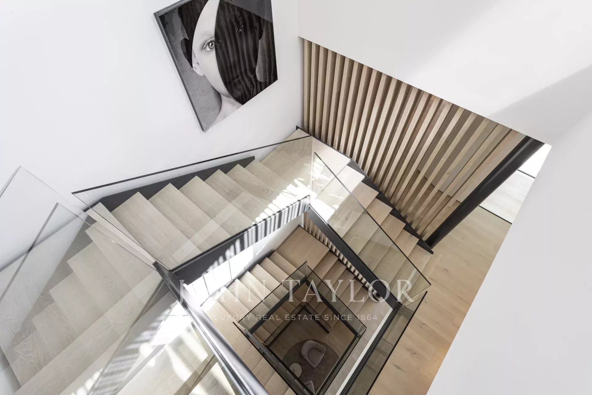 Představujeme tuto exkluzivní novostavbu luxusní vily v Son Vida, jedné z nejprestižnějších rezidenčních oblastí Palmy de Mallorca. Tato jedinečná nemovitost, navržená s ohledem na maximální pohodlí a styl, kombinuje moderní architekturu se špičkovými materiály a nádherným výhledem na moře a město. Ze své vyvýšené polohy nabízí tato impozantní vila panoramatický výhled táhnoucí se od modrého Středozemního moře až k panoramatu Palmy. Její otevřený obývací pokoj s krbem harmonicky ladí s otevřenou kuchyní a jídelnou, což je ideální pro setkání a zvláštní příležitosti. Kromě toho je zde funkční kuchyňský kout, který poskytuje další úložný a pracovní prostor. Wellness centrum zahrnuje elegantní saunu a víceúčelový prostor ideální pro soukromou posilovnu, což z této vily činí skutečnou oázu relaxace a pohodlí. Udržovaná zahrada obklopuje velký soukromý bazén, který je ideální pro celoroční užívání si mallorského klimatu. Vila má 5 prostorných ložnic a 6 plně vybavených koupelen, které jsou navrženy v sofistikovaném stylu a s vysoce kvalitními povrchovými úpravami. K dispozici je samostatný byt pro hosty s vlastním obývacím pokojem, kuchyní, ložnicí a koupelnou: dokonalá rovnováha mezi soukromím a pohostinností. Součástí nemovitosti je úžasná střešní terasa s panoramatickým výhledem a možností instalace venkovní kuchyně, ideální pro stolování pod širým nebem při západu slunce. K dispozici je také výtah a nákladní výtah pro snadný přístup mezi patry. Prodává se kompletně zařízený designovým nábytkem od společnosti Terraza Balear, která je proslulá svou elegancí a pohodlím. Vila nabízí soukromou garáž pro 2 vozidla a další venkovní parkoviště, což zaručuje dostatek místa pro obyvatele i hosty.