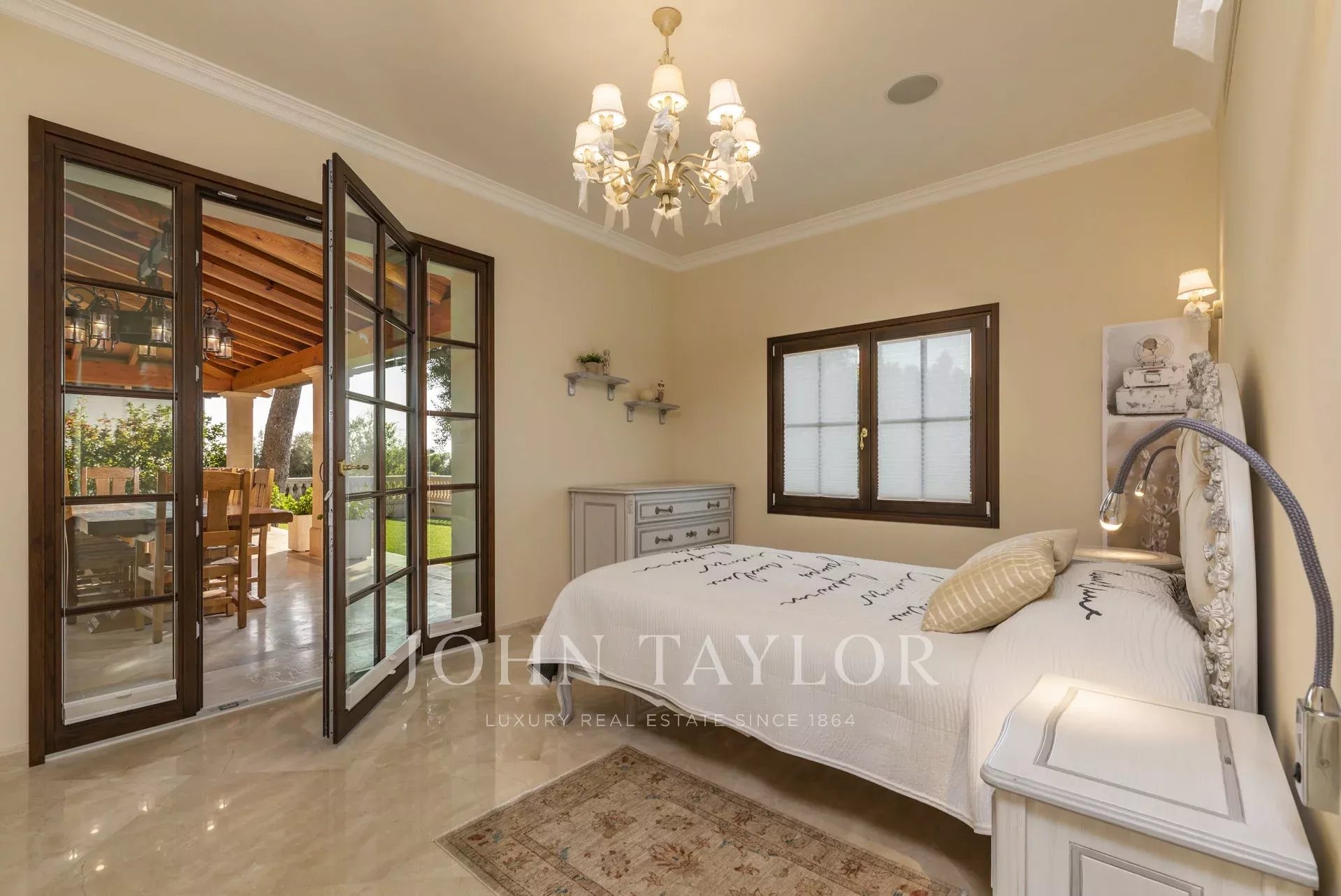 V suterénu se nachází garáž pro 3 auta a sauna pro 4 osoby. V přízemí se nachází obývací pokoj, jídelna oddělená od kuchyně a obývacího pokoje, obývací pokoj s krbem, kuchyně, prádelna, terasa na snídani, velká krytá terasa větraná čerstvým mořským vánkem, 2 ložnice s koupelnami a toaleta pro hosty. V prvním patře jsou 4 ložnice s koupelnami, herna a další 3 terasy s rozsáhlým výhledem na moře a pohoří Tramuntana.